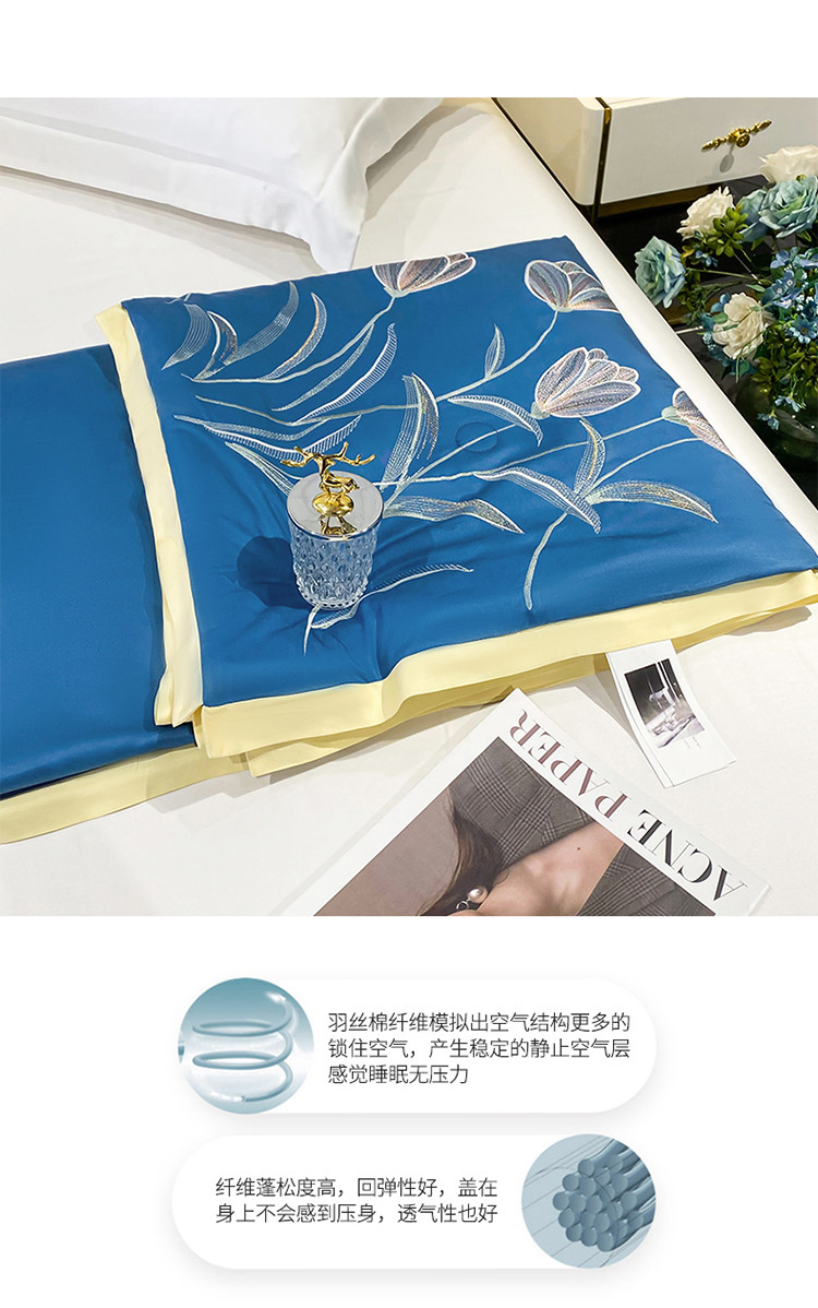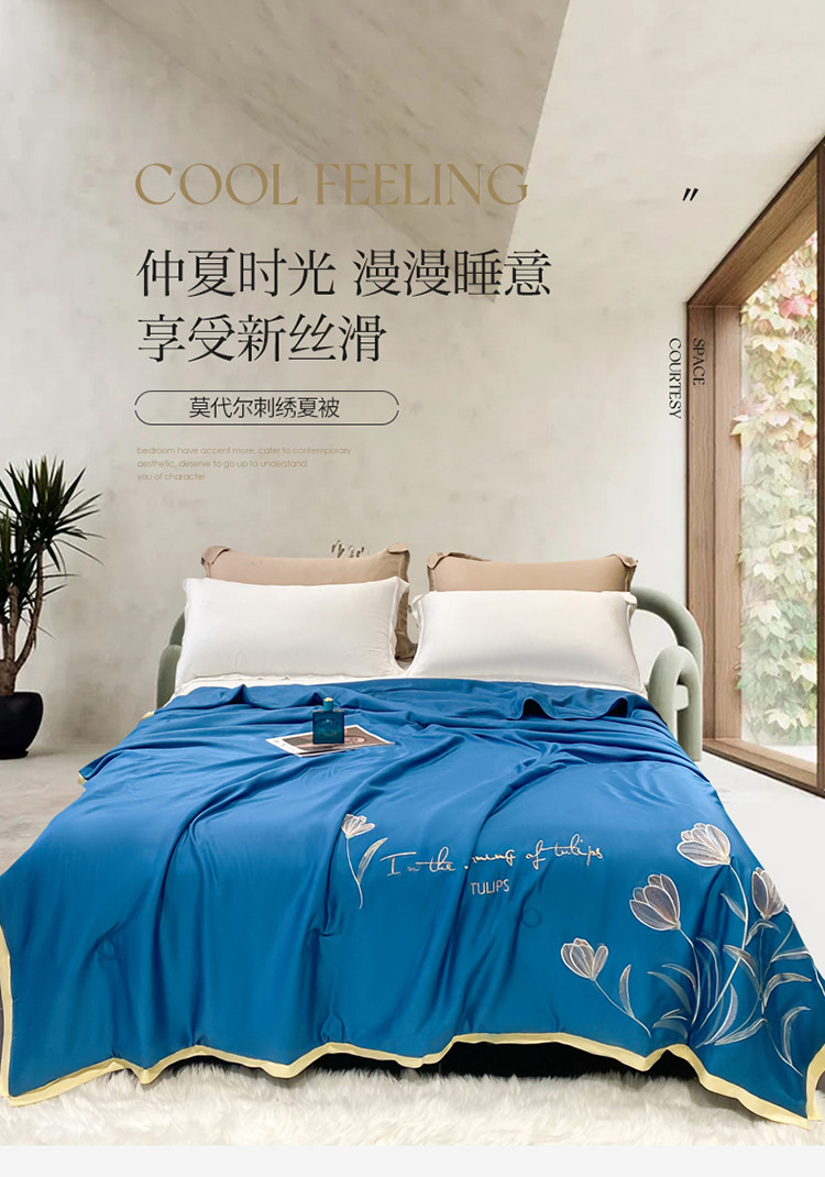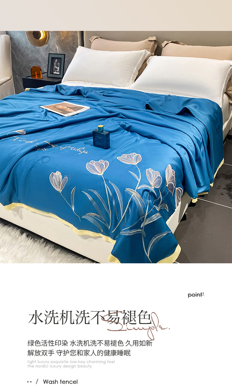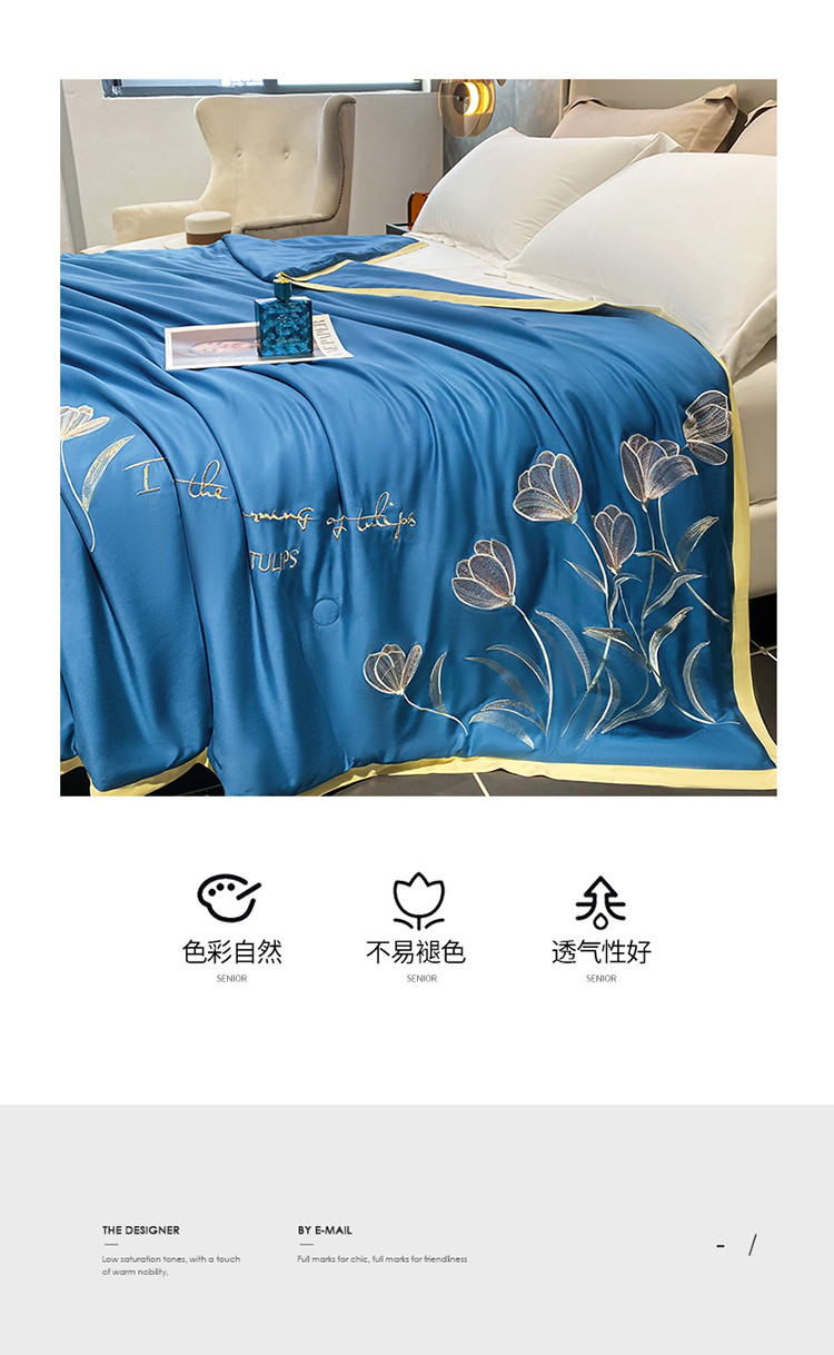 吾秀 2022新款莫代尔重工刺绣夏被-郁金香 郁金香-宝蓝