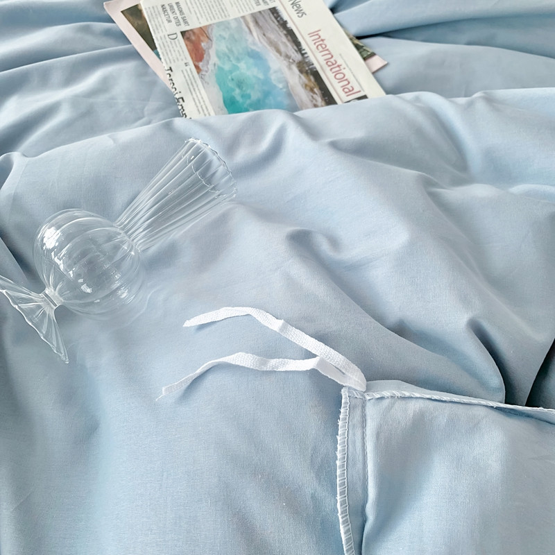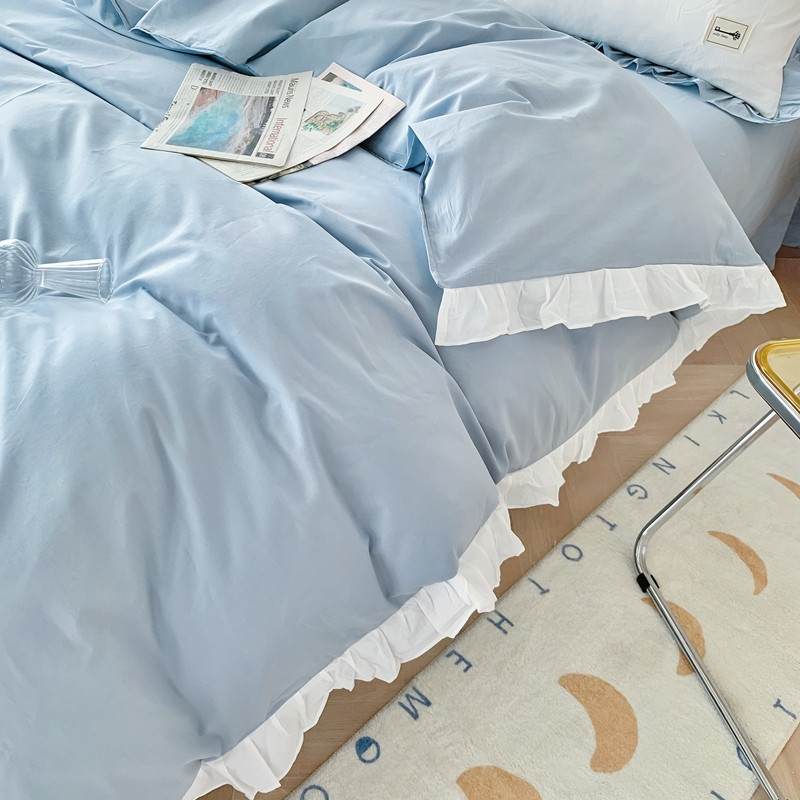 商品名称:橙艺家居 2022新款全棉色织水洗花边纯色四件套套件 天真蓝