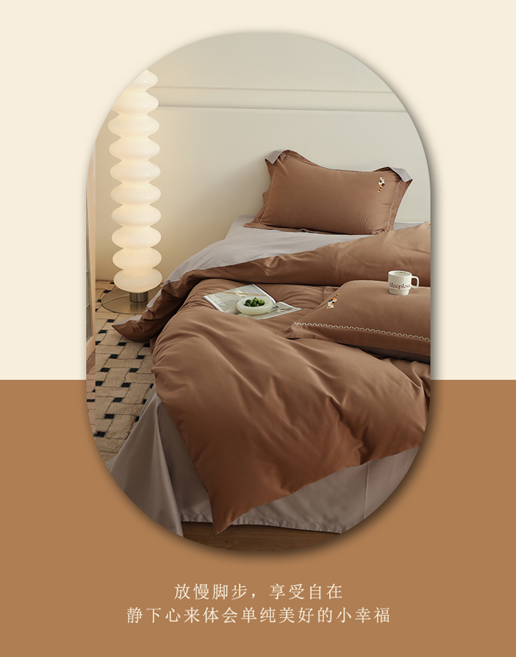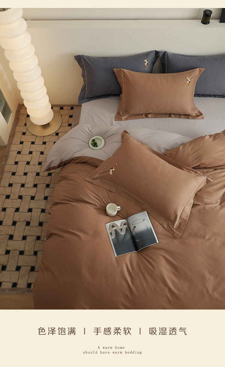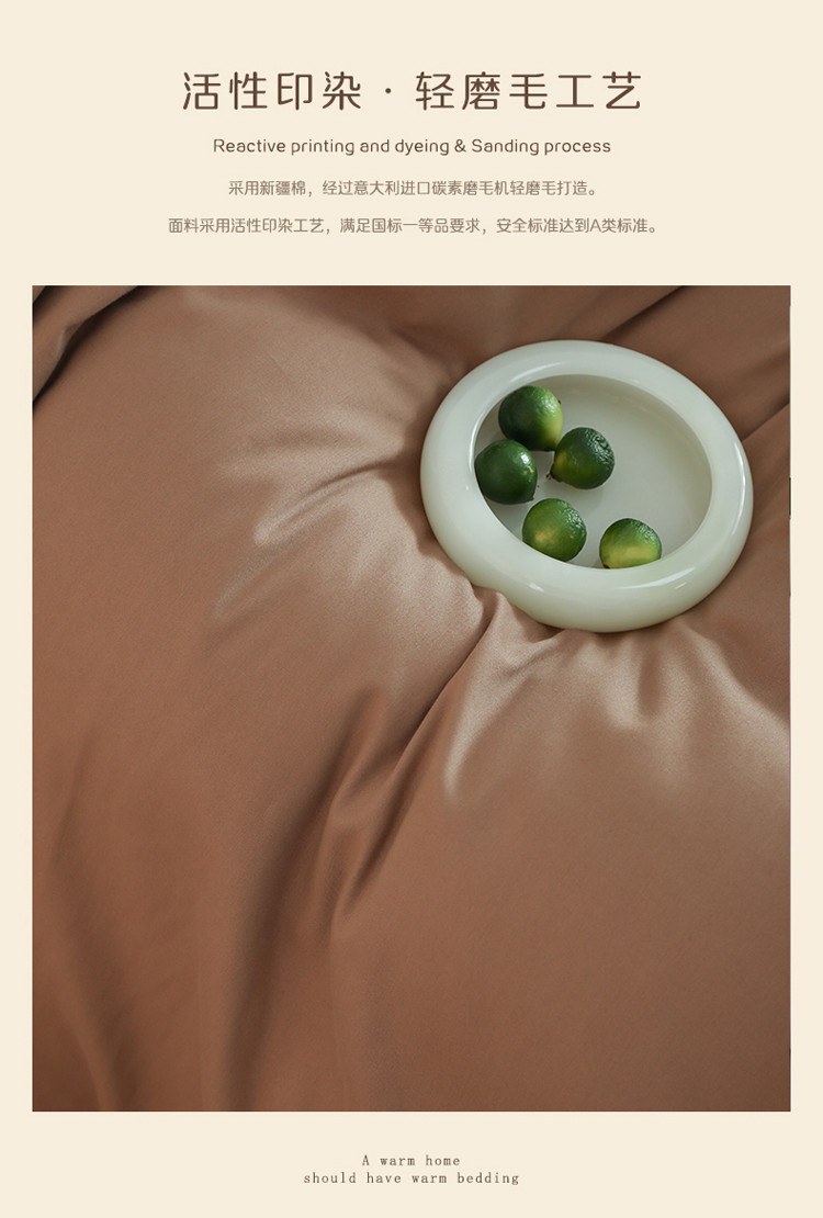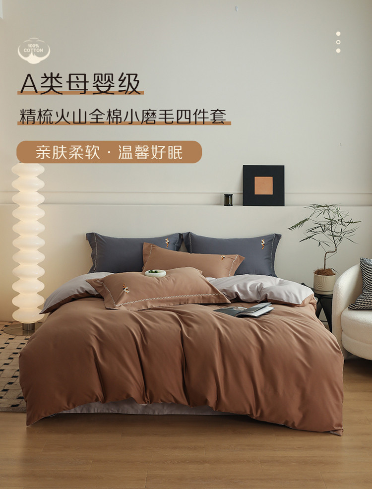 沐白家纺 2022精梳火山全棉小磨毛纯色系列-单品被套 桦茶棕丨苏木灰