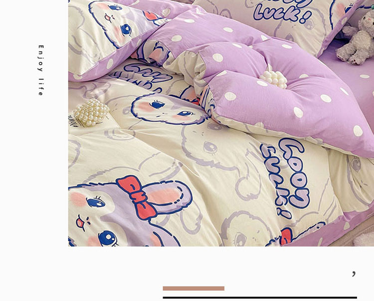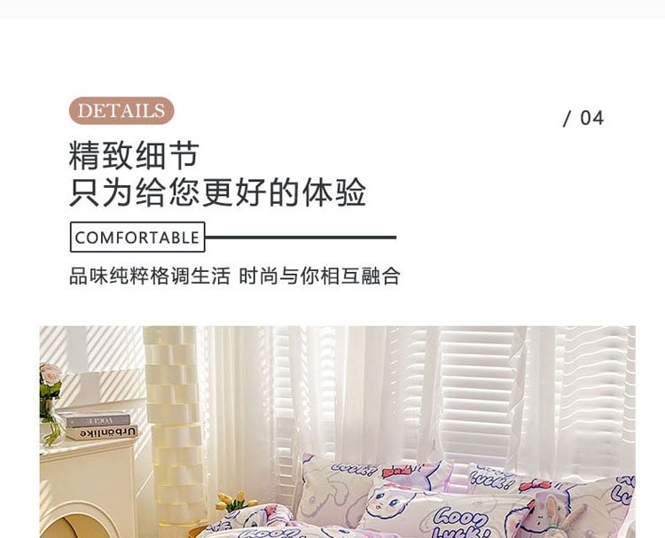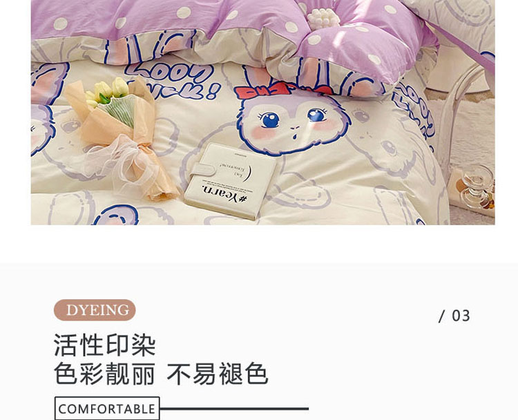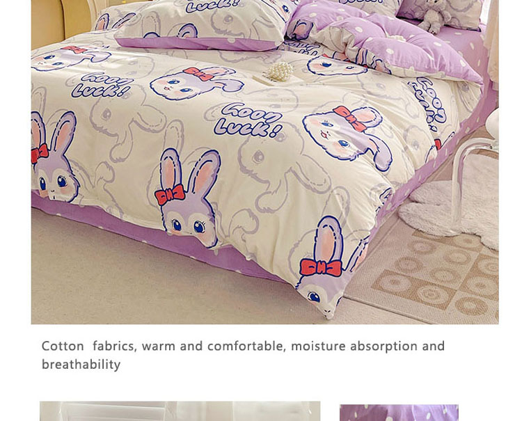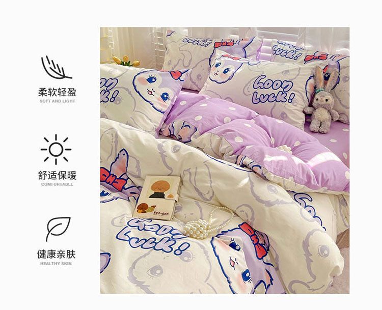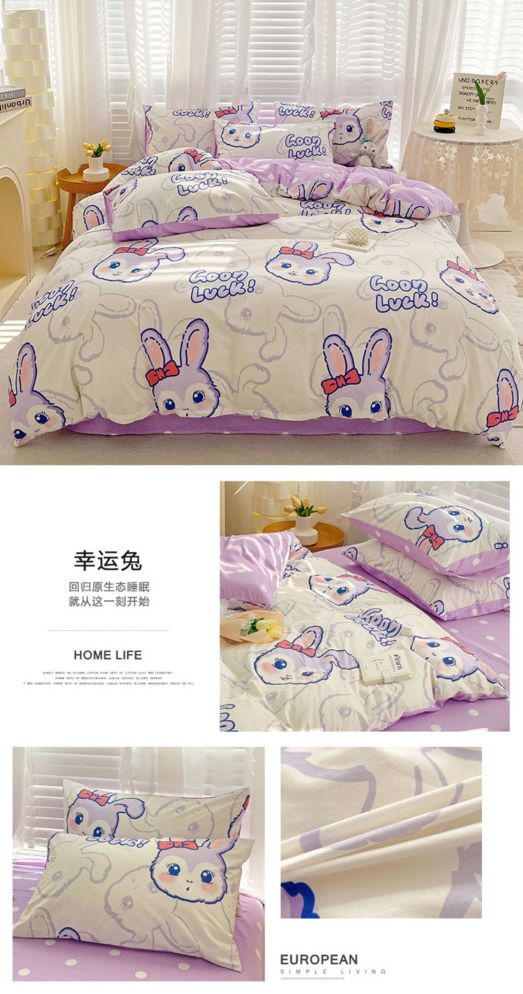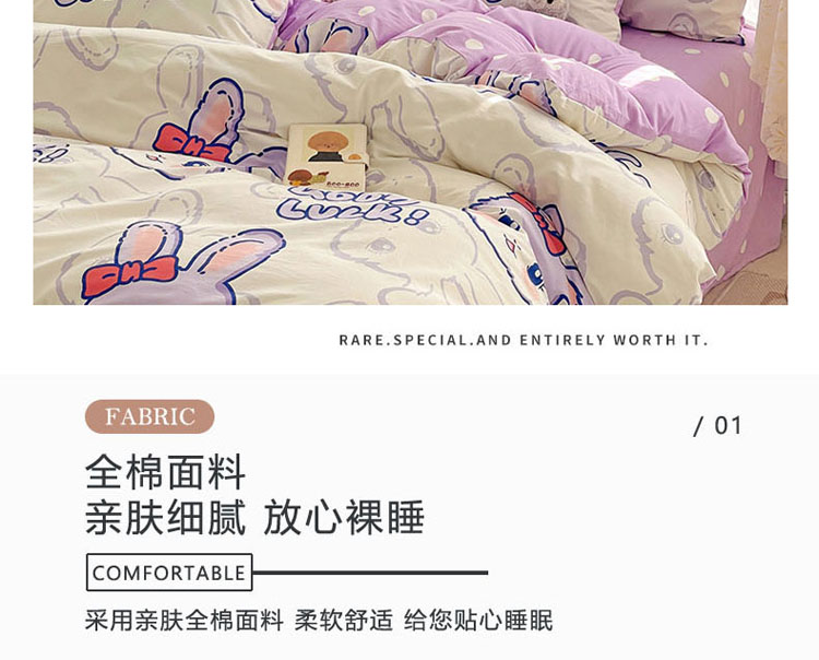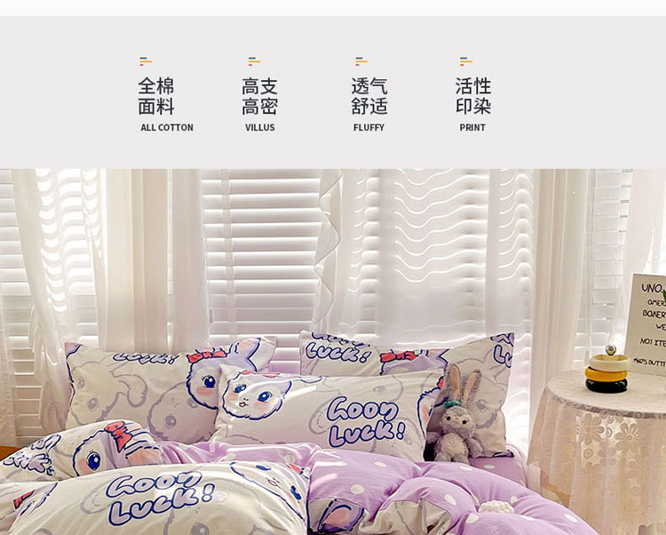 (总)梦家居 2023春季新品小清新系列全棉四件套,幸运兔,爱心兔,铃兰花兔,钱兔柿锦,熊兔乐园,奶咖小兔,西莉娅,魔法小兔,郁金粉兔,郁金紫兔,草莓兔,蜜桃兔,黛西,南瓜小兔,郁金花兔