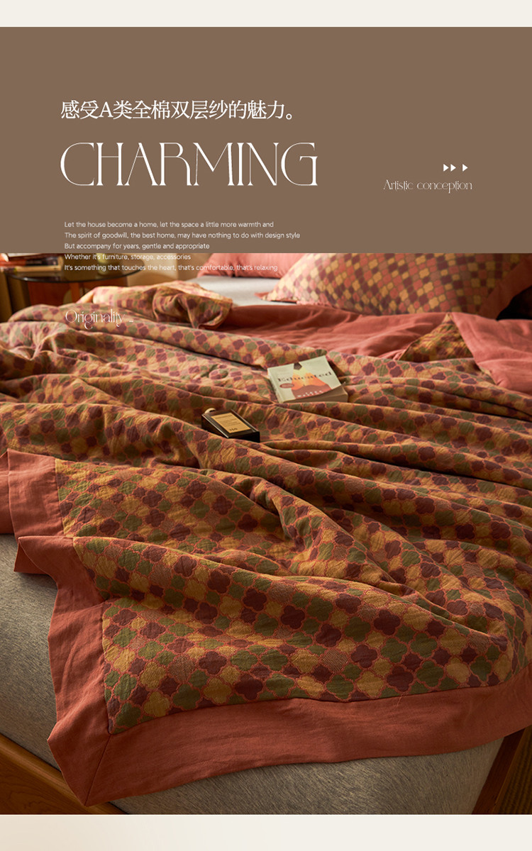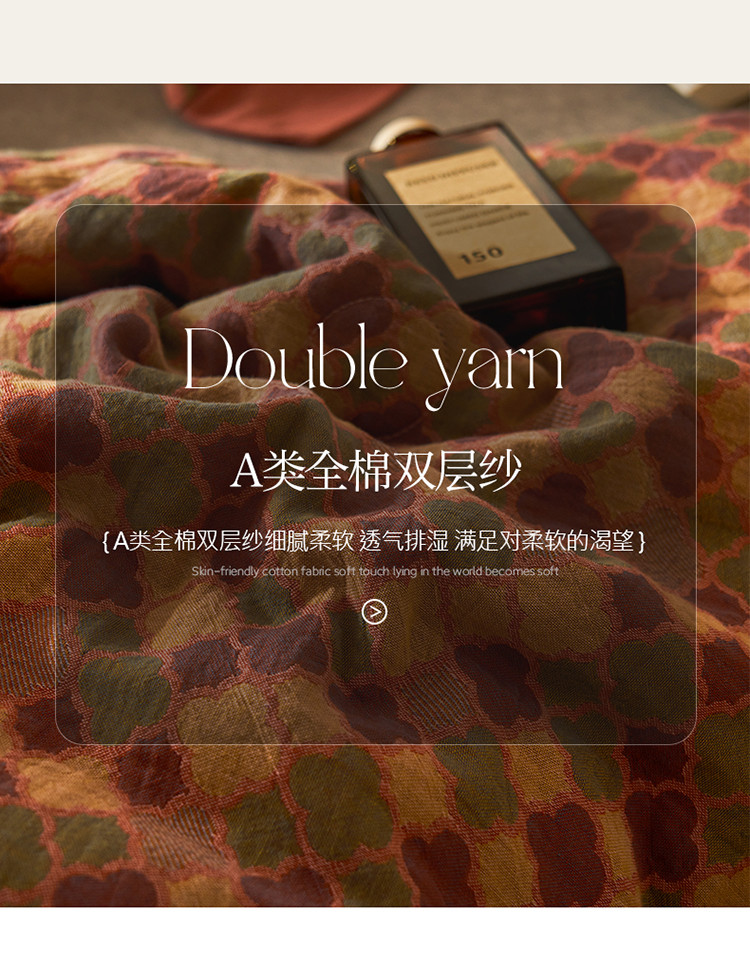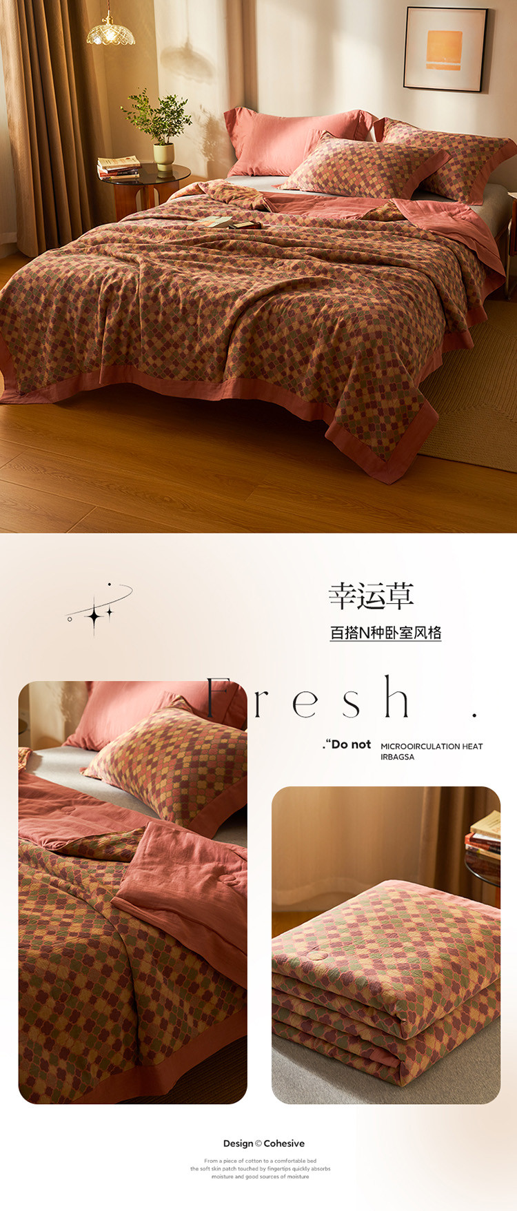 商品名称:吾秀 2023新款复古风A类全棉双层纱棉花夏被 幸运草