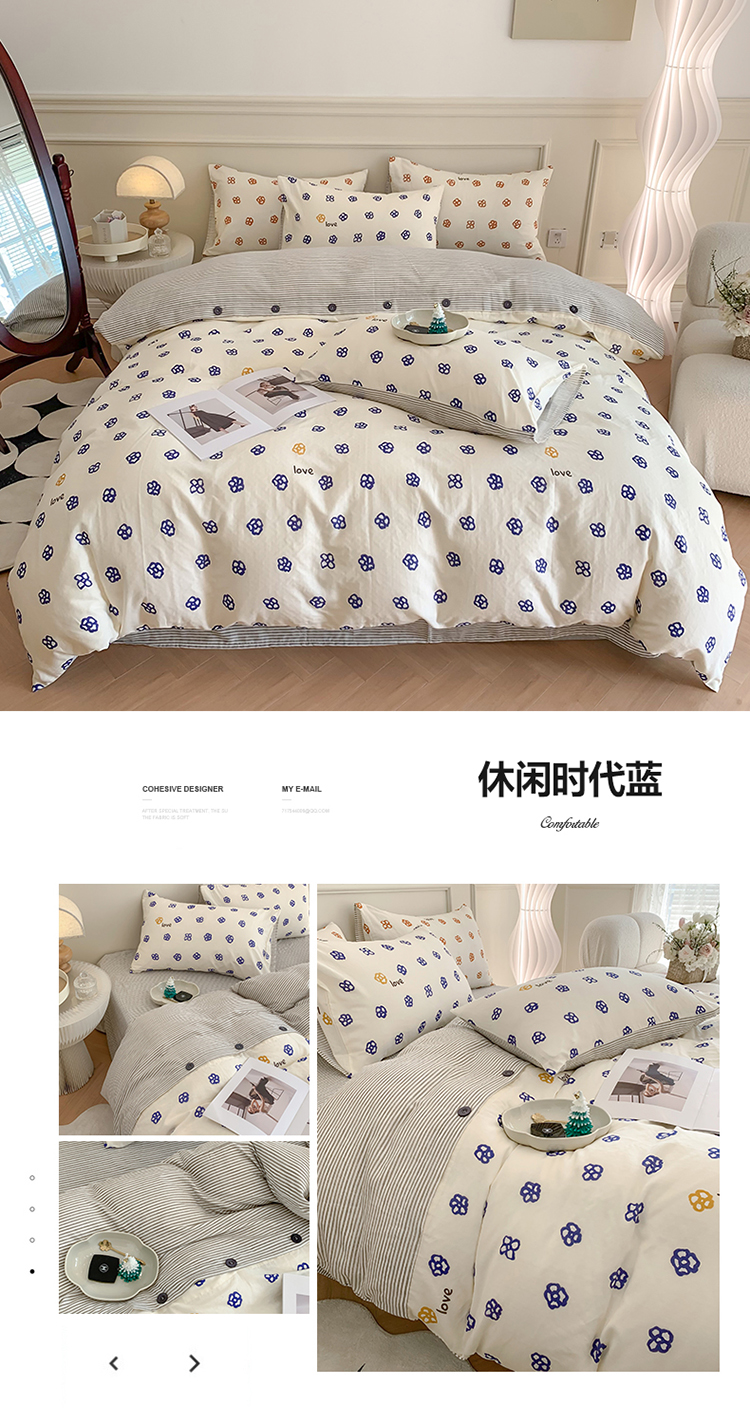 澳萝拉2023新款40支双层纱纽扣款四件套 休闲时代蓝