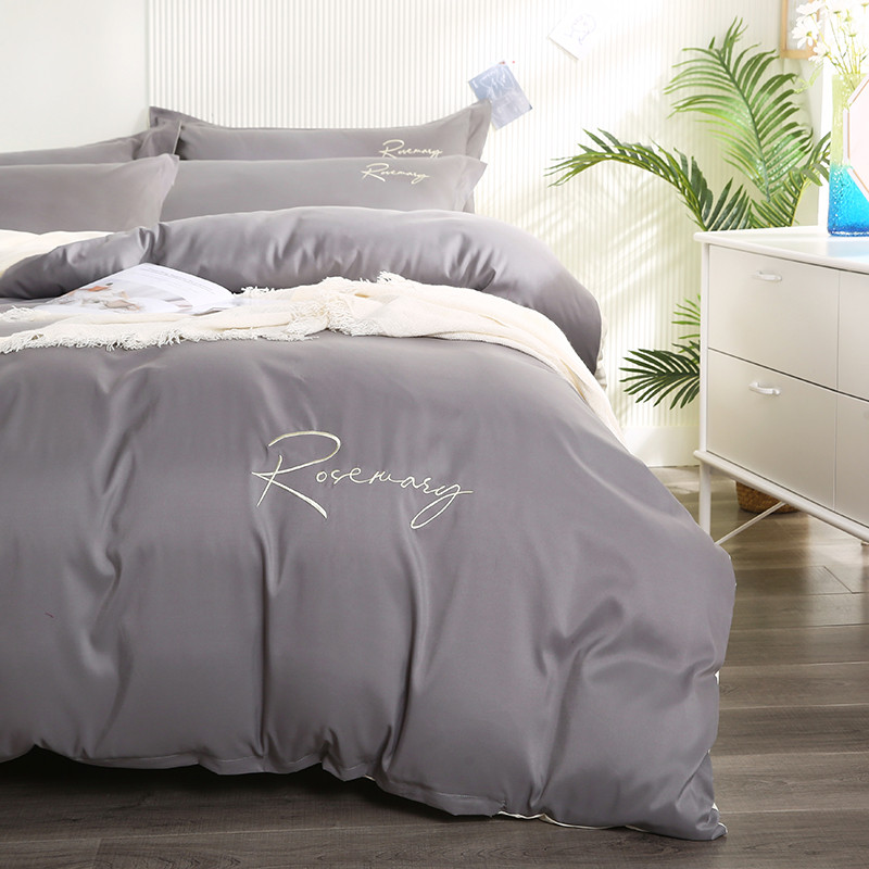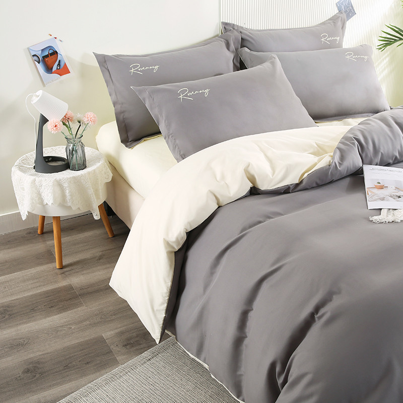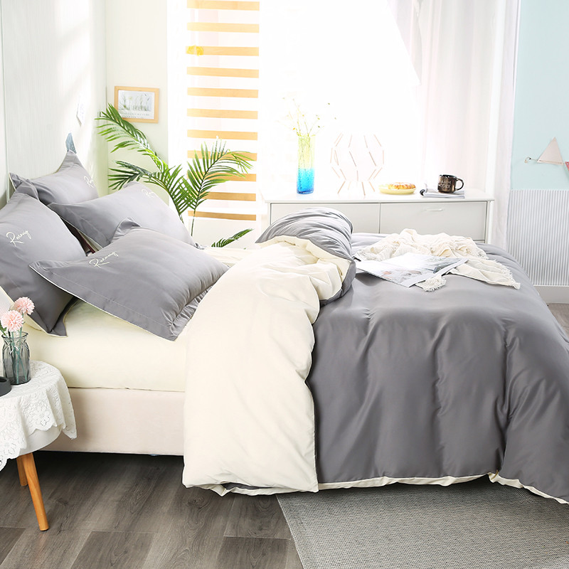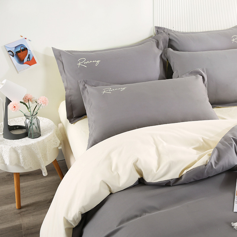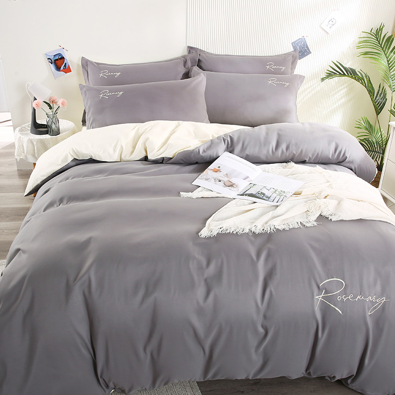 7V 现货3000套110g加厚磨毛刺绣网红直播四件套 库存数量每个颜色500套 银灰米