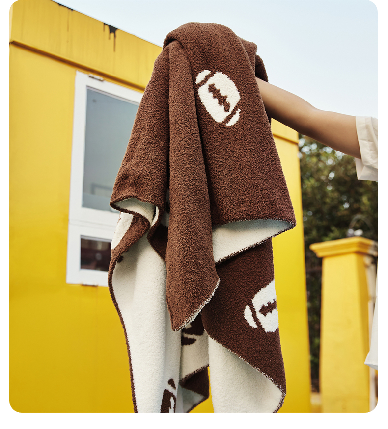 暖绵绵家纺 2025新款半边绒毛毯-橄榄球 橄榄球-黑色