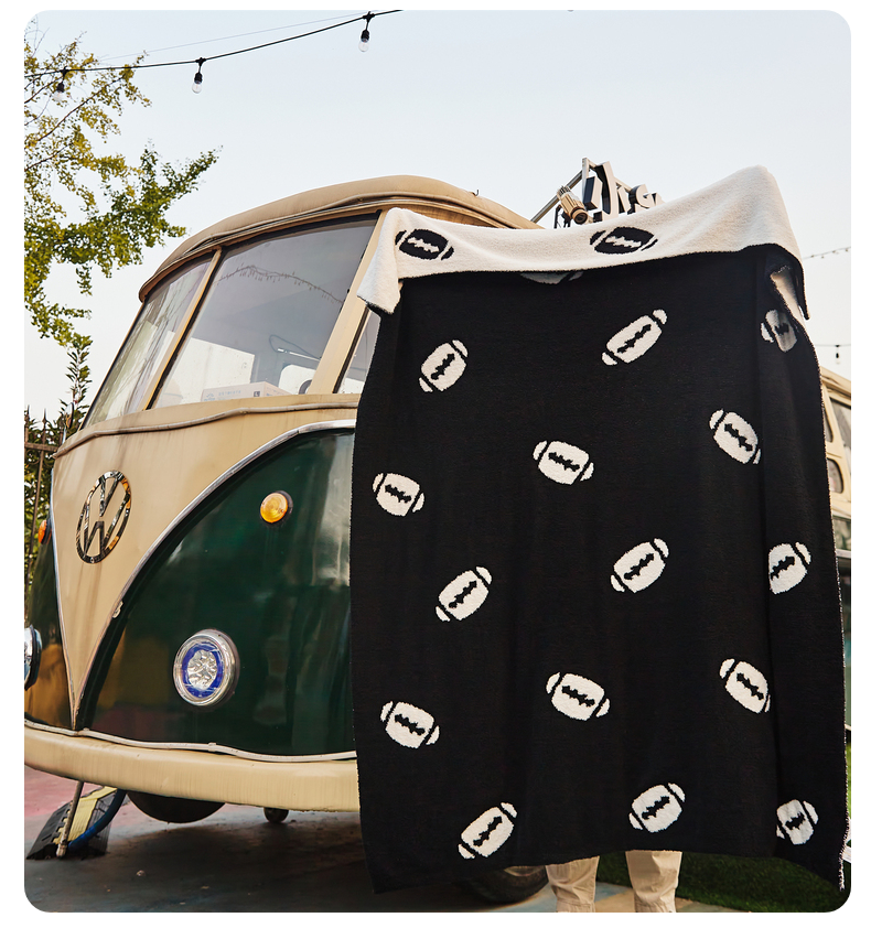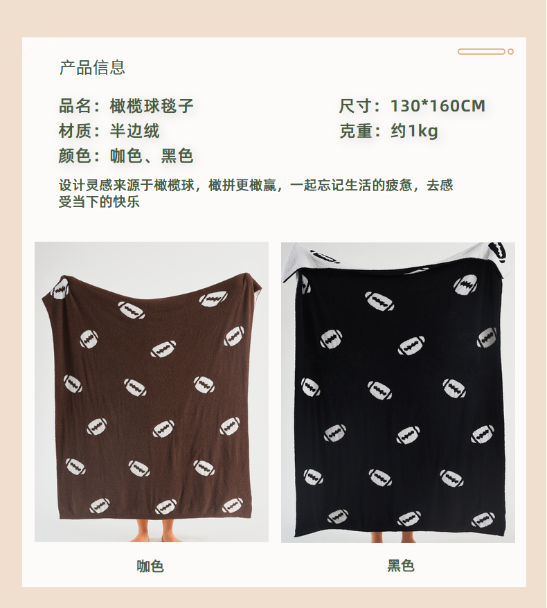 商品名称:暖绵绵家纺 2025新款半边绒毛毯-橄榄球 橄榄球-黑色
