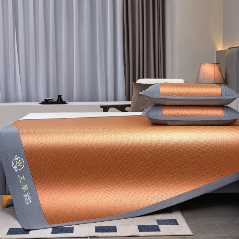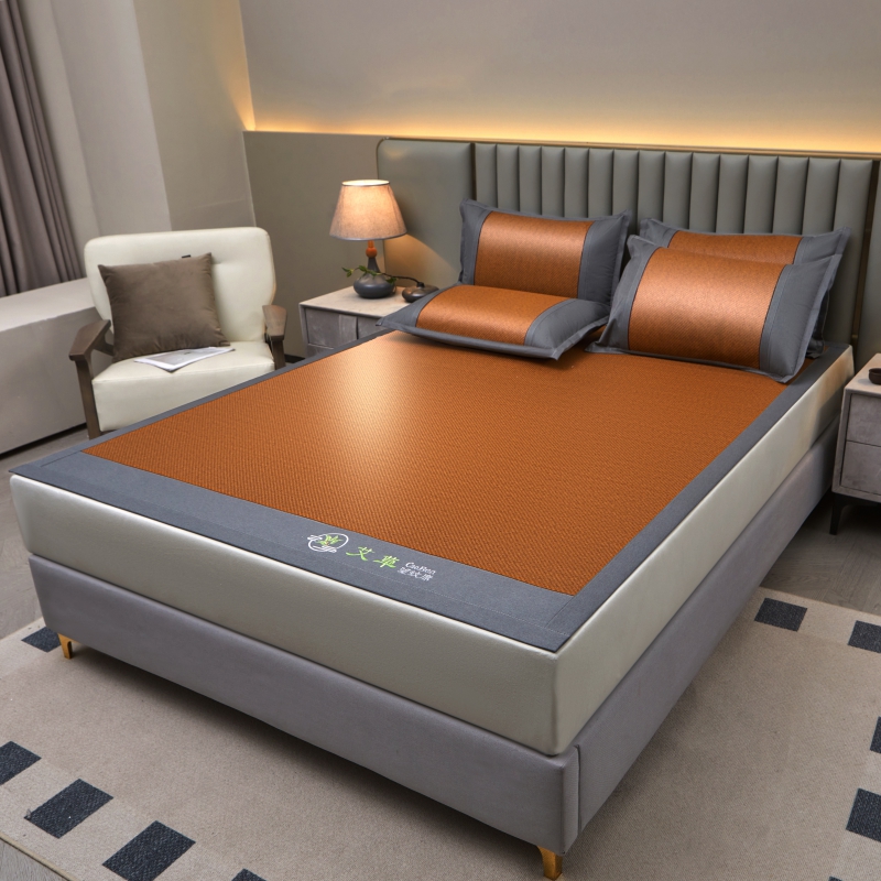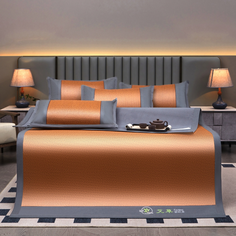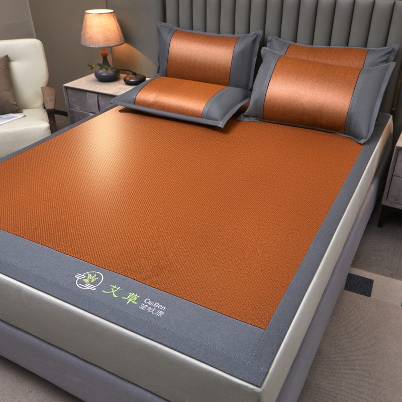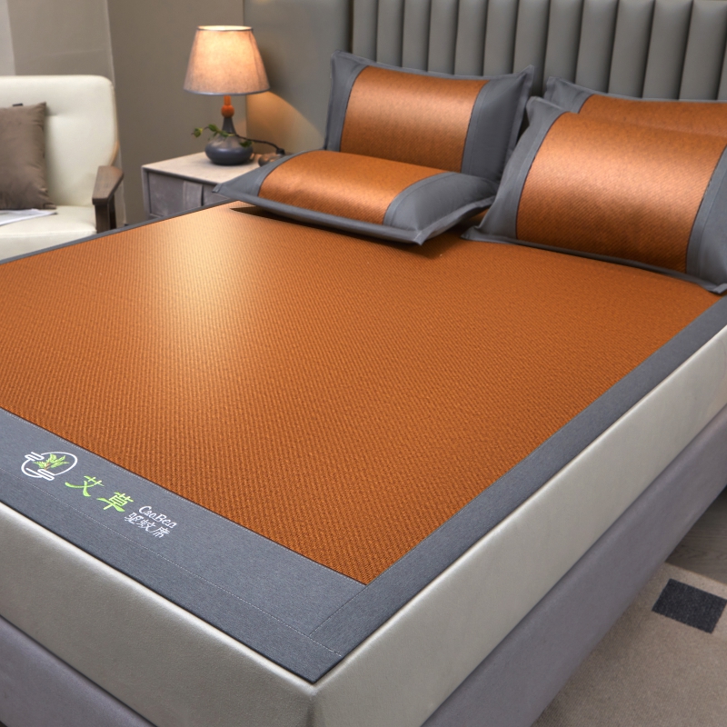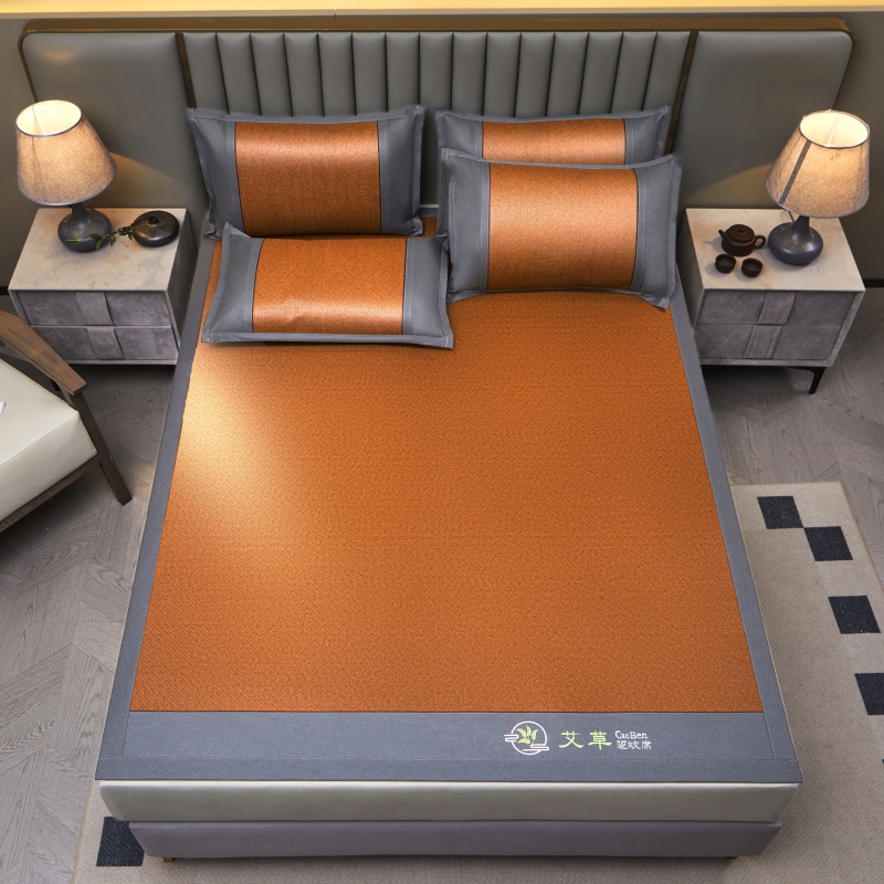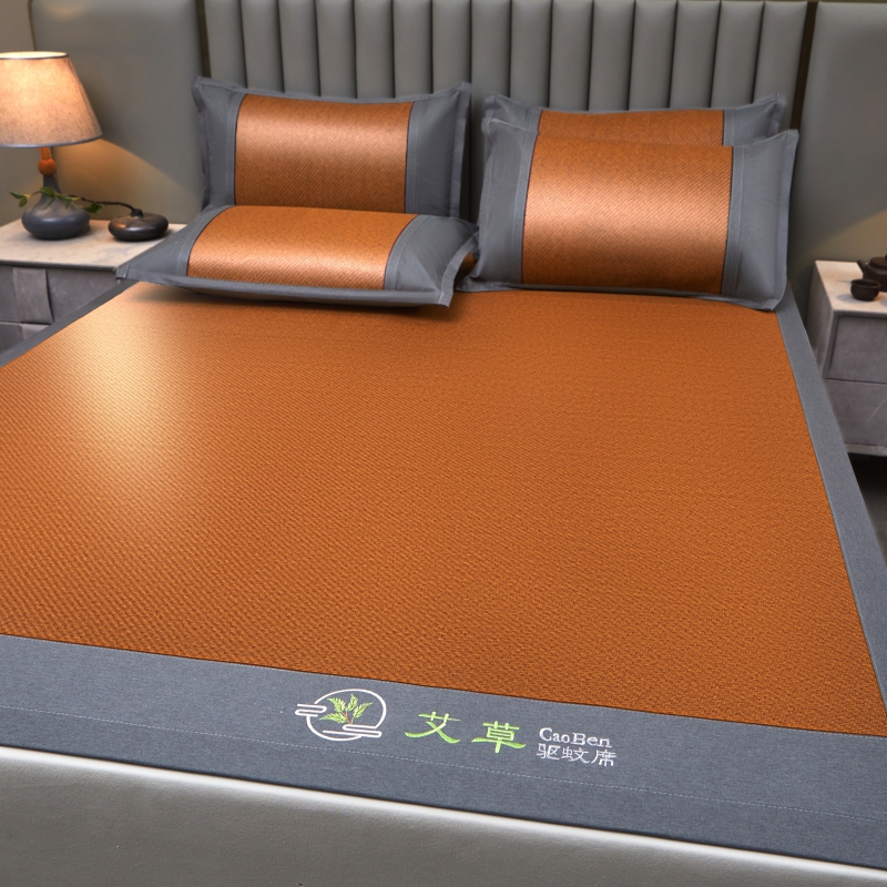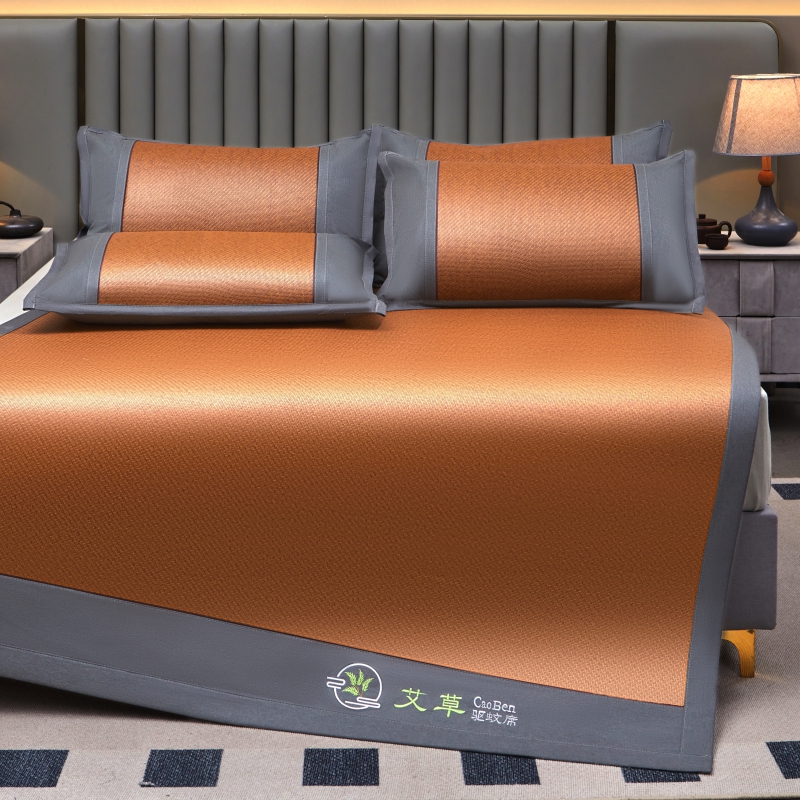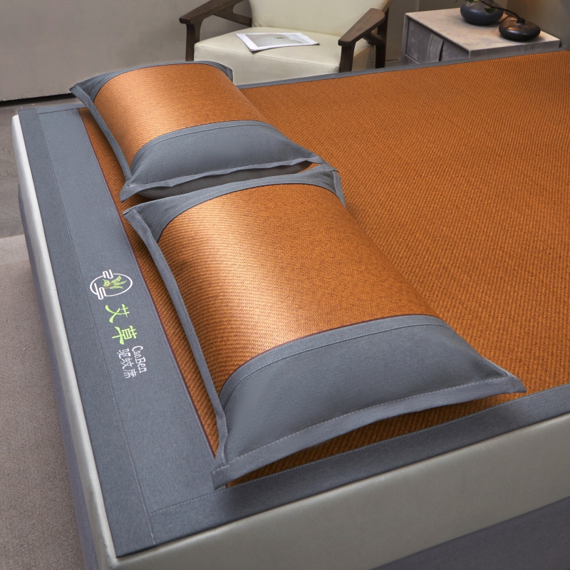 青雅席业 2025新款艾草pe材质印尼藤复合三明治凉席三件套 棕