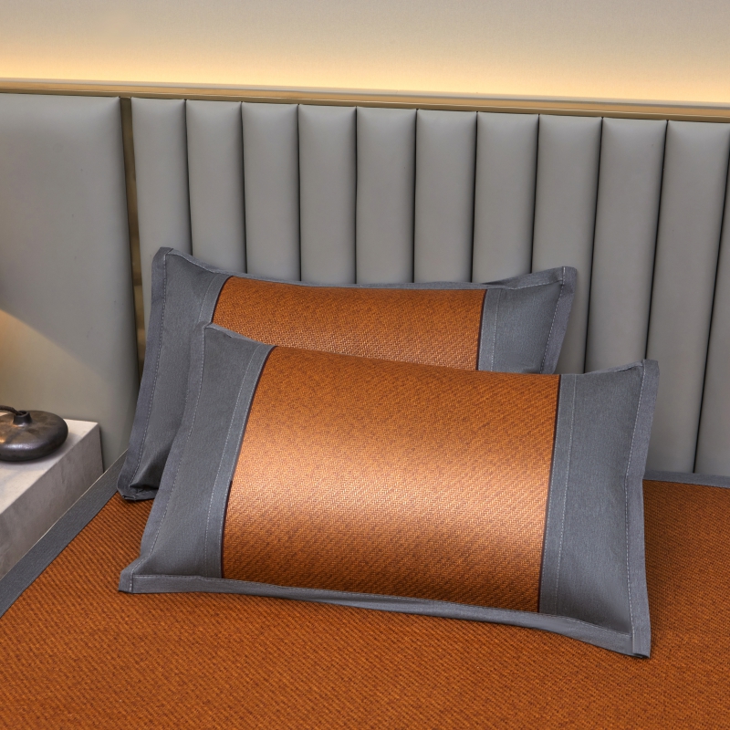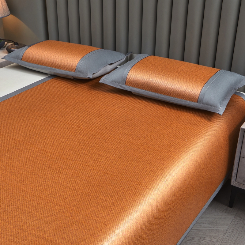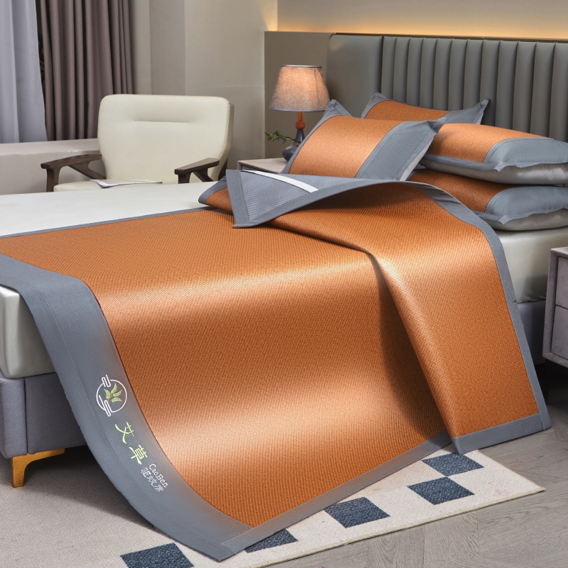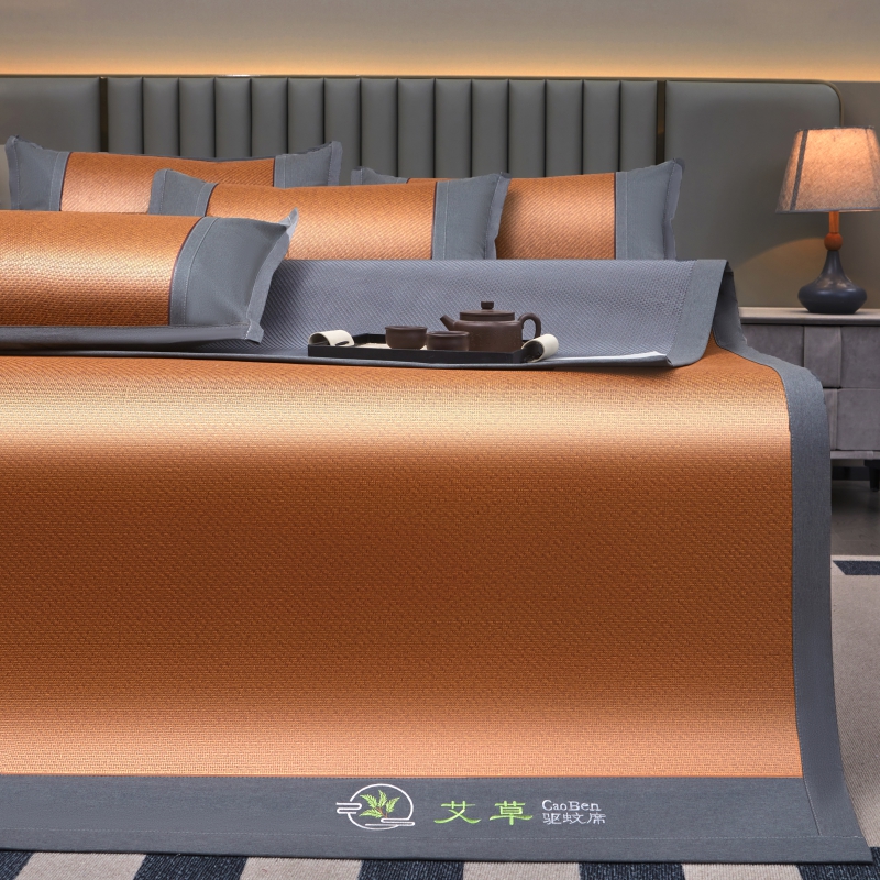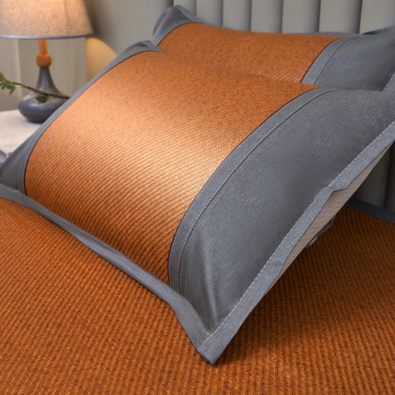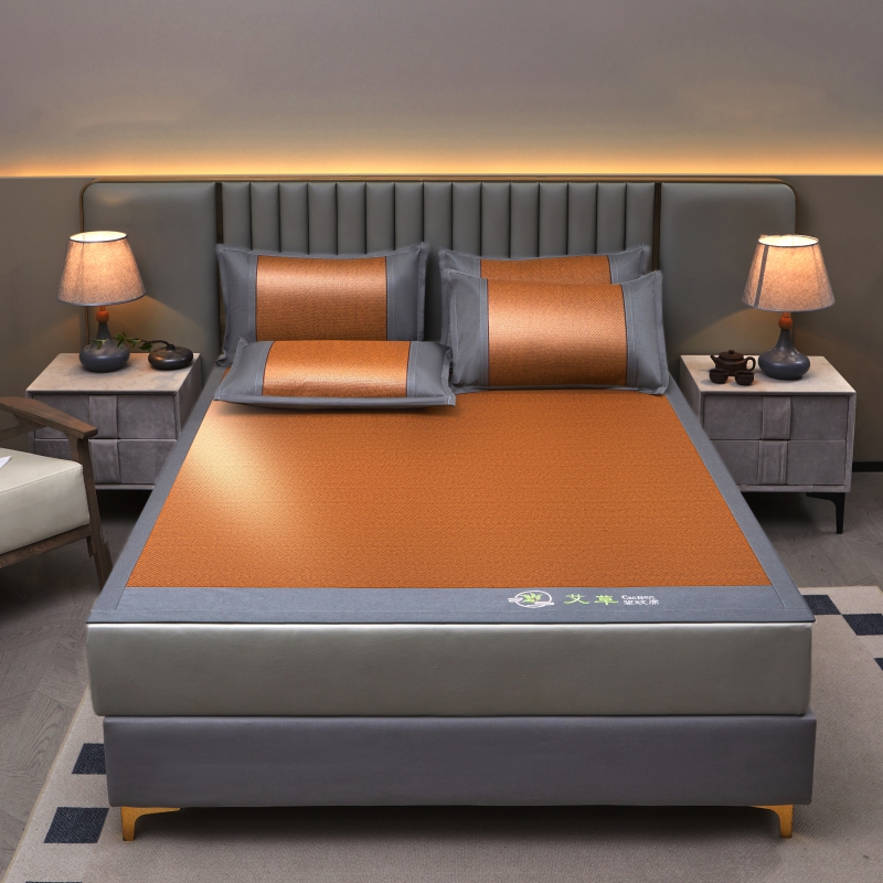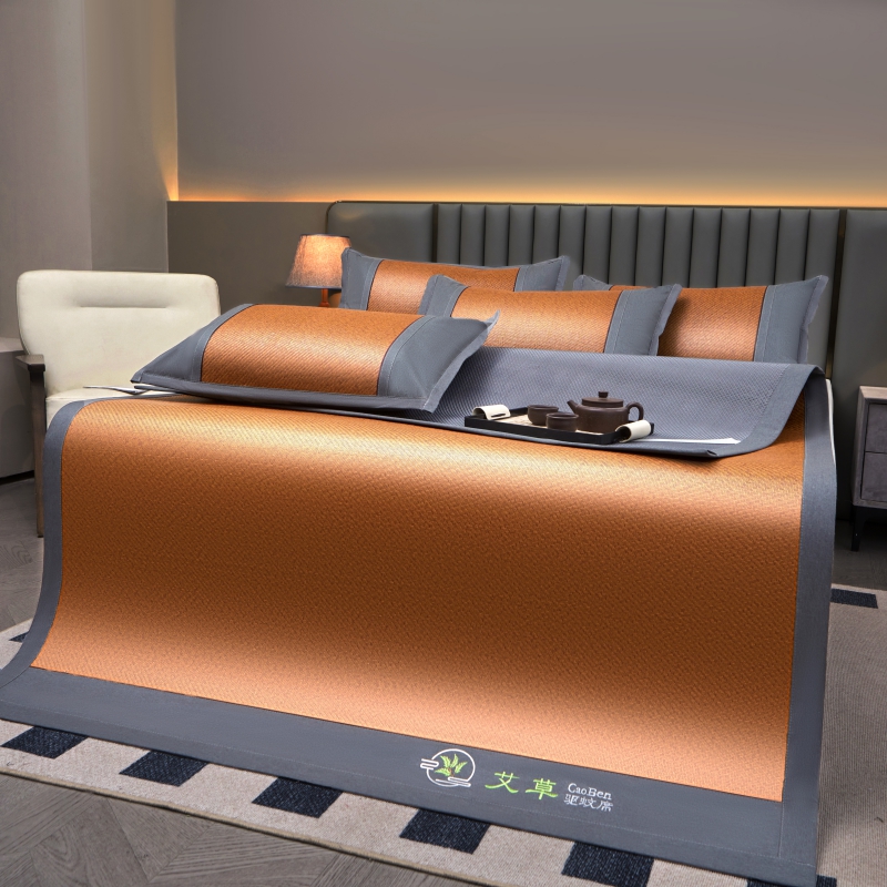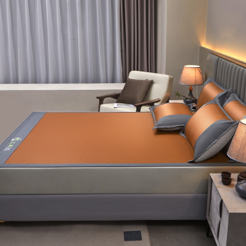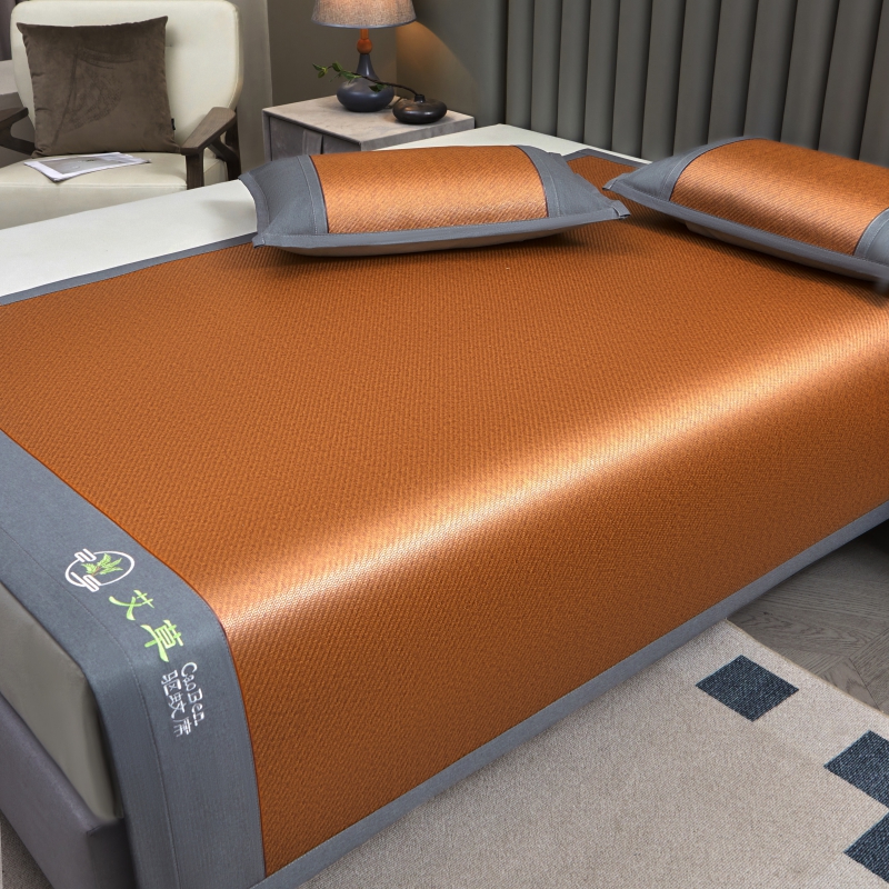 青雅席业 2025新款艾草pe材质印尼藤复合三明治凉席三件套 棕