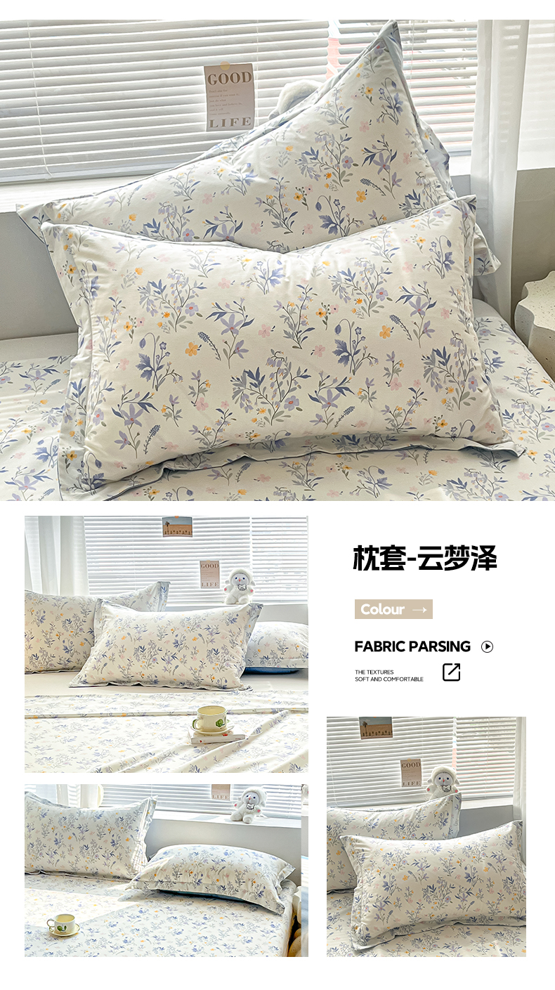 涵宸家纺 2024新款全棉小清新印花单品套件--单枕套 枕套-云梦泽