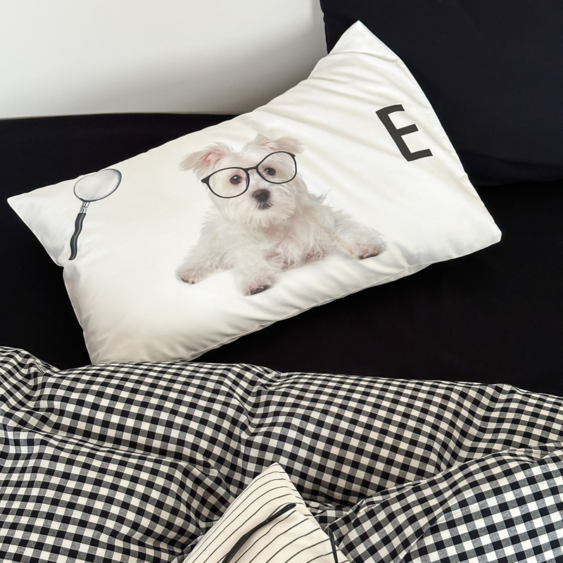 (总)艾沁2025新款全棉数码印花单枕套,法兰西-黑, 漫步-黑,全棉水洗-黑细条
