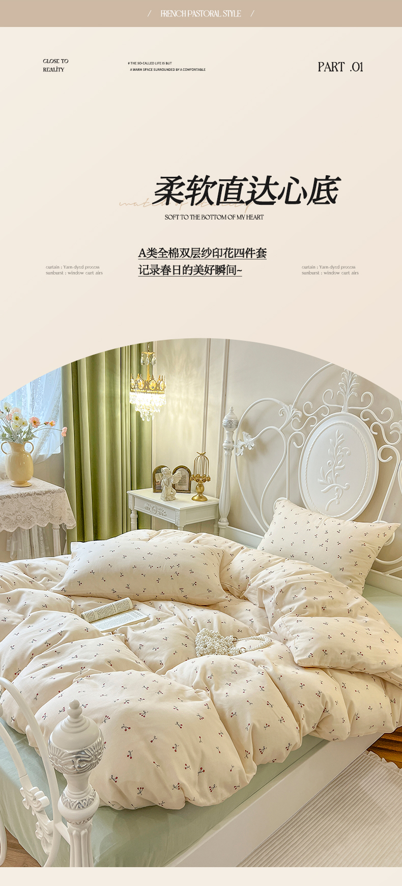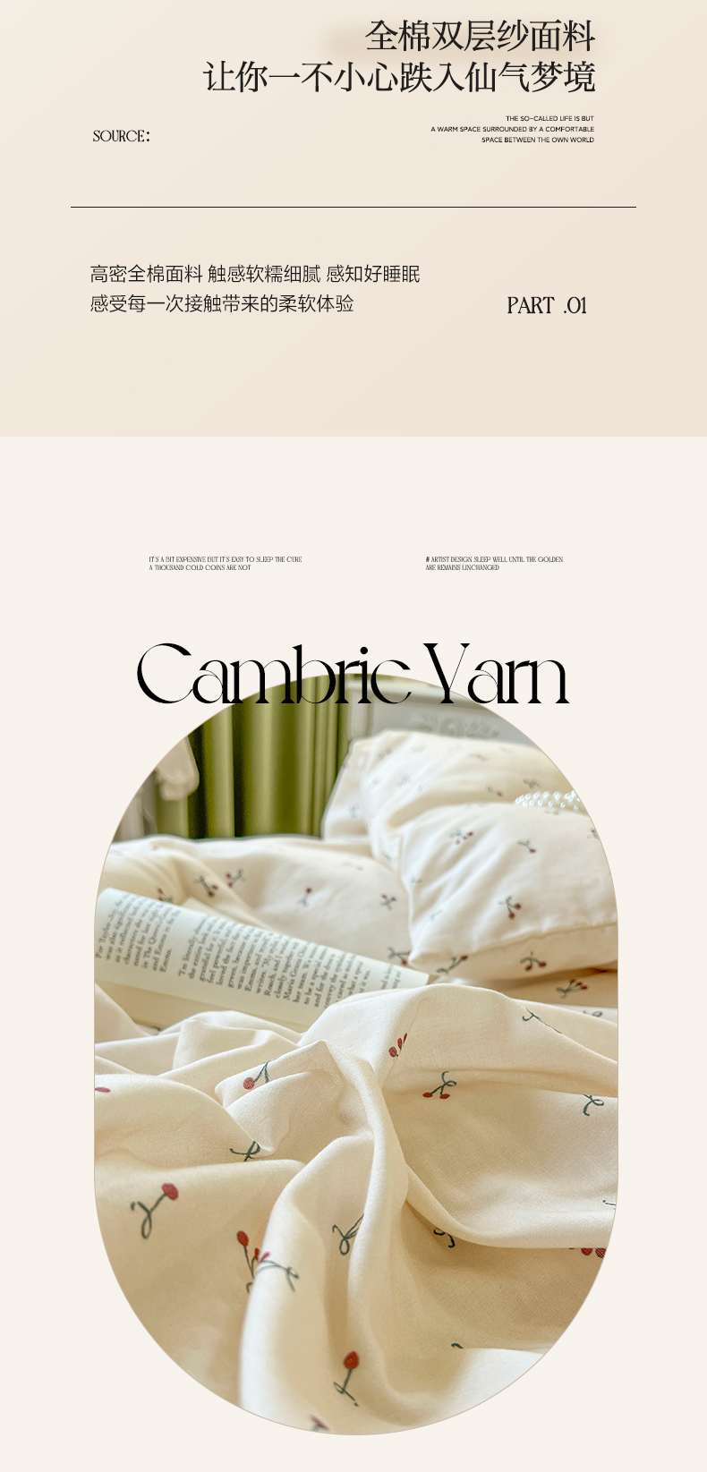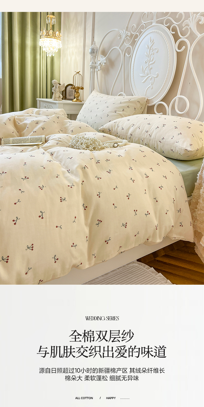 当前位置: 91家纺网 > 商品网购 > 床品套件 > 四件套 > 双层纱四件套 > 麒豆豆 2024款全棉双层纱四件套小果果-红