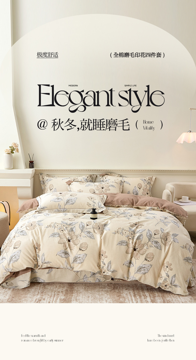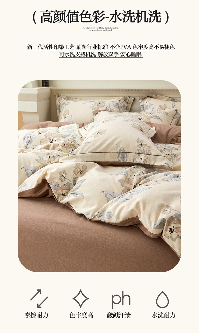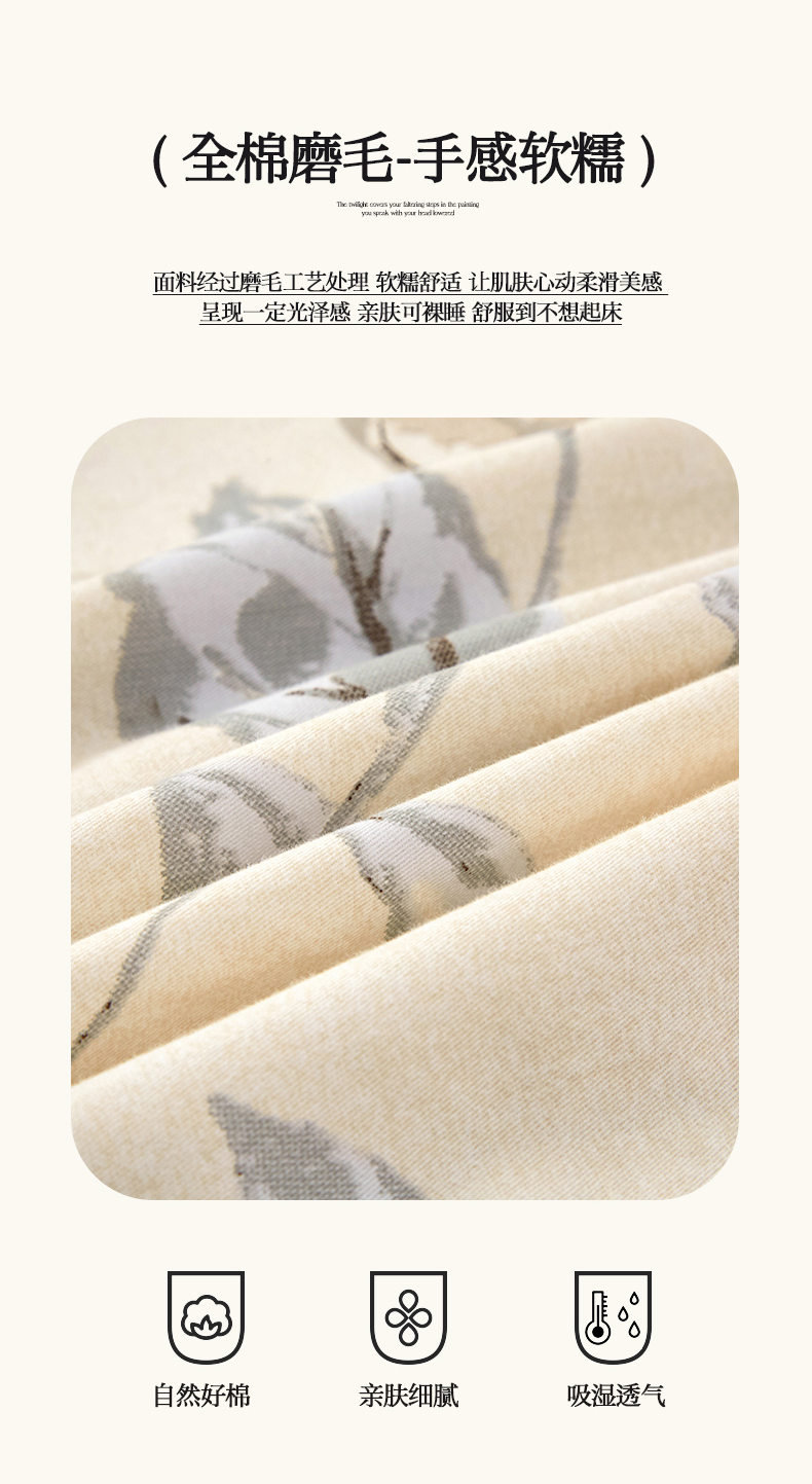 当前位置: 91家纺网 > 商品网购 > 床品套件 > 四件套 > 磨毛活性四件套 > 橙艺家居 2024新款全棉超柔生态磨毛四件套全棉四件套纯棉四件套 山竹月