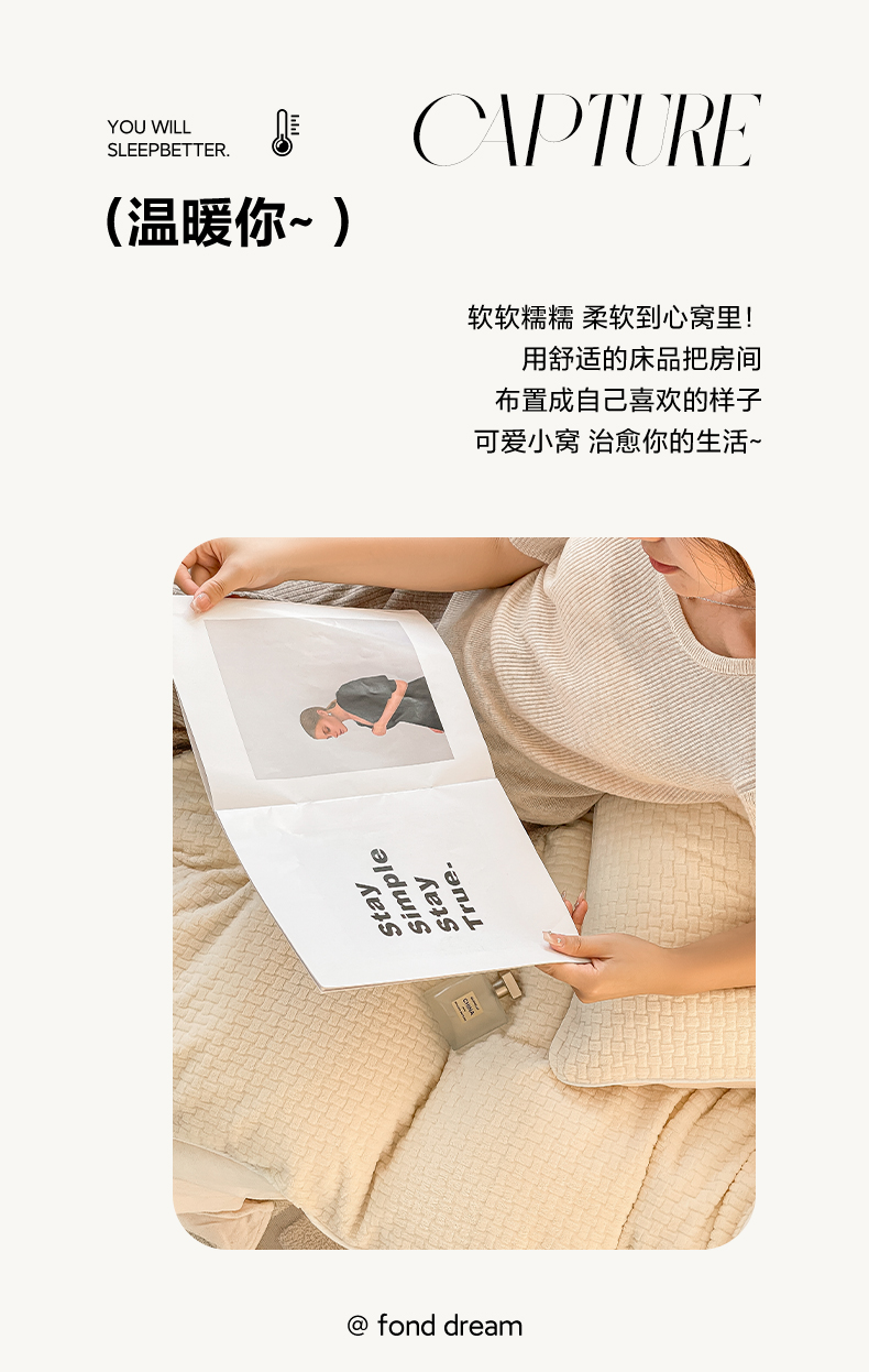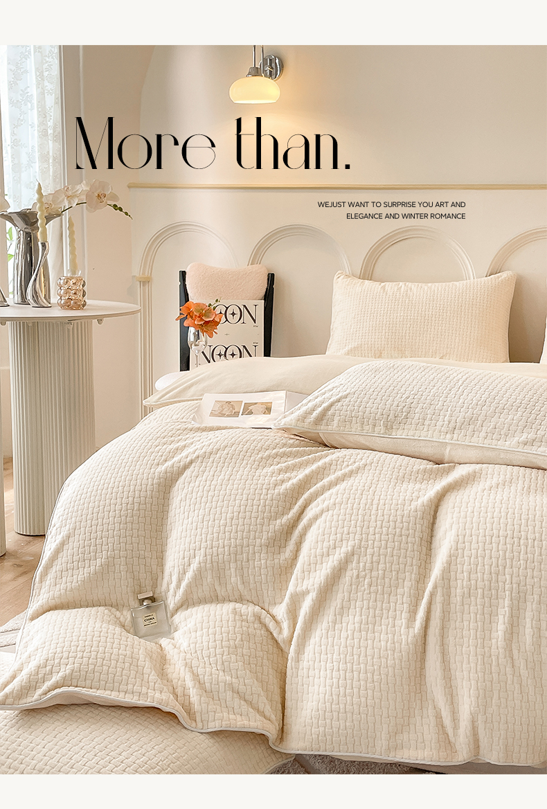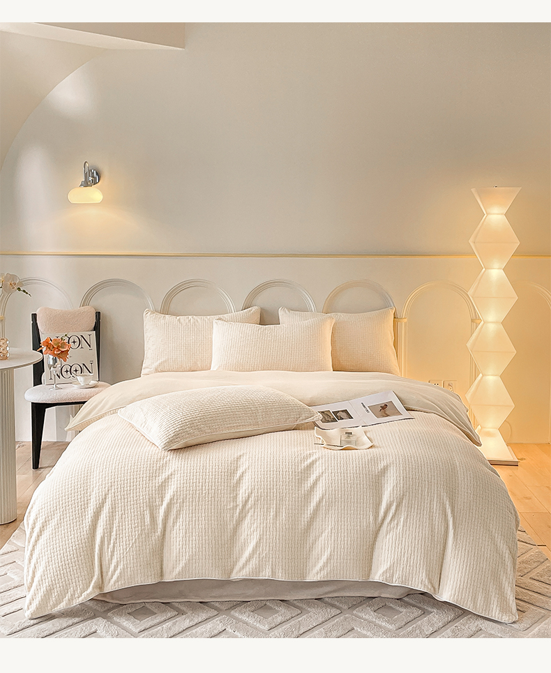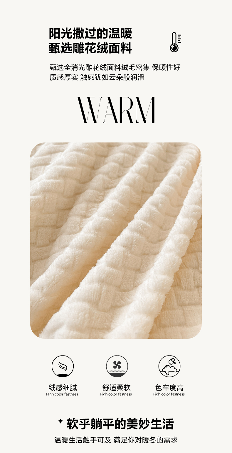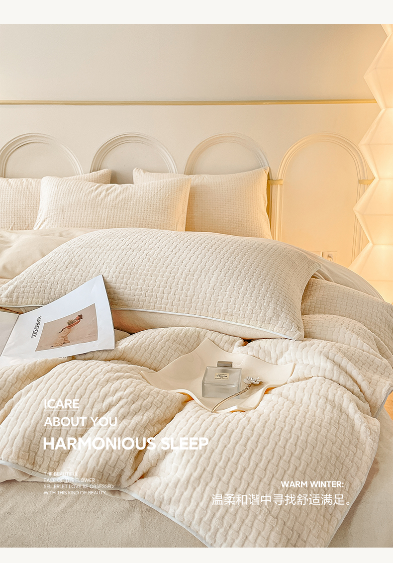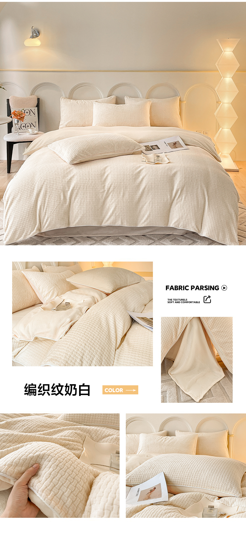 当前位置: 91家纺网 > 商品网购 > 床品套件 > 四件套 > 牛奶绒四件套 > 2024新款牛奶绒雕花麻绳款三件套四件套 编织纹奶白