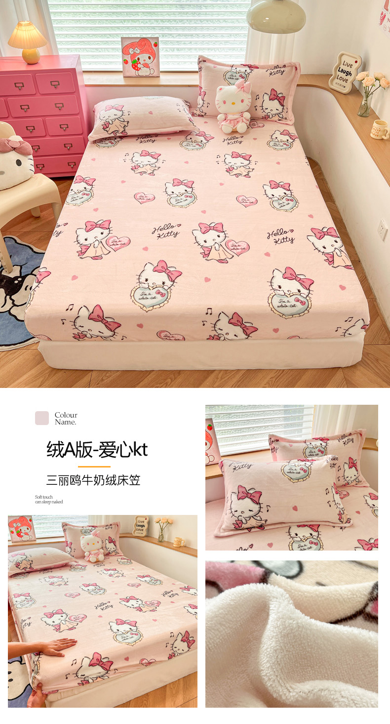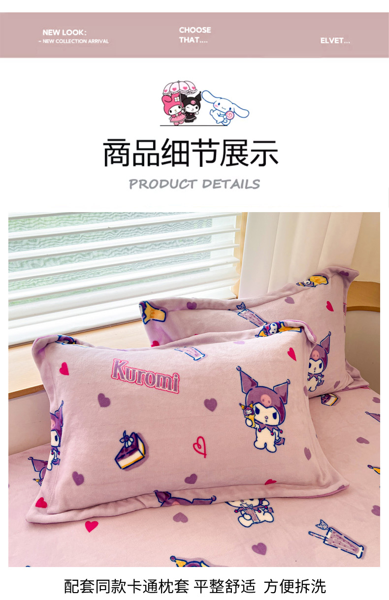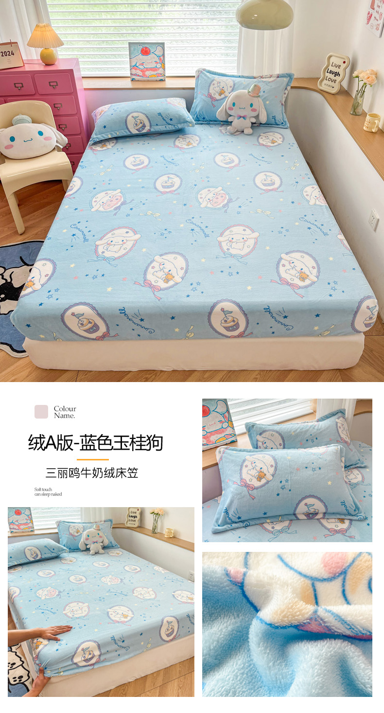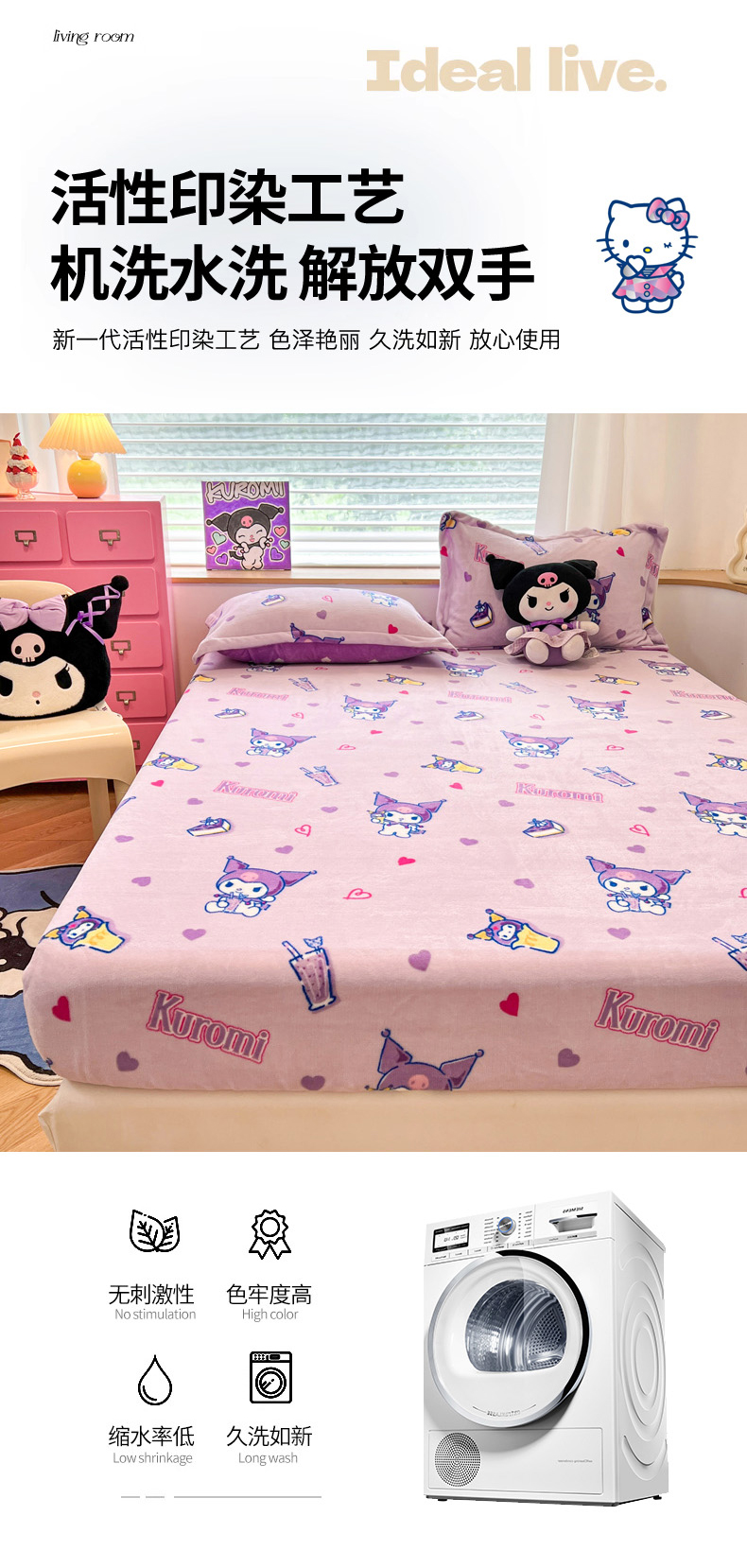• 91家纺网 家纺一手货源 找家纺 暮思家居 2024新款三丽鸥正版授权高克重加厚保暖牛奶绒床笠三件套 绒A版-甜心库洛米