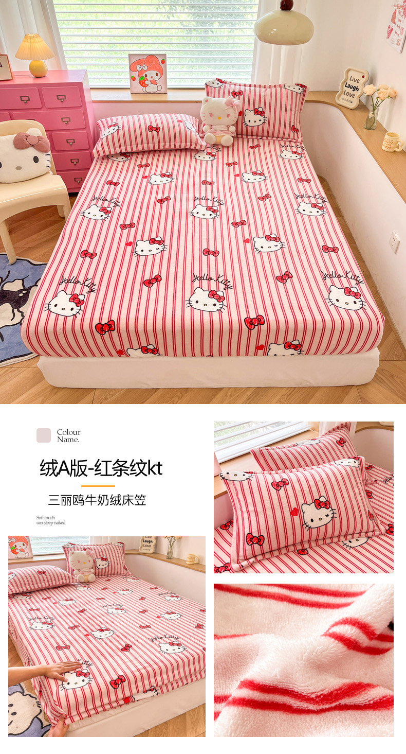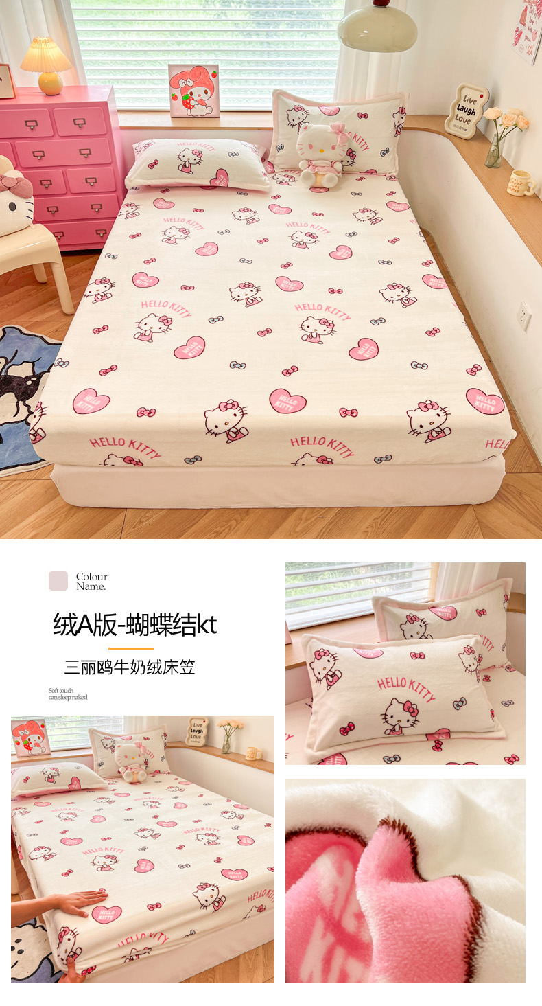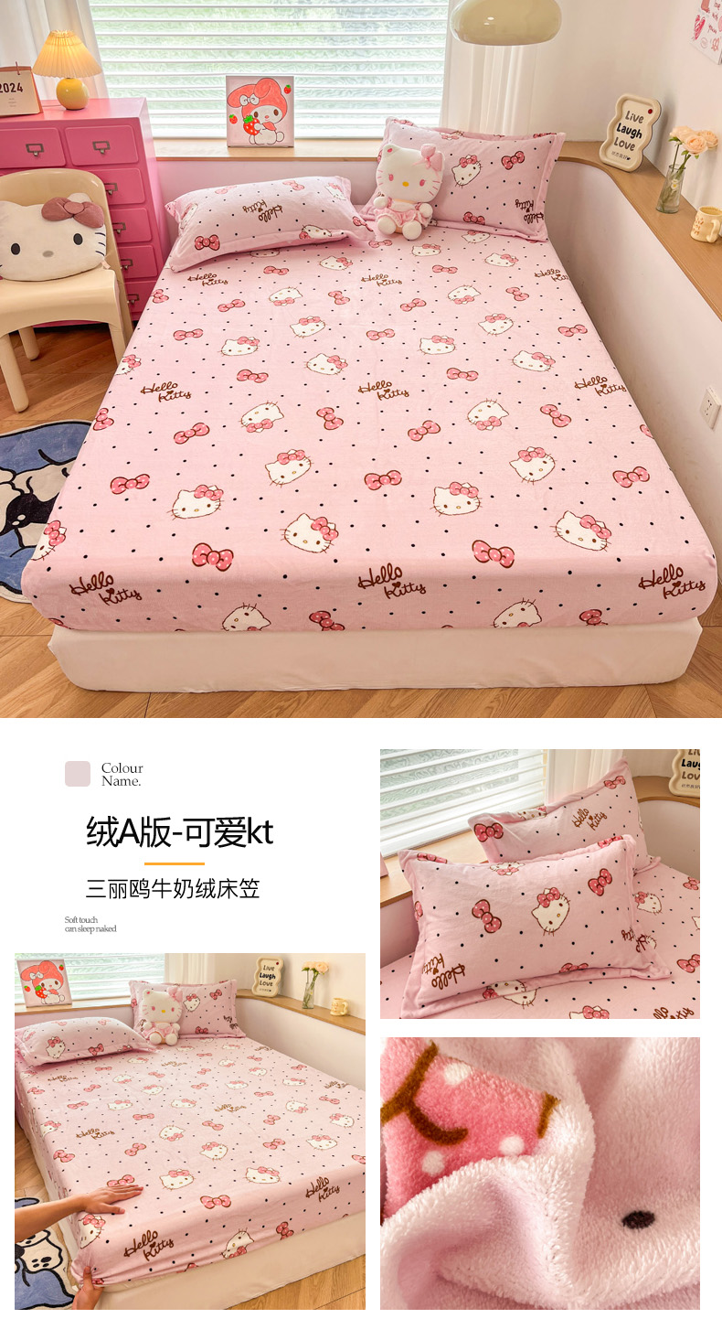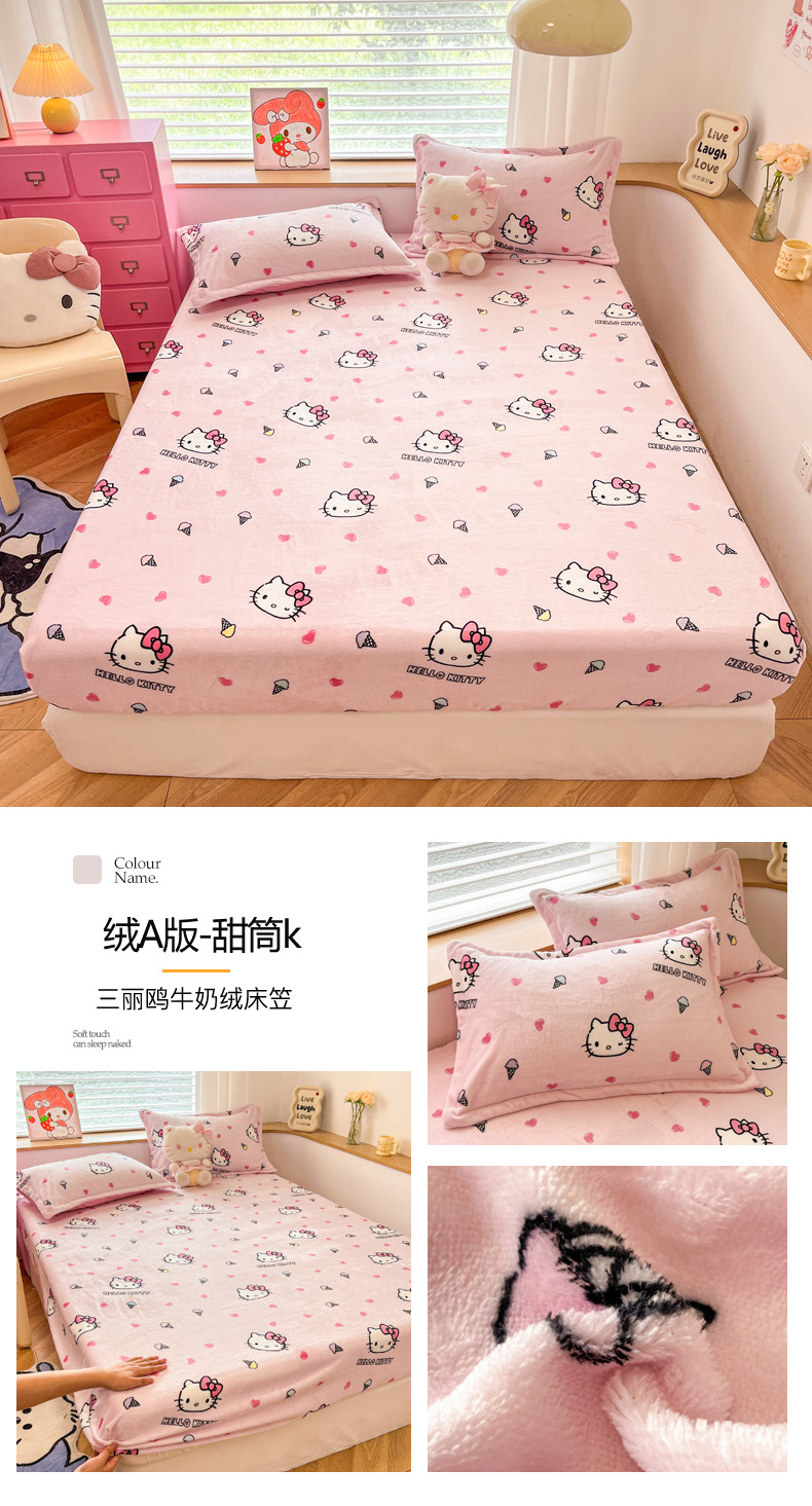 • 91家纺网 家纺一手货源 找家纺 暮思家居 2024新款三丽鸥正版授权高克重加厚保暖牛奶绒床笠三件套 绒A版-甜心库洛米