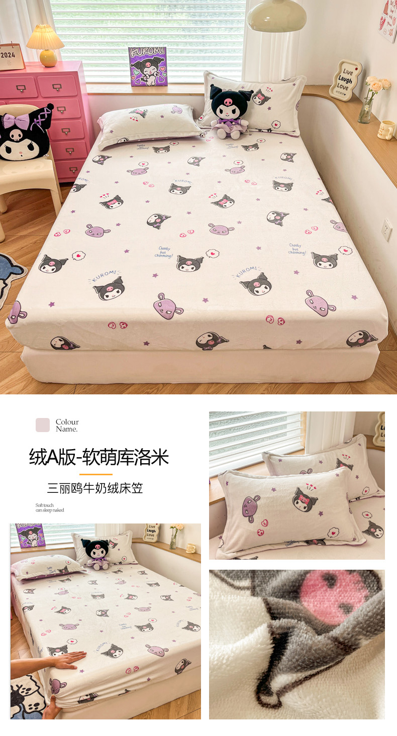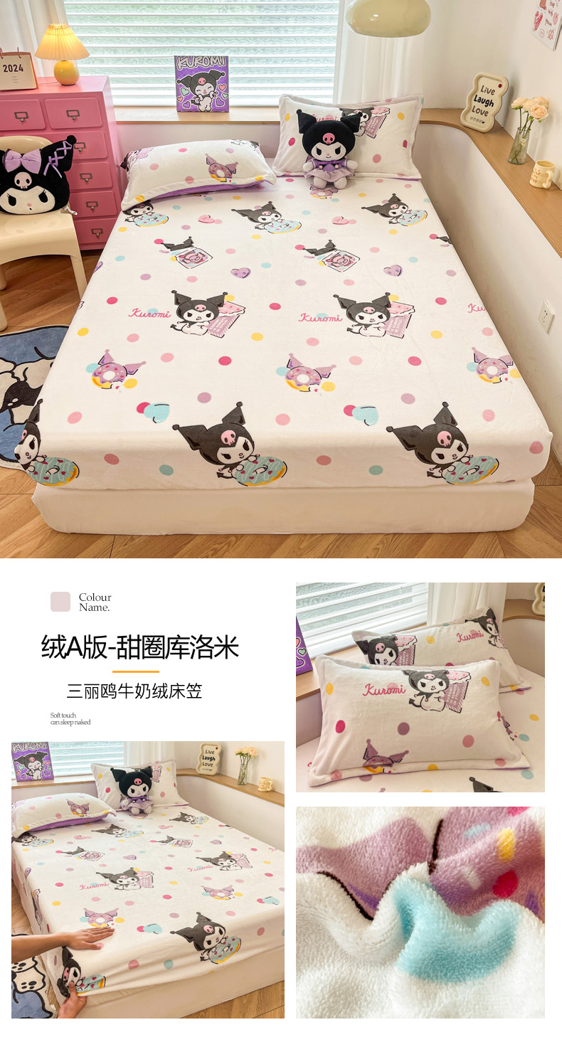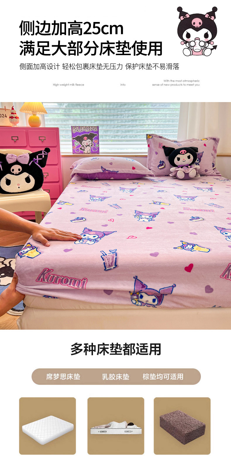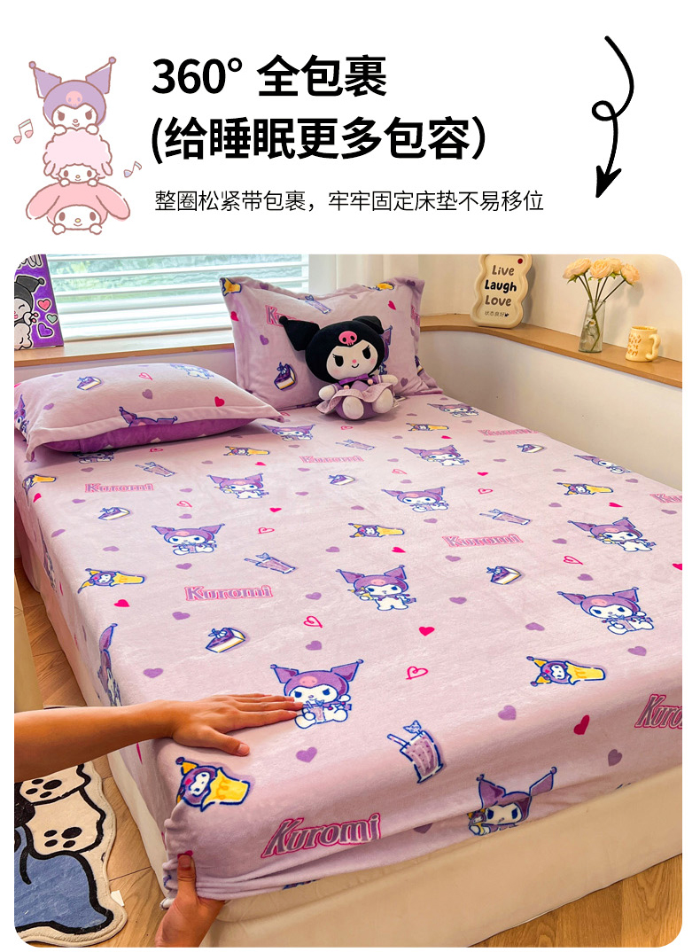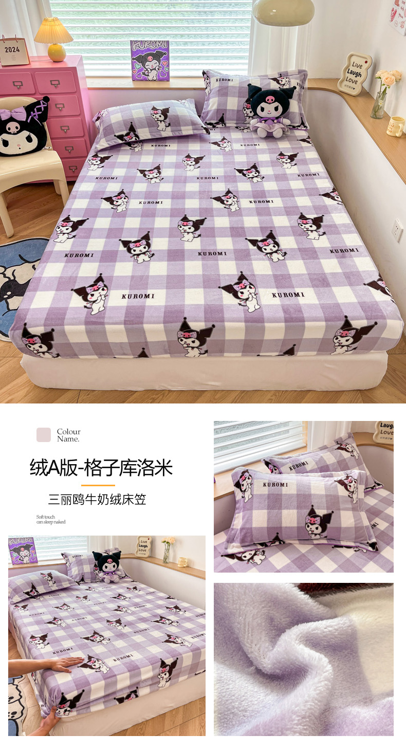 暮思家居 2024新款三丽鸥正版授权高克重加厚保暖牛奶绒床笠三件套 绒A版-甜心库洛米