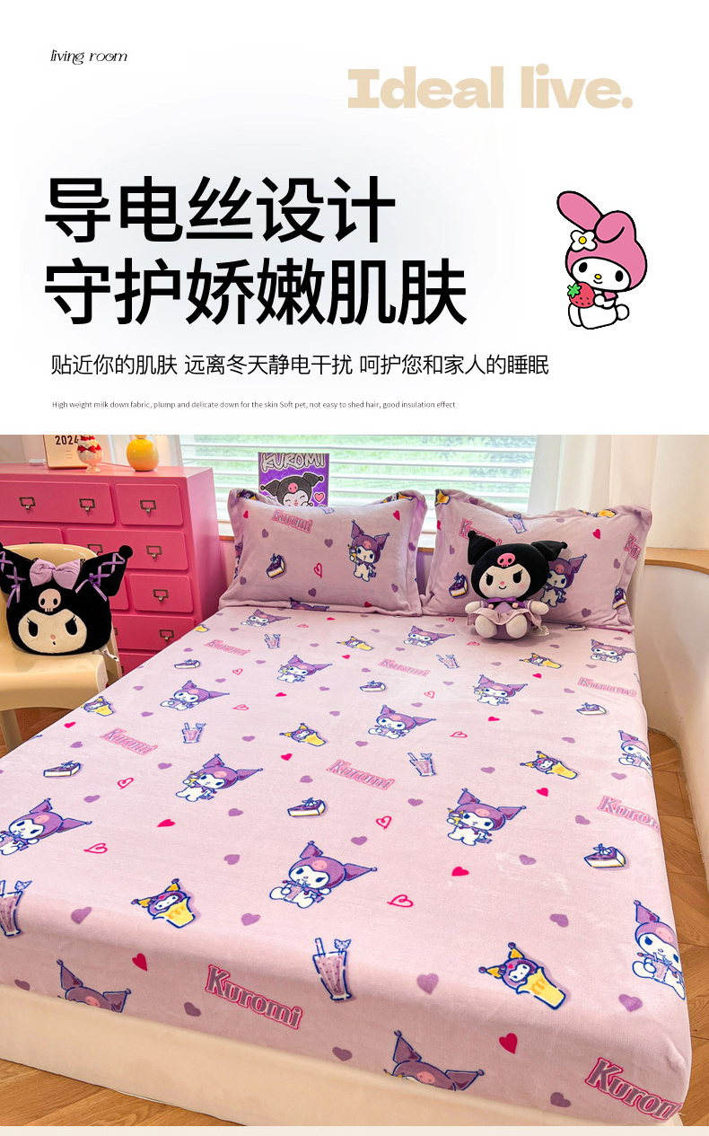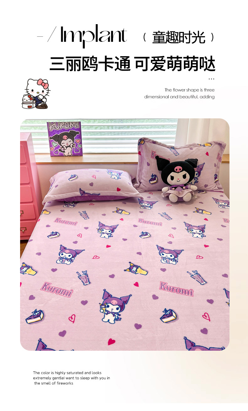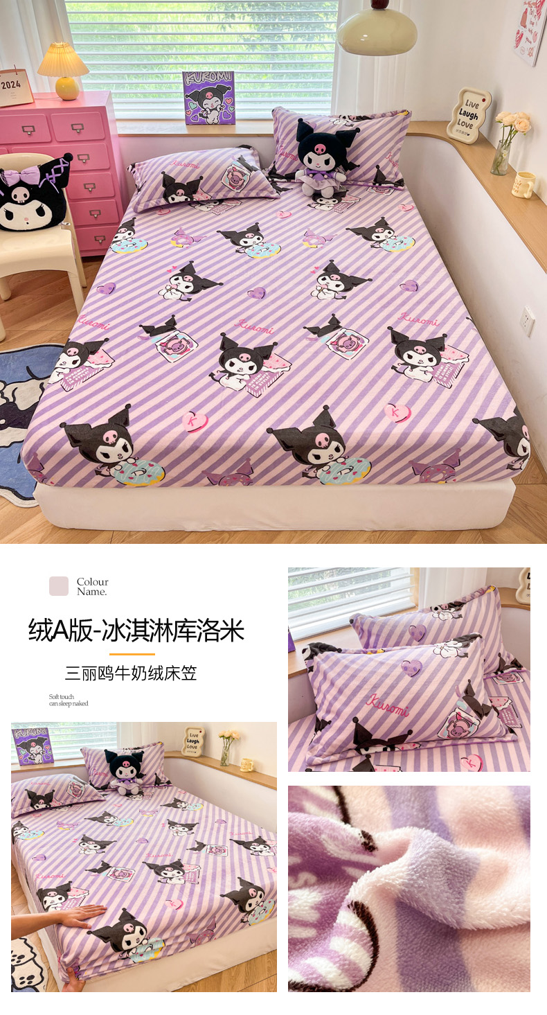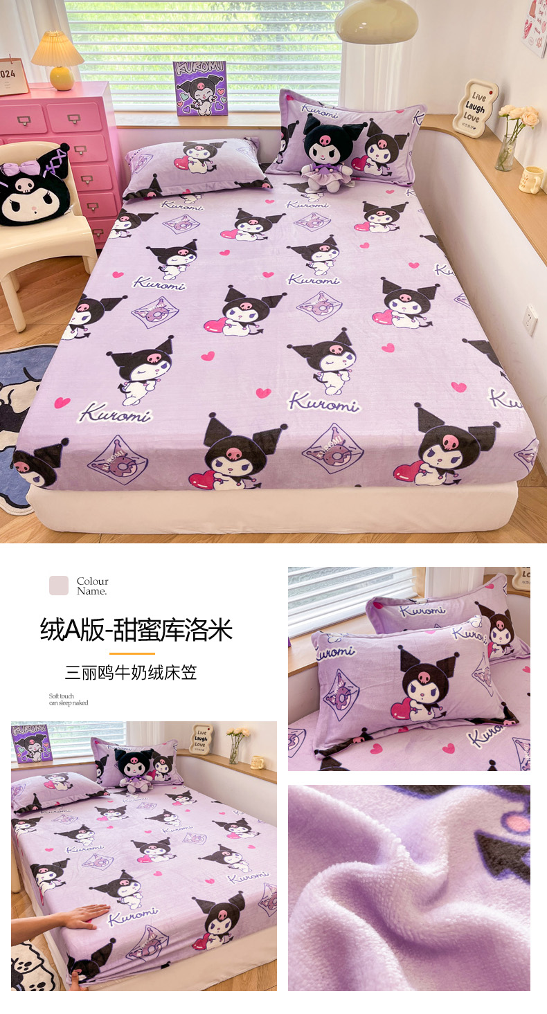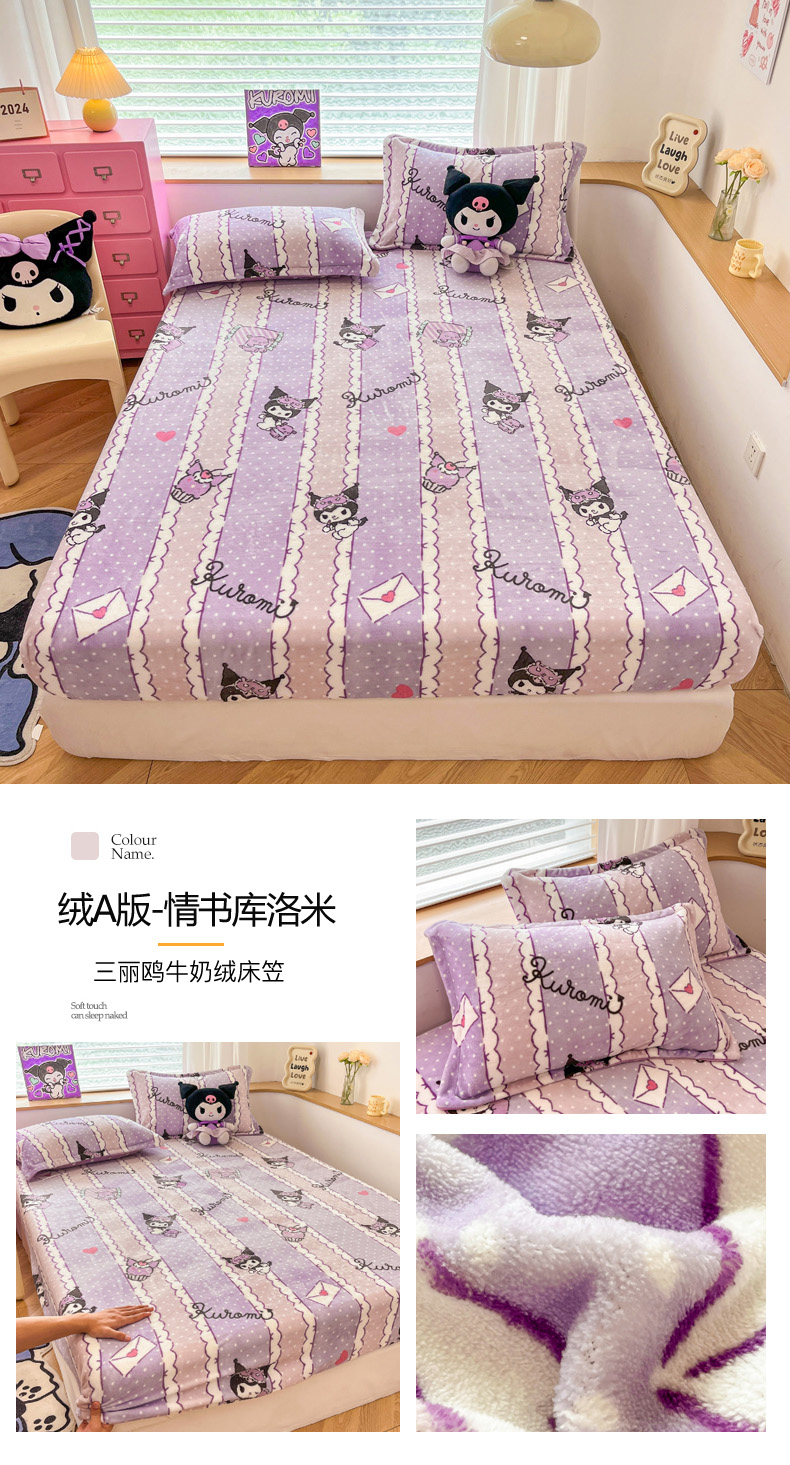 暮思家居 2024新款三丽鸥正版授权高克重加厚保暖牛奶绒床笠三件套 绒A版-甜心库洛米