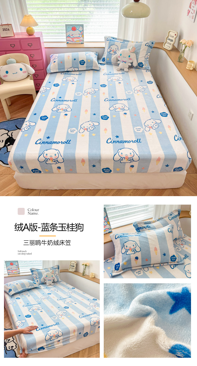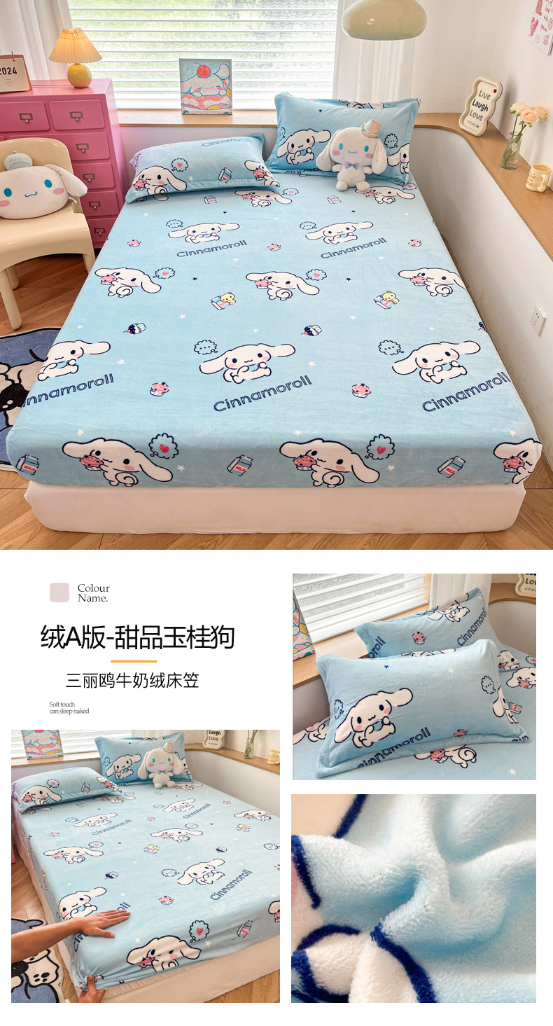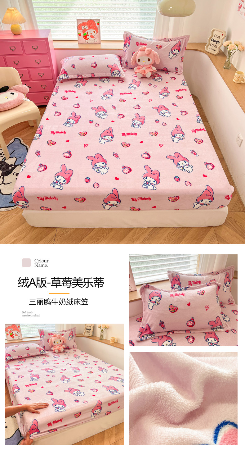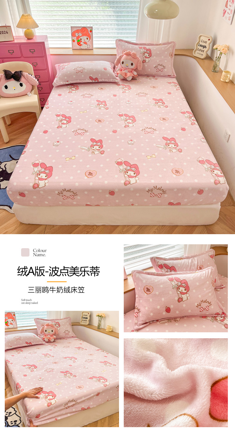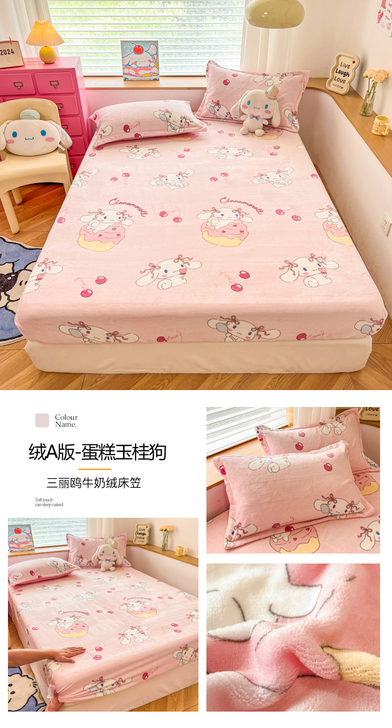 暮思家居 2024新款三丽鸥正版授权高克重加厚保暖牛奶绒床笠三件套 绒A版-甜心库洛米