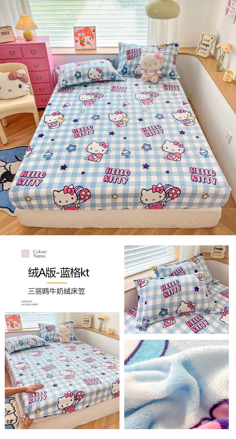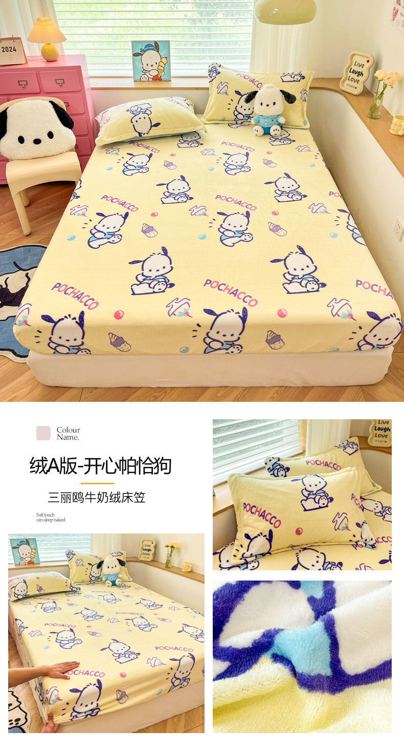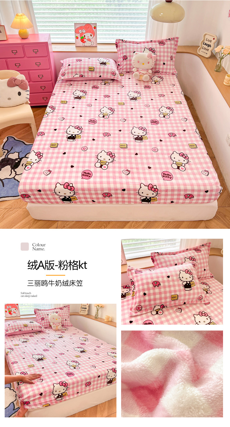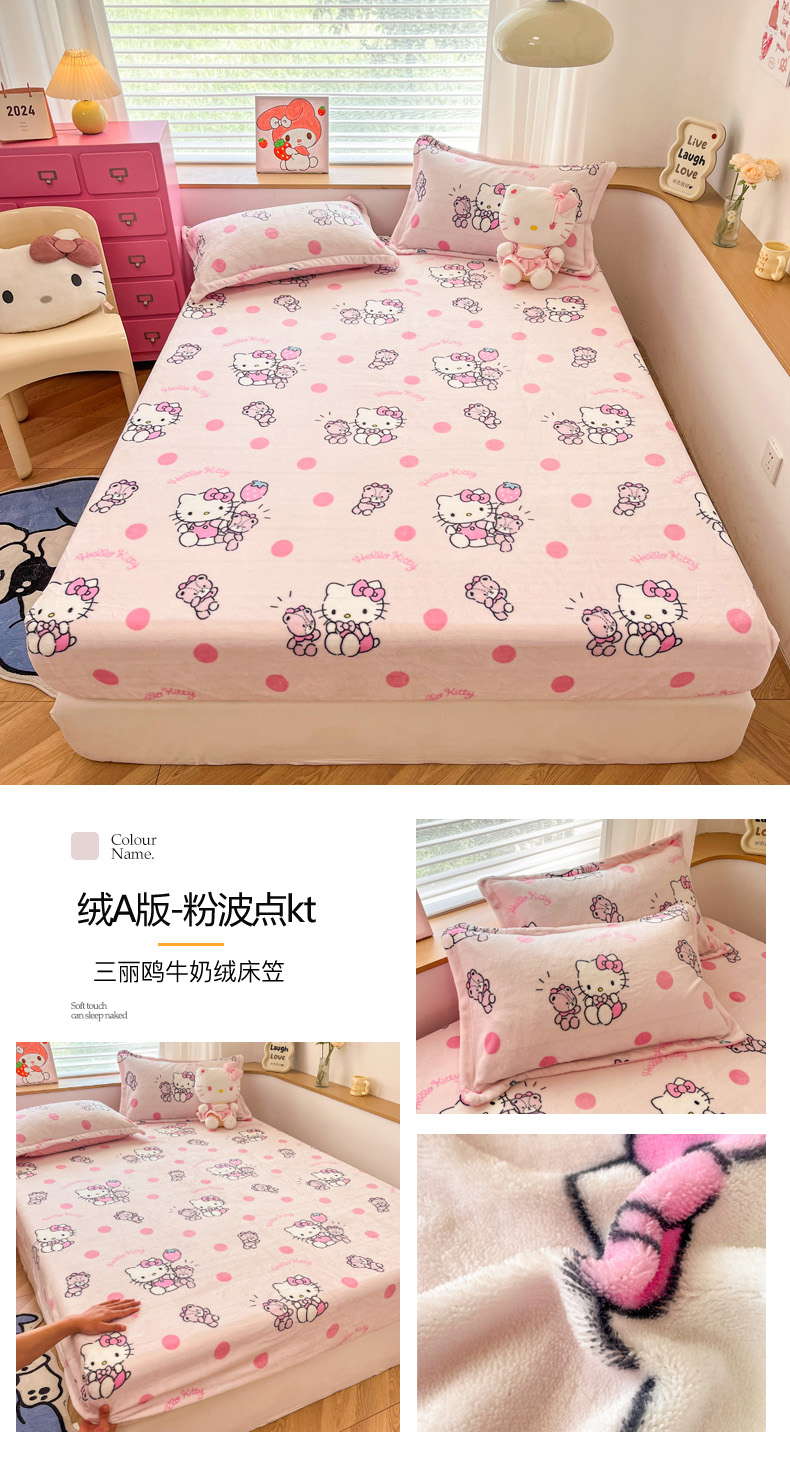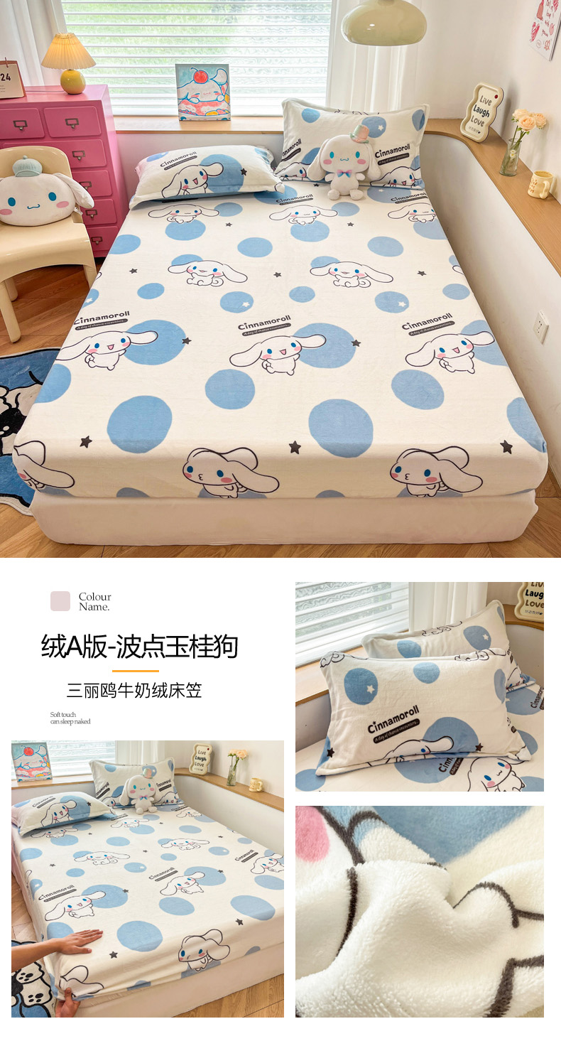 暮思家居 2024新款三丽鸥正版授权高克重加厚保暖牛奶绒床笠三件套 绒A版-甜心库洛米