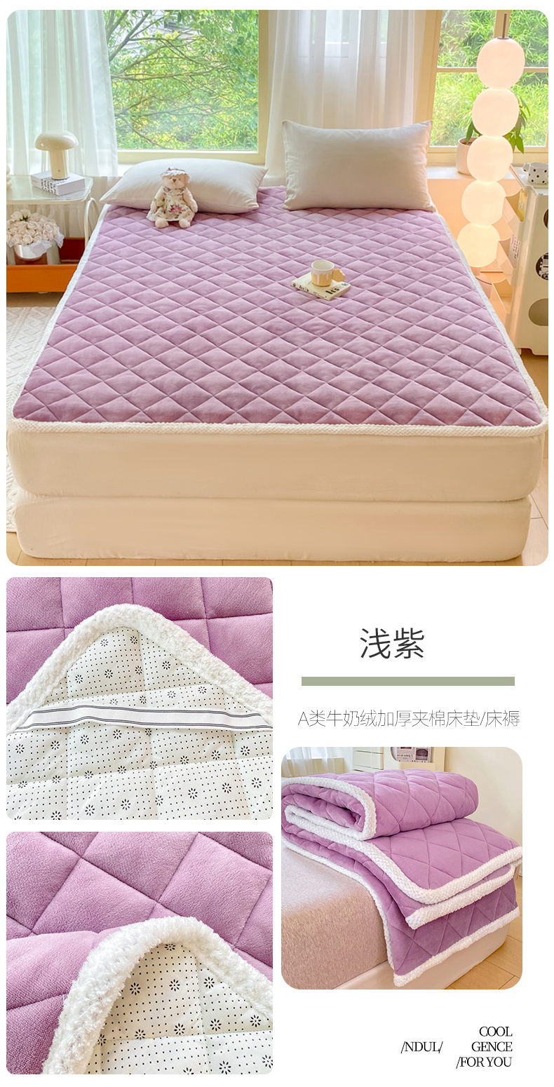 商品名称:正邦家纺 2024新款牛奶绒床垫小清新加厚床褥保暖宽包边可机洗床护垫床褥 浅紫