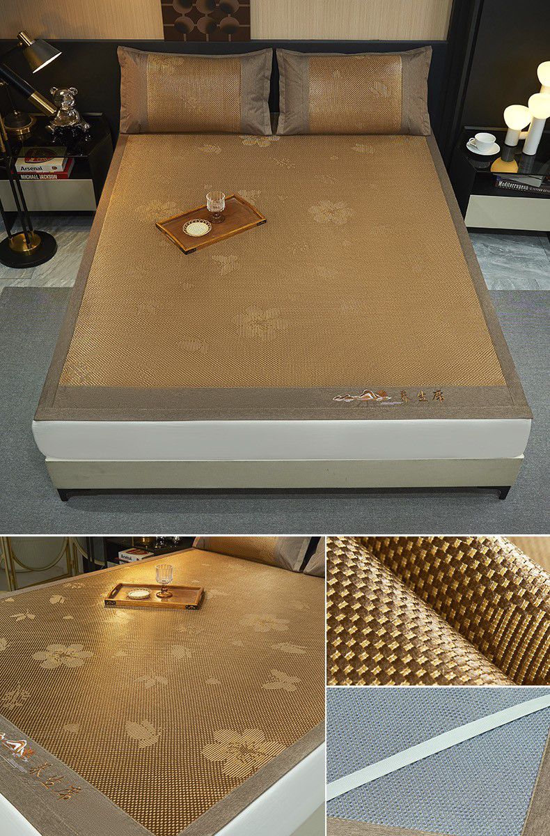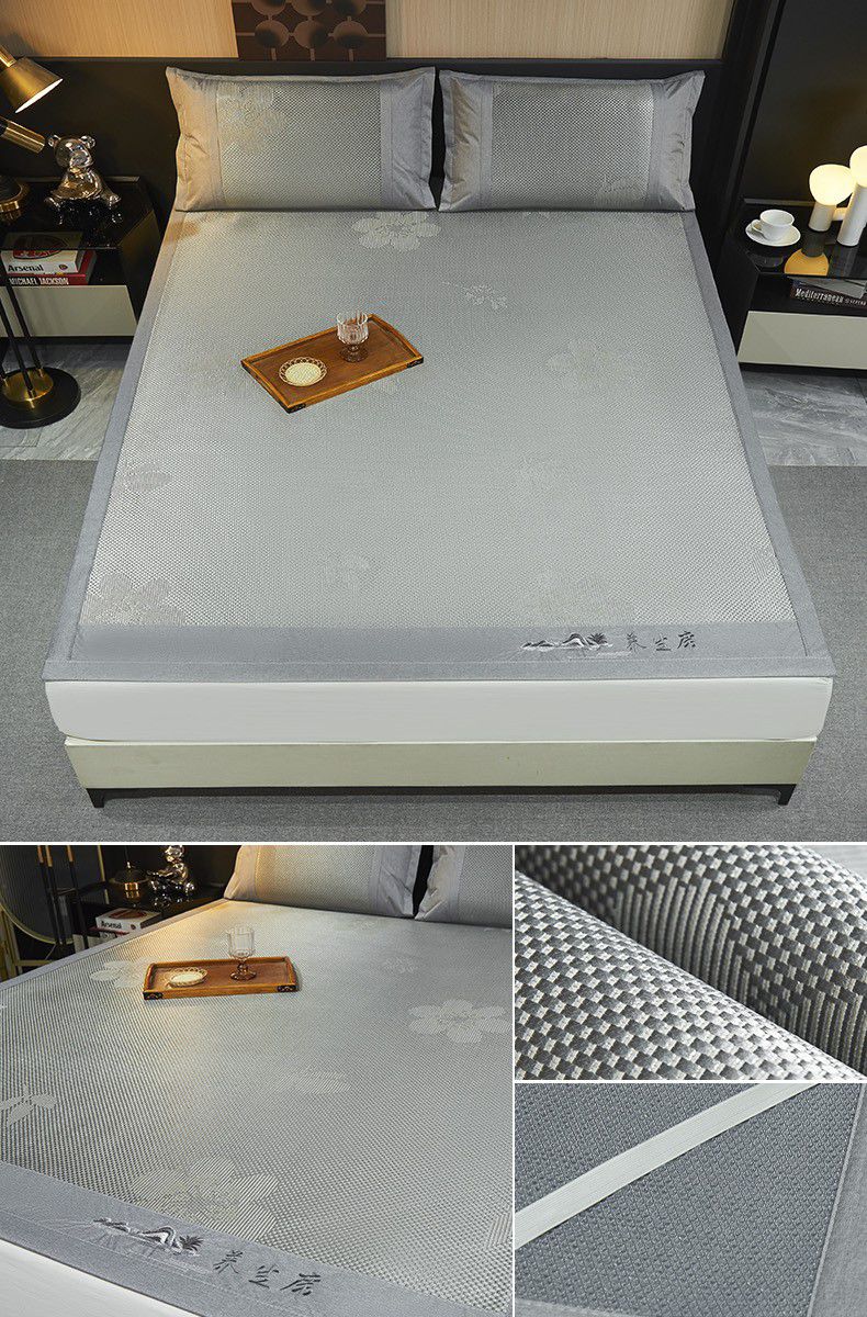 商品名称:青雅席业 2025新款3D复合提花清凉冰藤席-花语系列 花语-灰