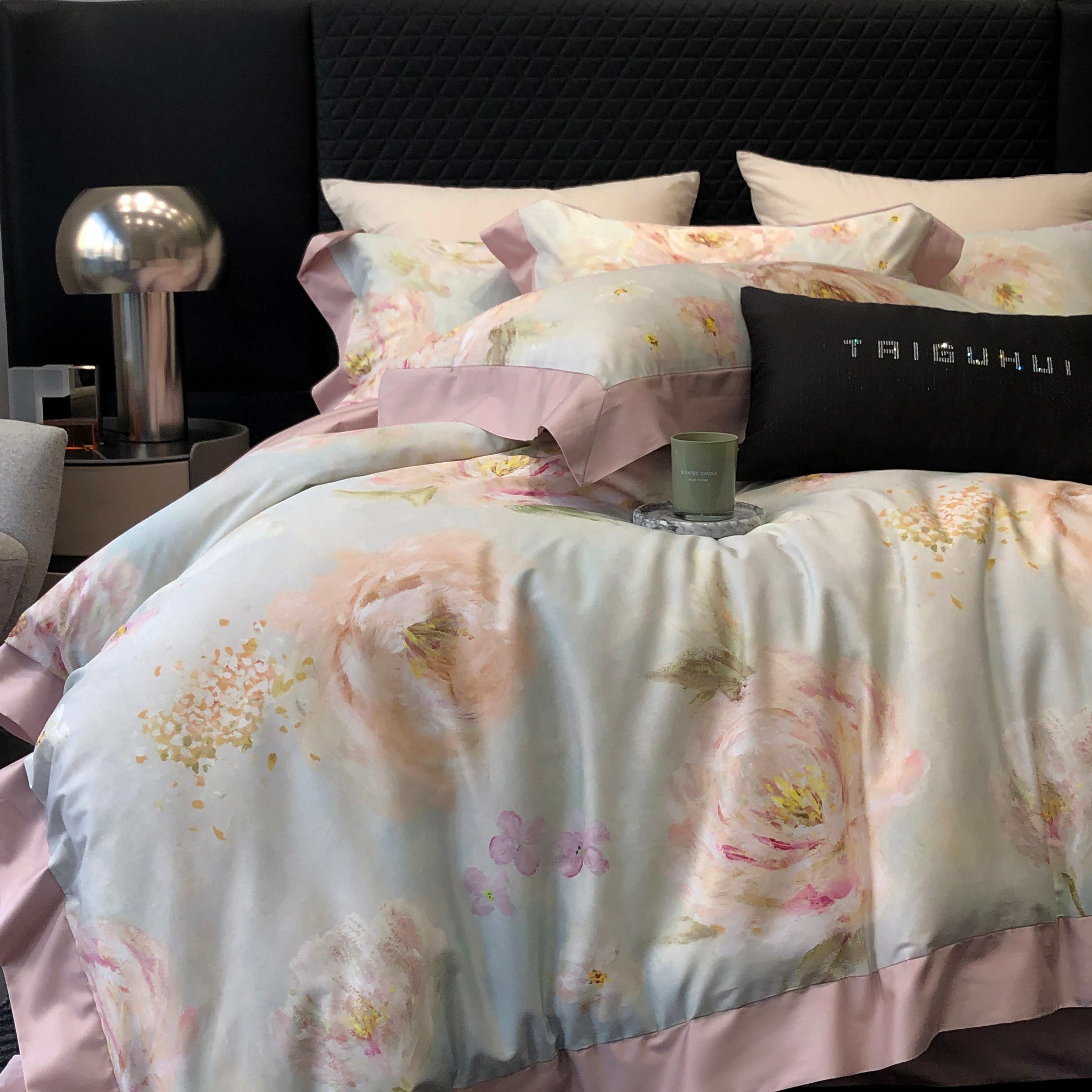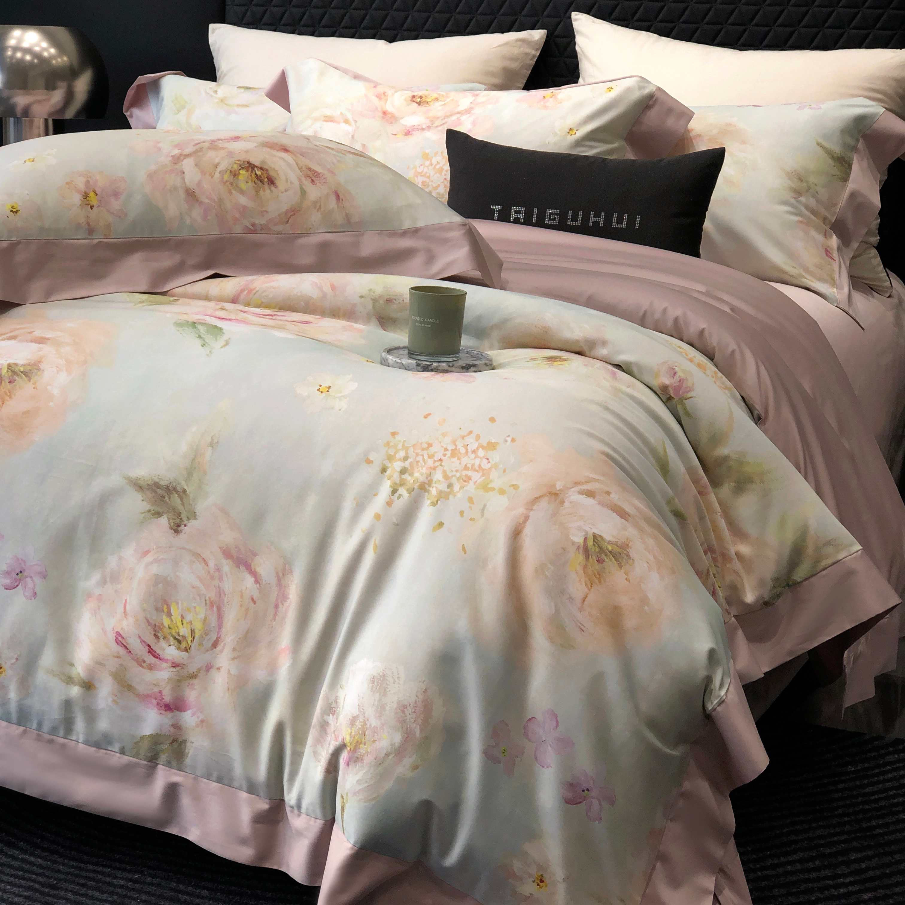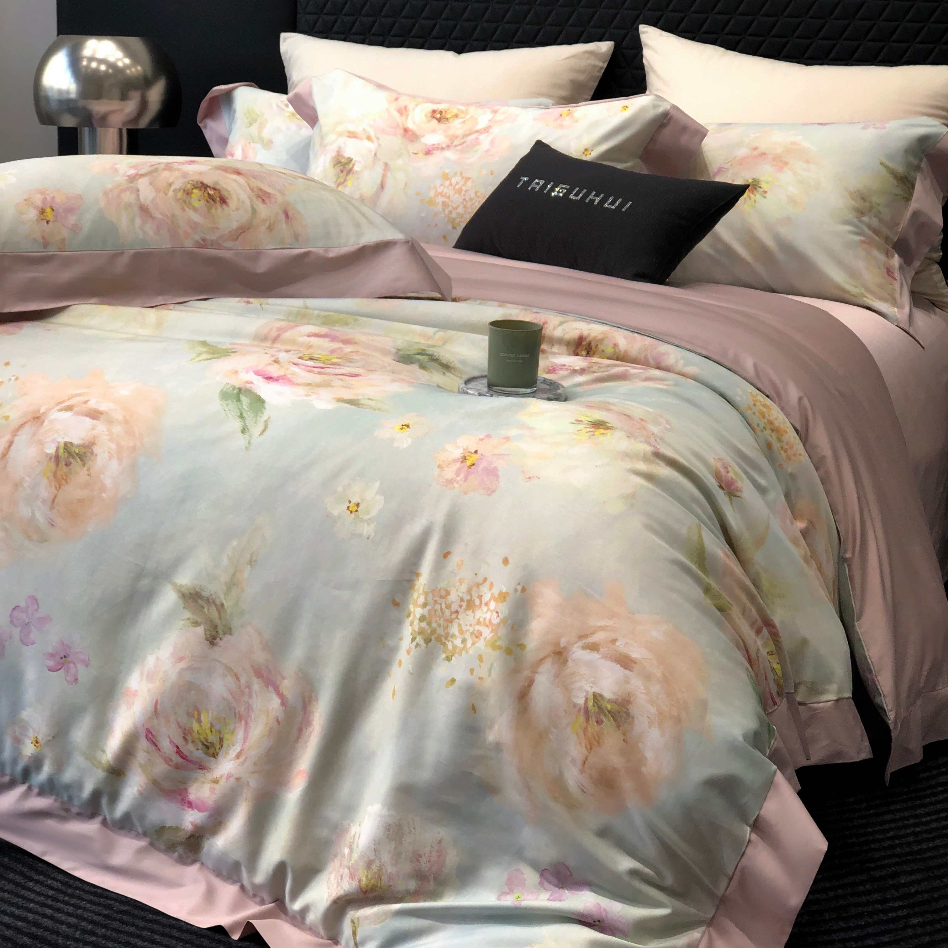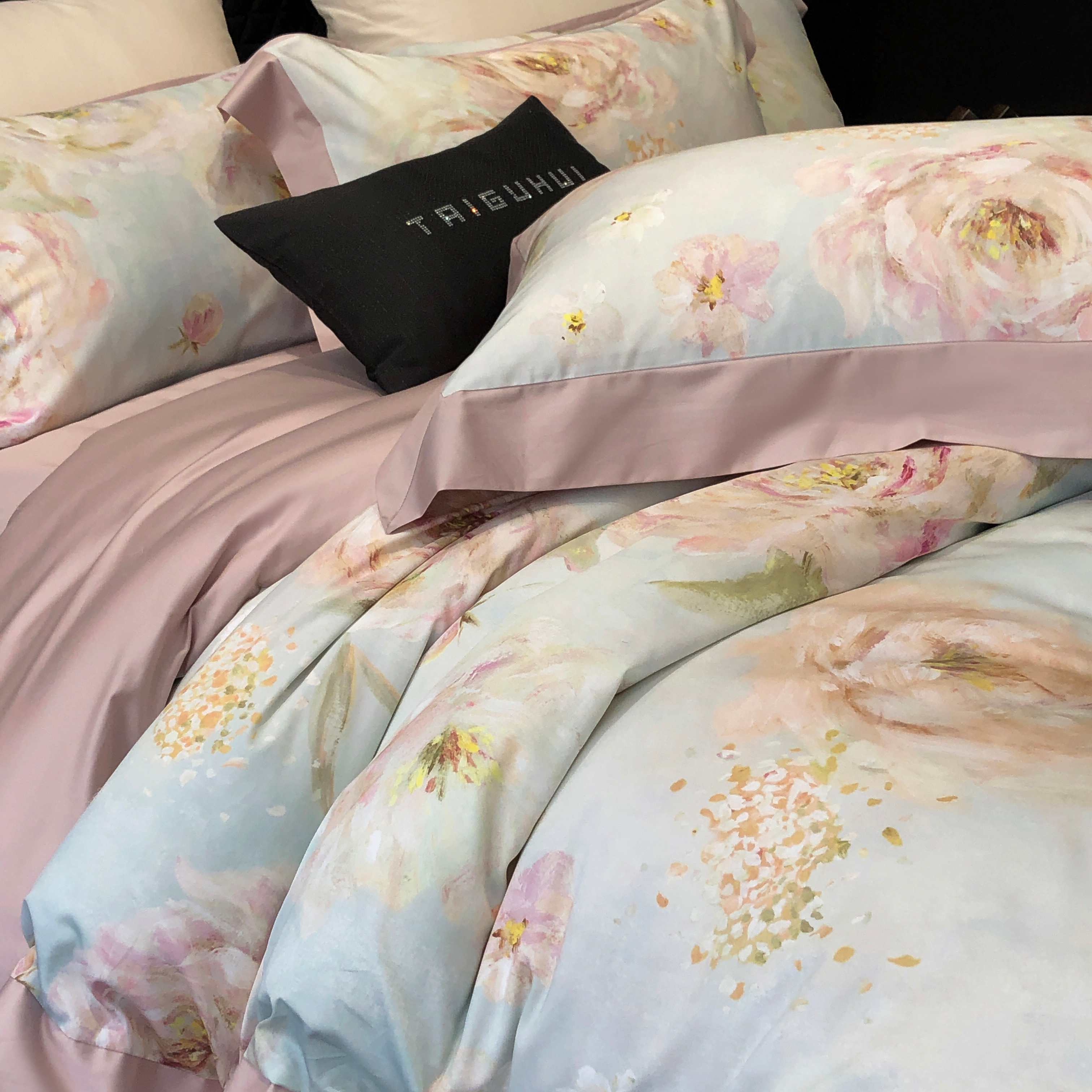 (总)太古汇家居 2025新款活性数码印花四件套,丽奥娜-松石绿,丽奥娜-杏子灰,丽奥娜-樱落紫,莉安娜-粉,莉安娜-卡其,莉安娜-绿,西莉娅-淡紫,西莉娅-粉色