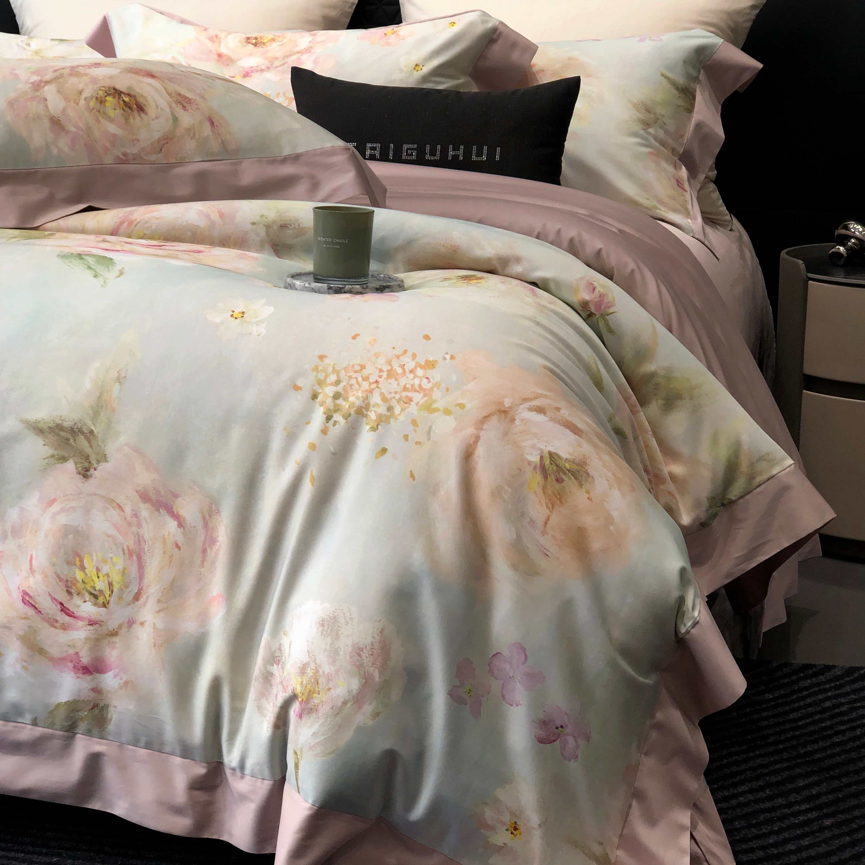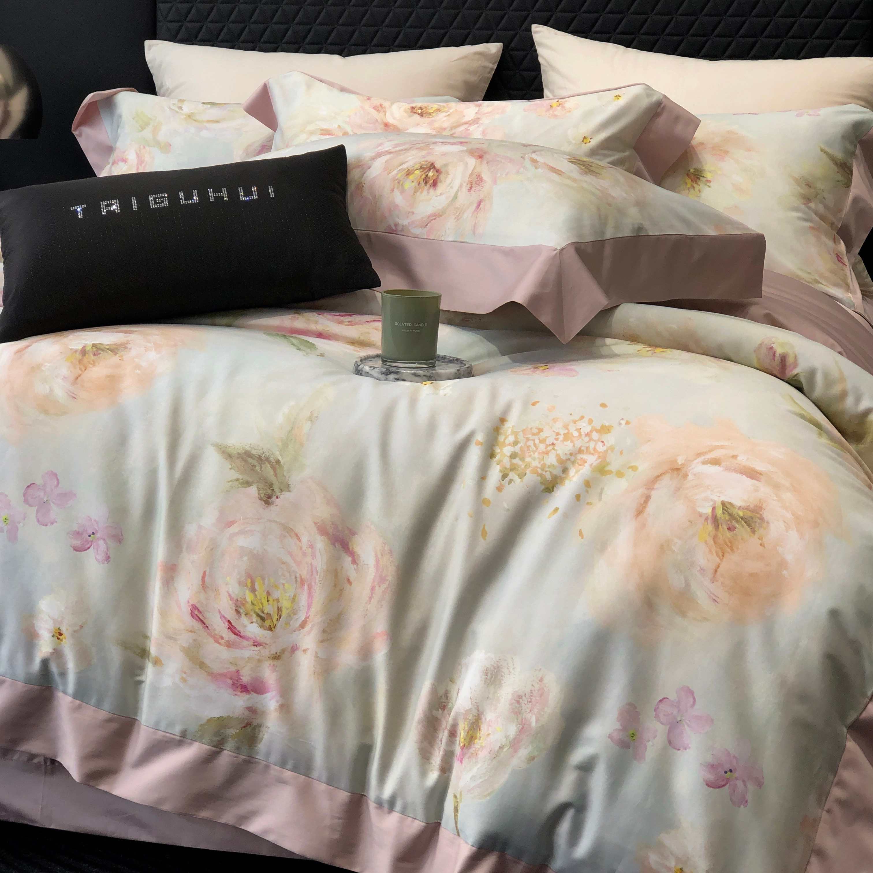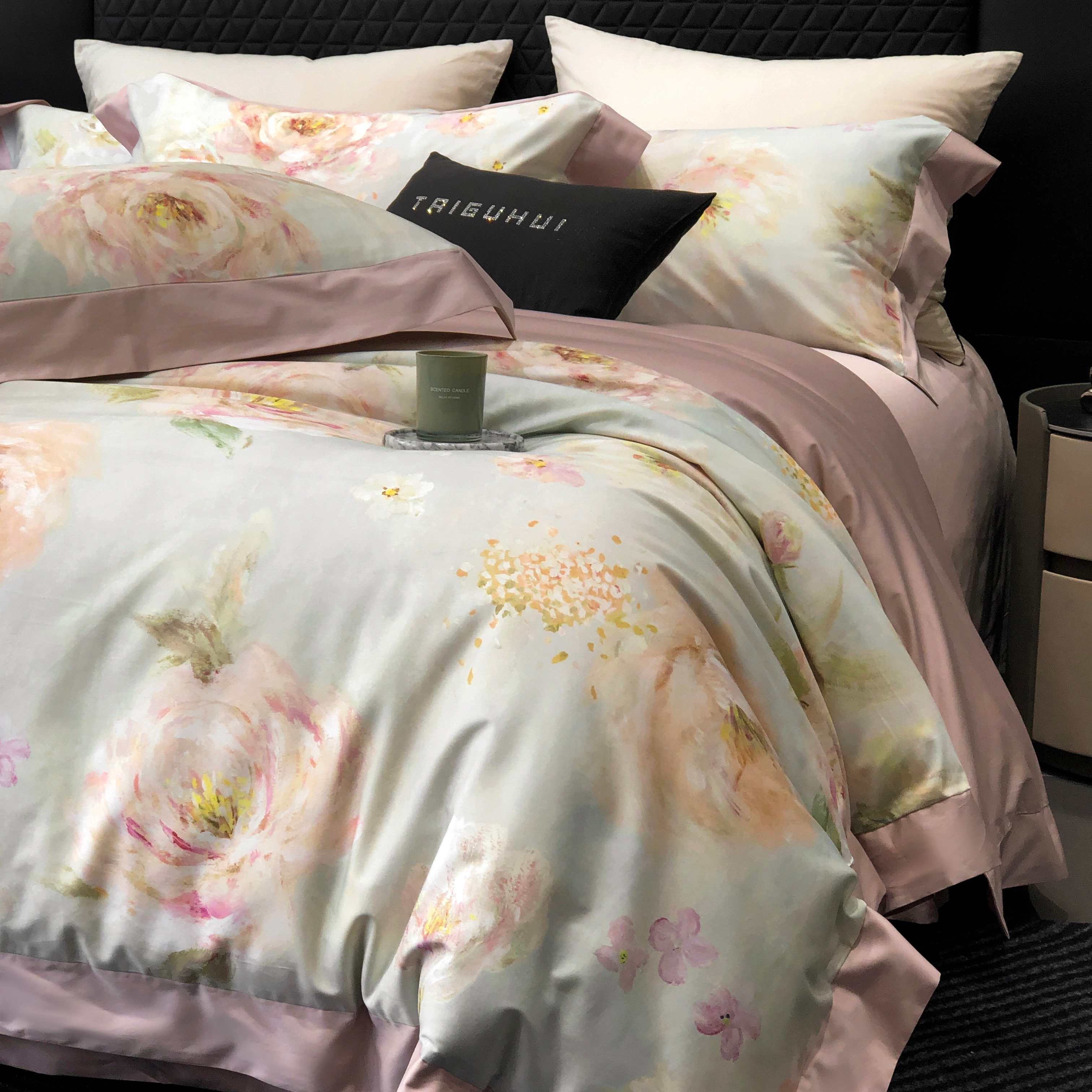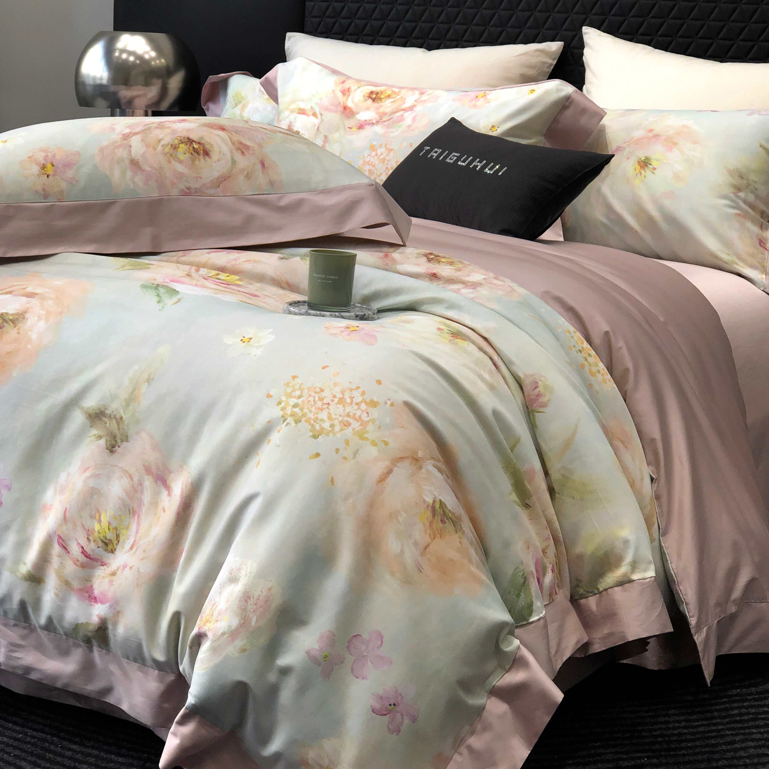 (总)太古汇家居 2025新款活性数码印花四件套,丽奥娜-松石绿,丽奥娜-杏子灰,丽奥娜-樱落紫,莉安娜-粉,莉安娜-卡其,莉安娜-绿,西莉娅-淡紫,西莉娅-粉色