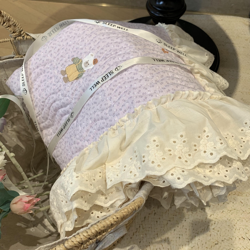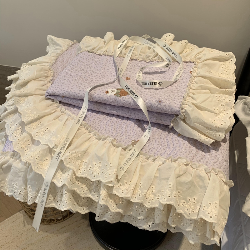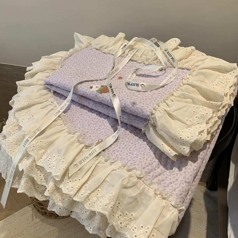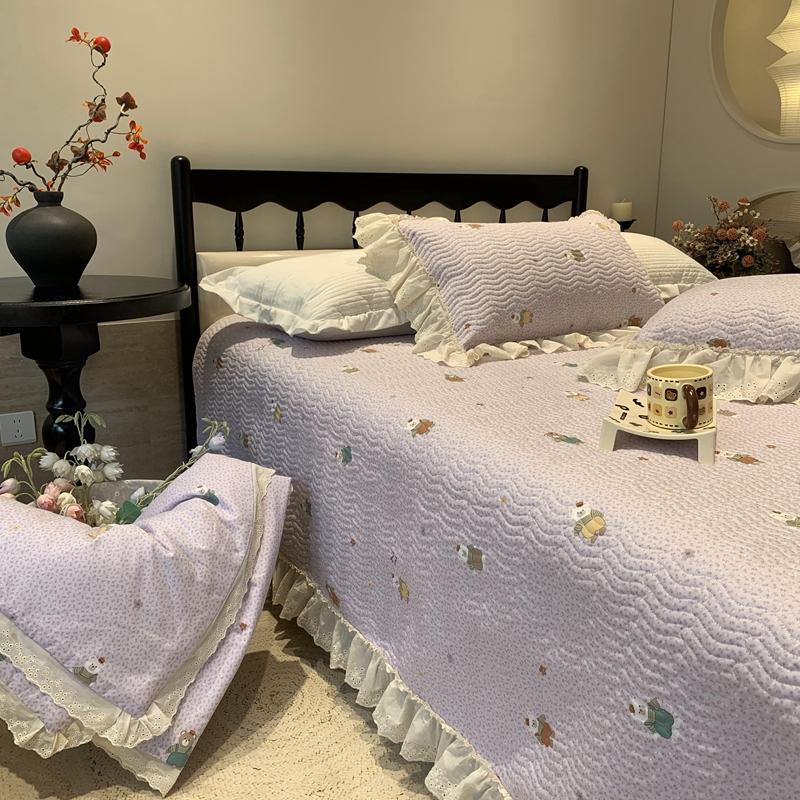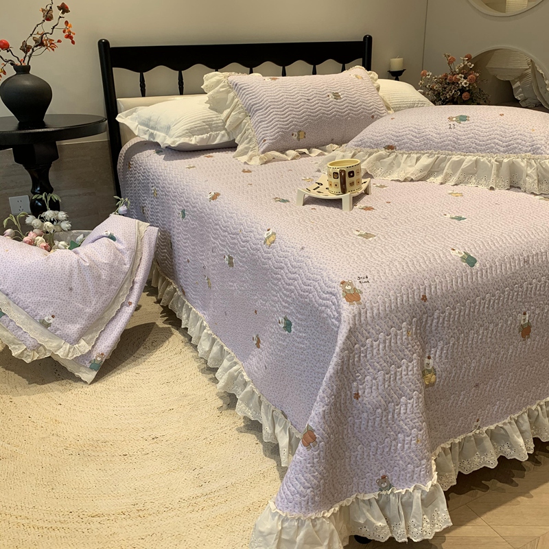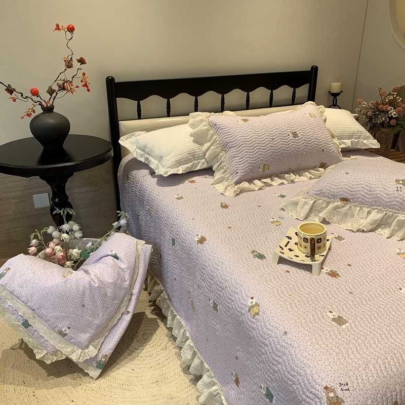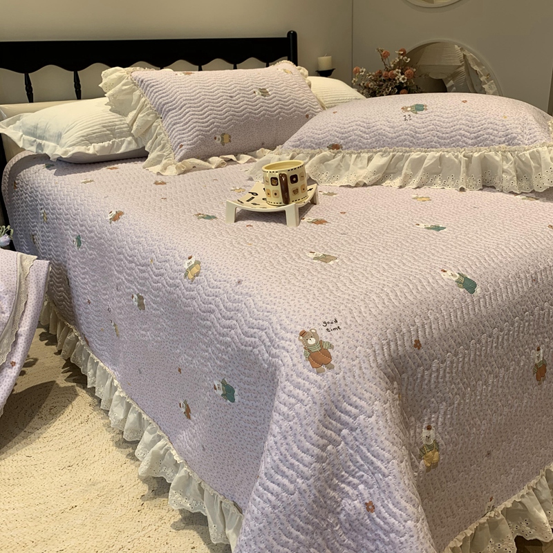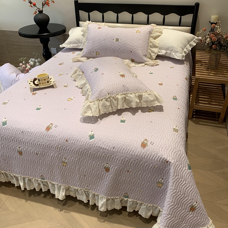 奈萝家纺 2025新款全棉蕾丝花边床盖三件套四件套纯棉花边夏被 呆呆熊