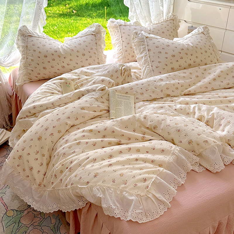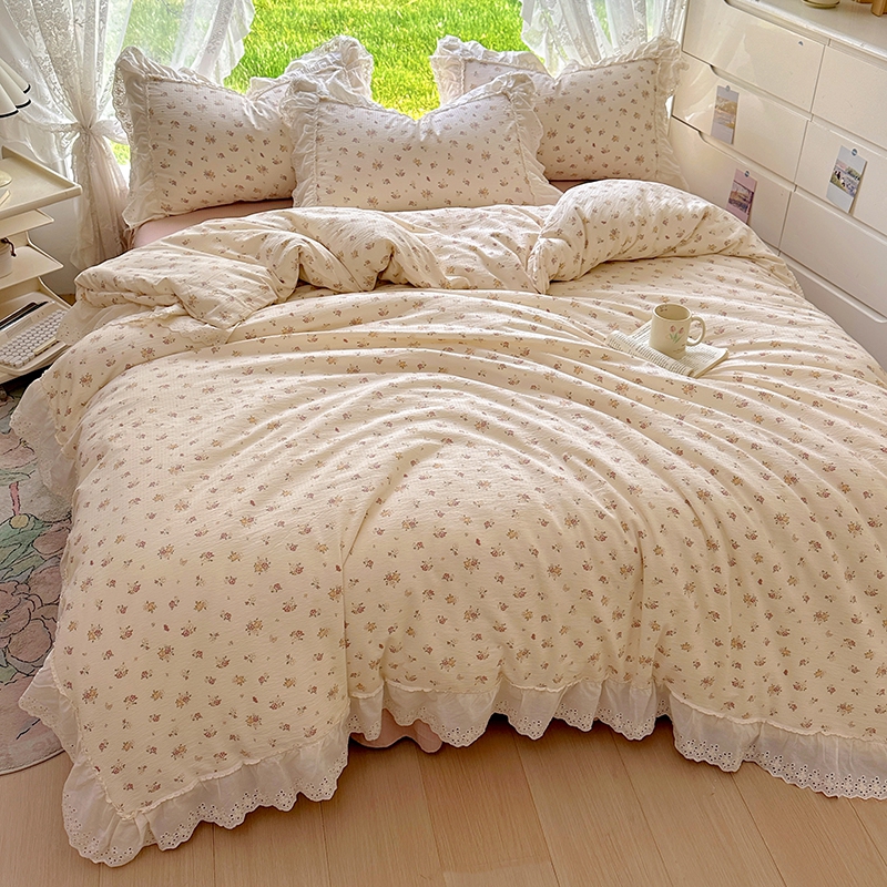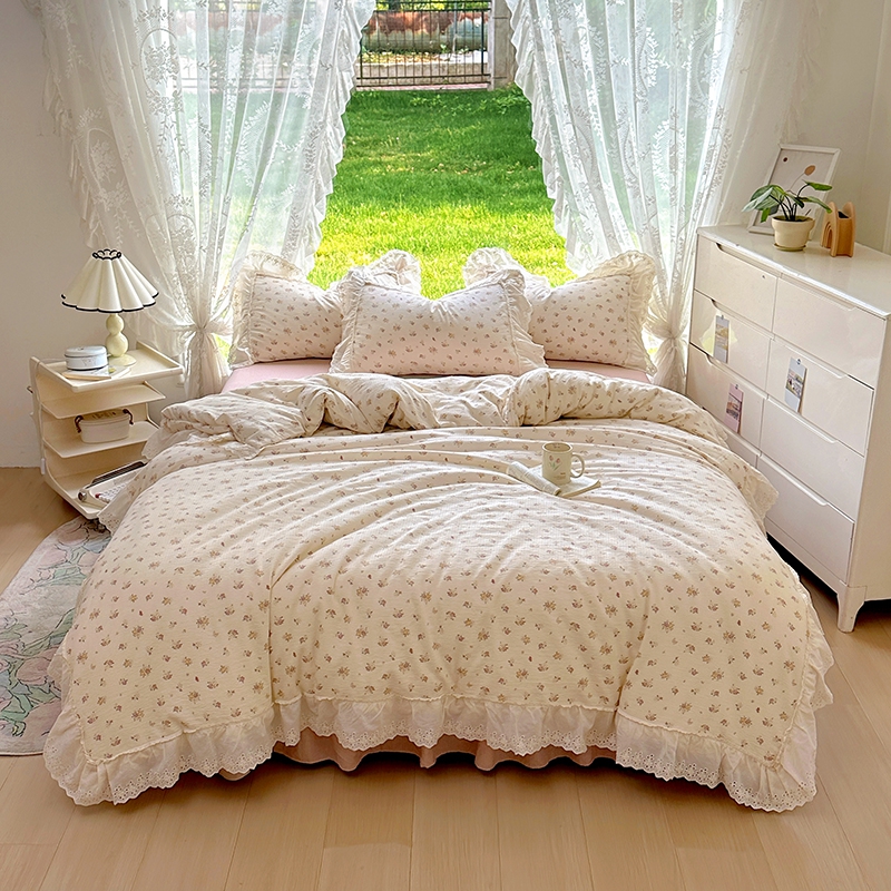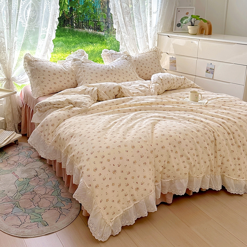 仟网汇 2025新款皱皱纱花边床裙四件套多功能夏被夏凉被空调被四件套四季通用 小春日和