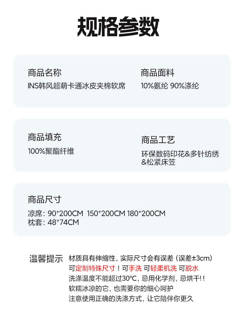 商品名称:(总)RYB红黄兰 2025新款ins设计师原创大版小清新超萌卡通冰皮夹棉软凉席