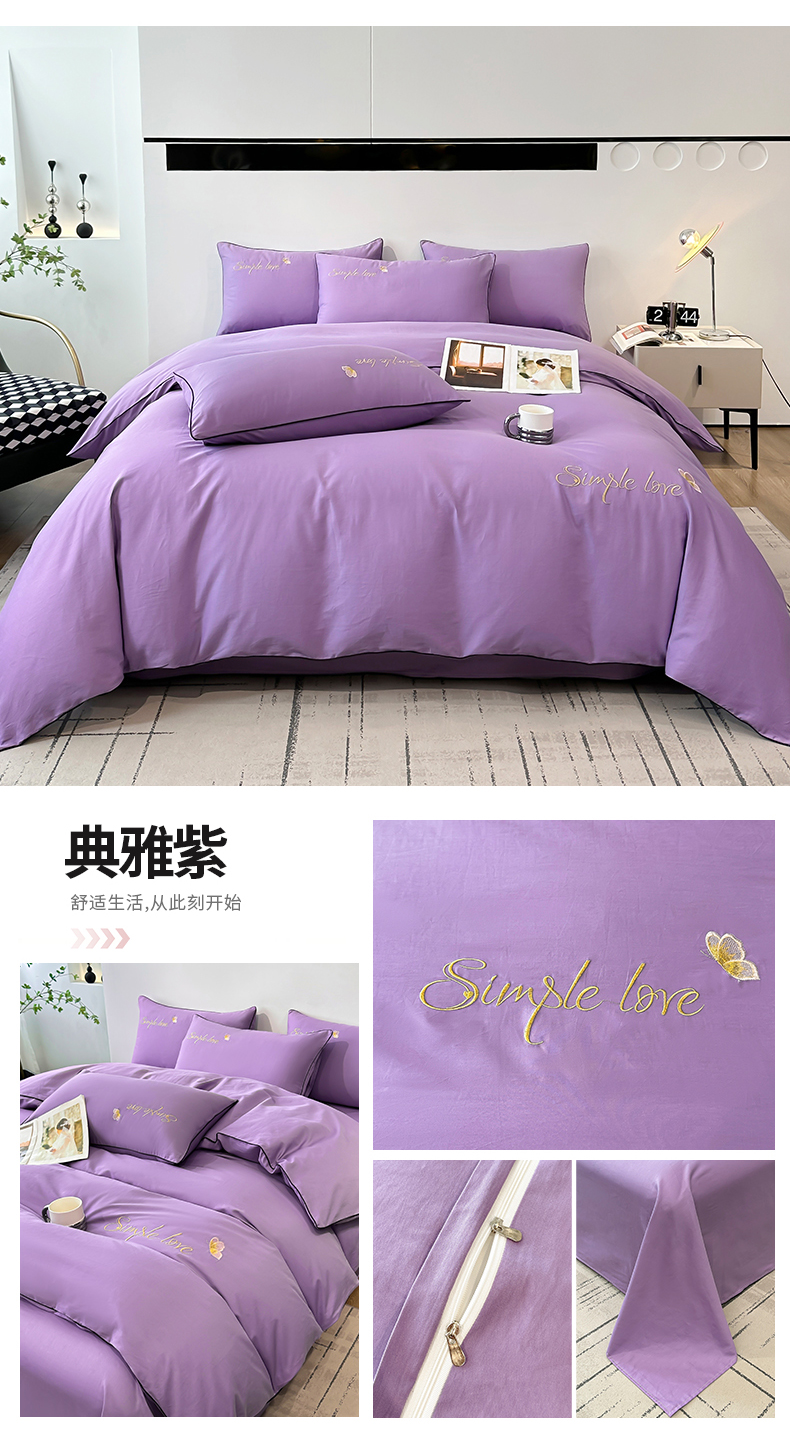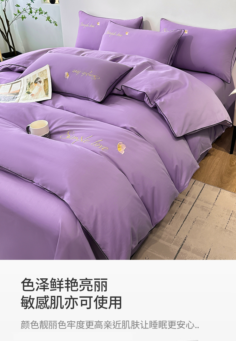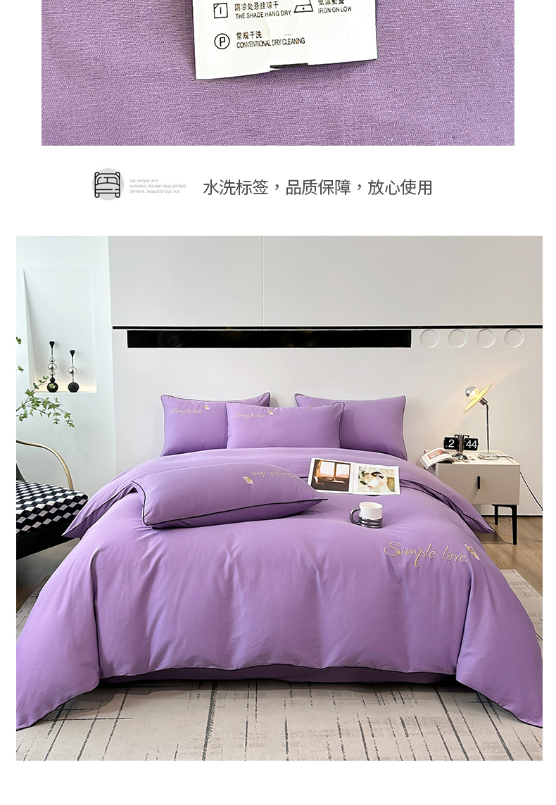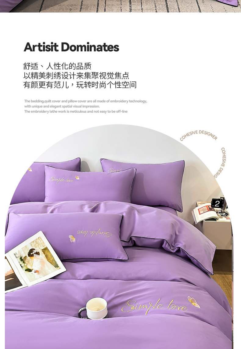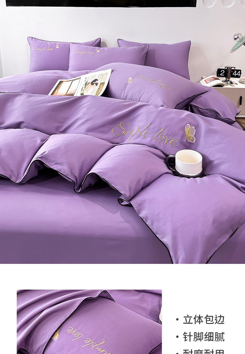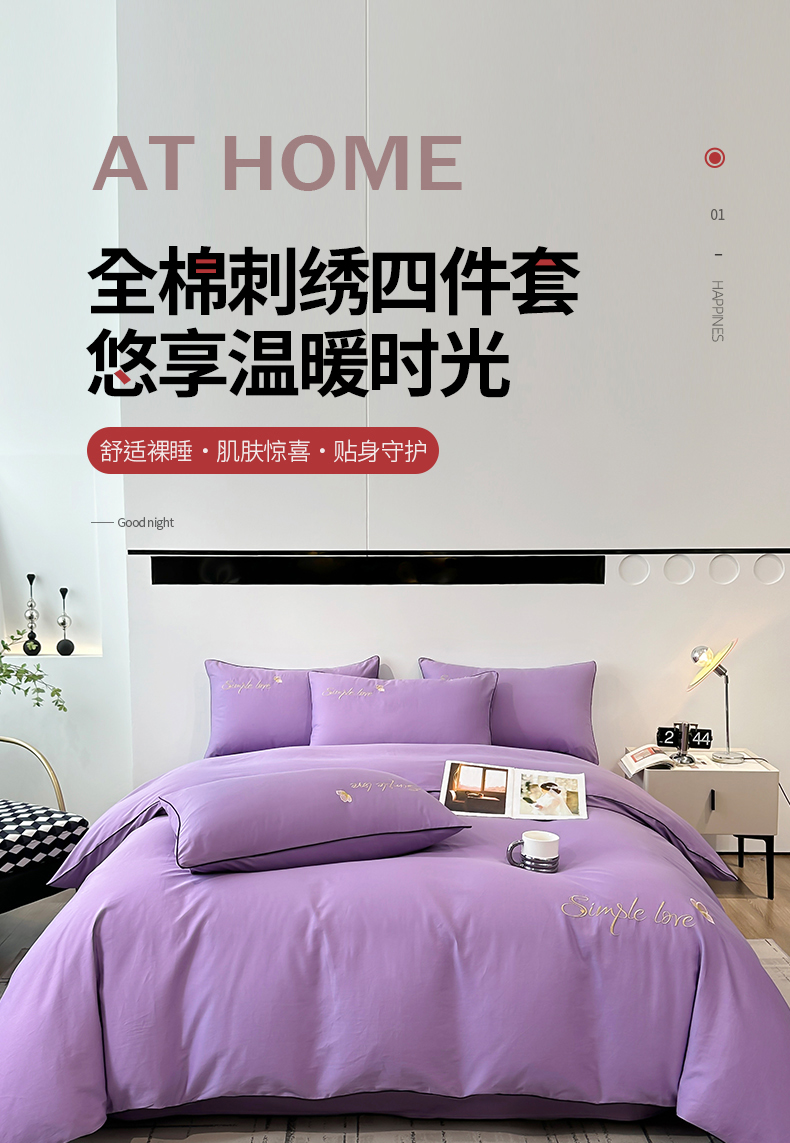 宇彬家纺 2025直播热款新款13374全棉母婴级麻绳滚边纯棉色刺绣单品被套 轻奢 典雅紫