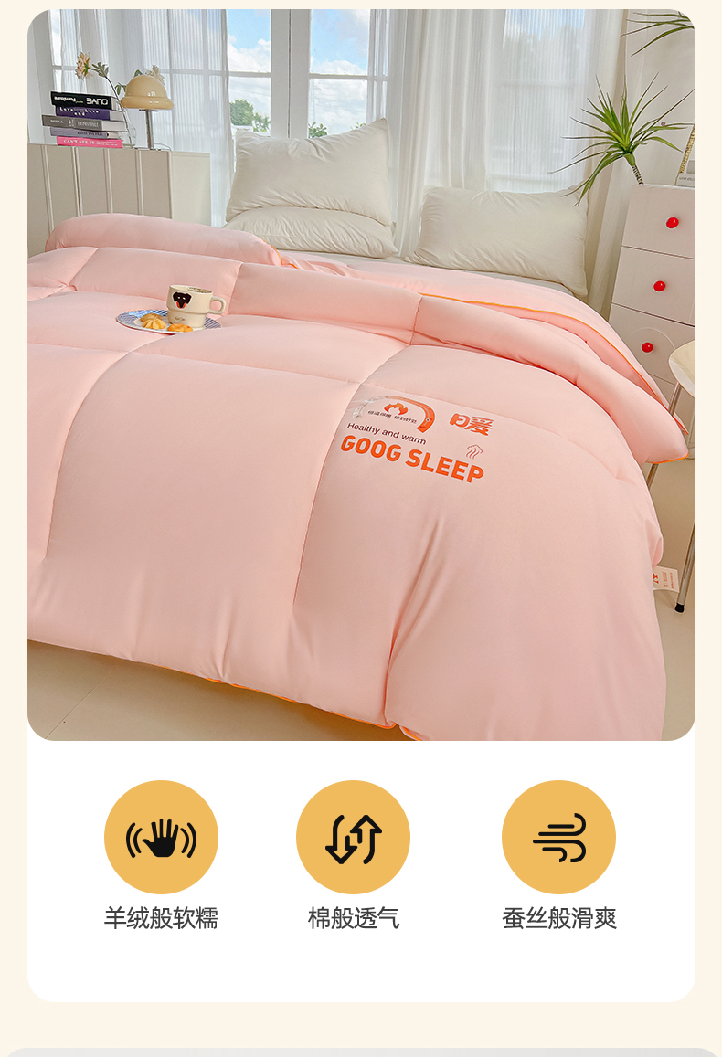 • 91家纺网 家纺一手货源 找家纺 美尔惠家纺 2025新款母婴级直播热款超柔冬被被子被芯-方格系列 方格-少女粉