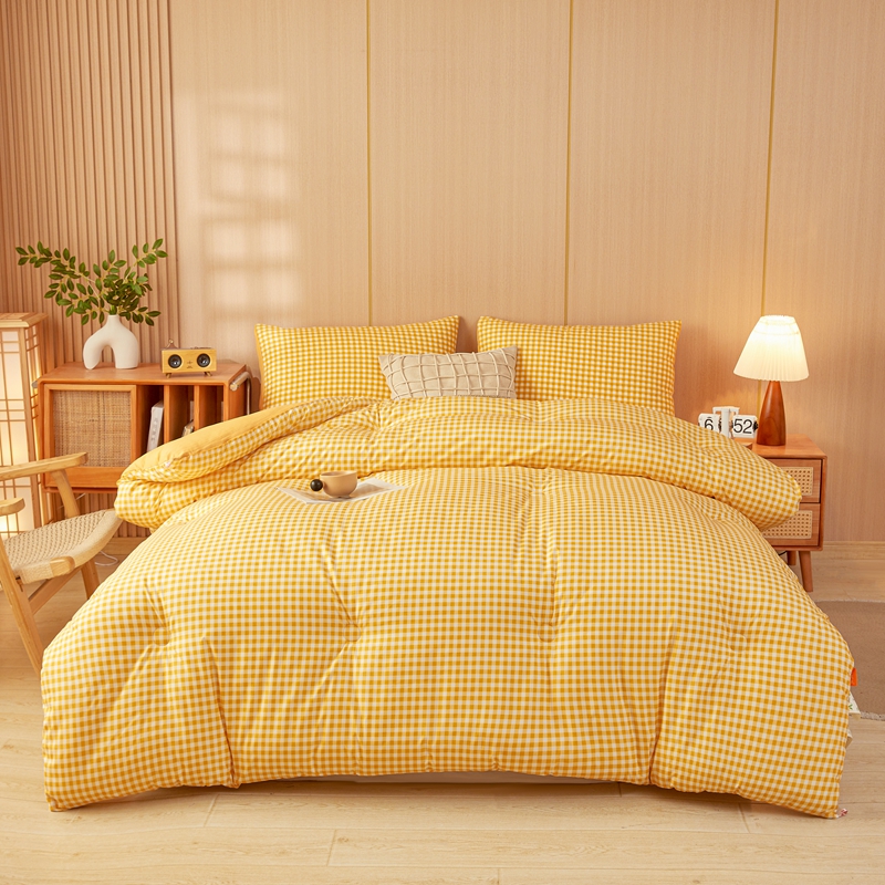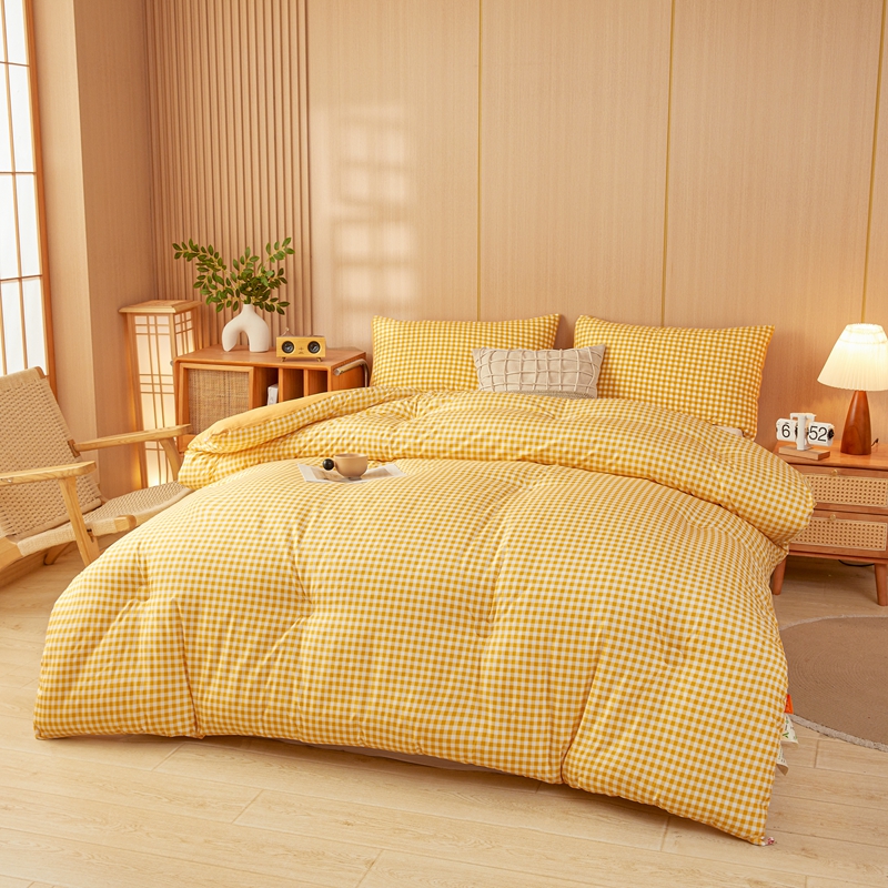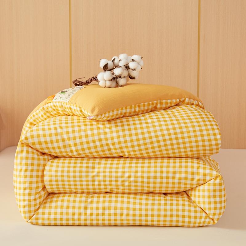 • 91家纺网 家纺一手货源 找家纺 美尔惠家纺 2025新款无印水洗棉格子春秋被冬被被子被芯学生季被芯 黄小格