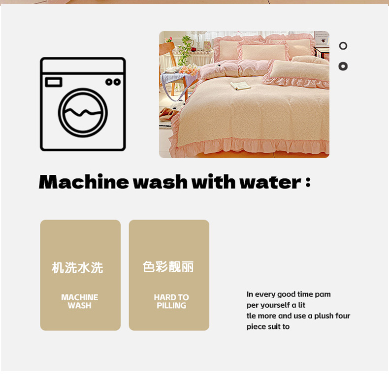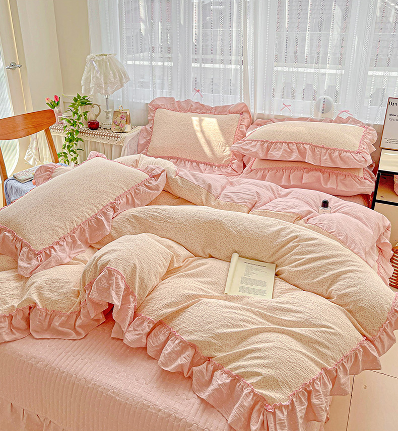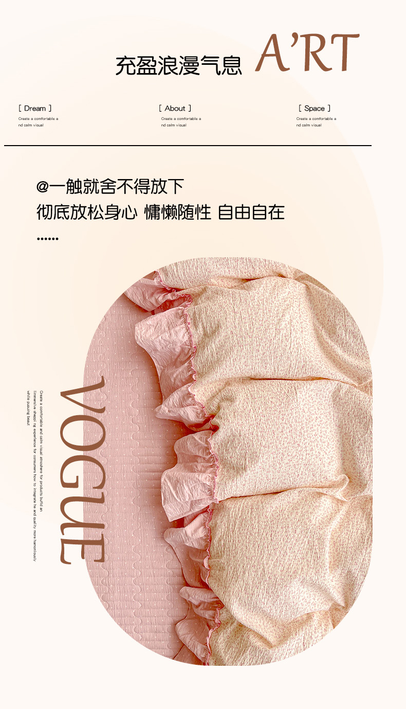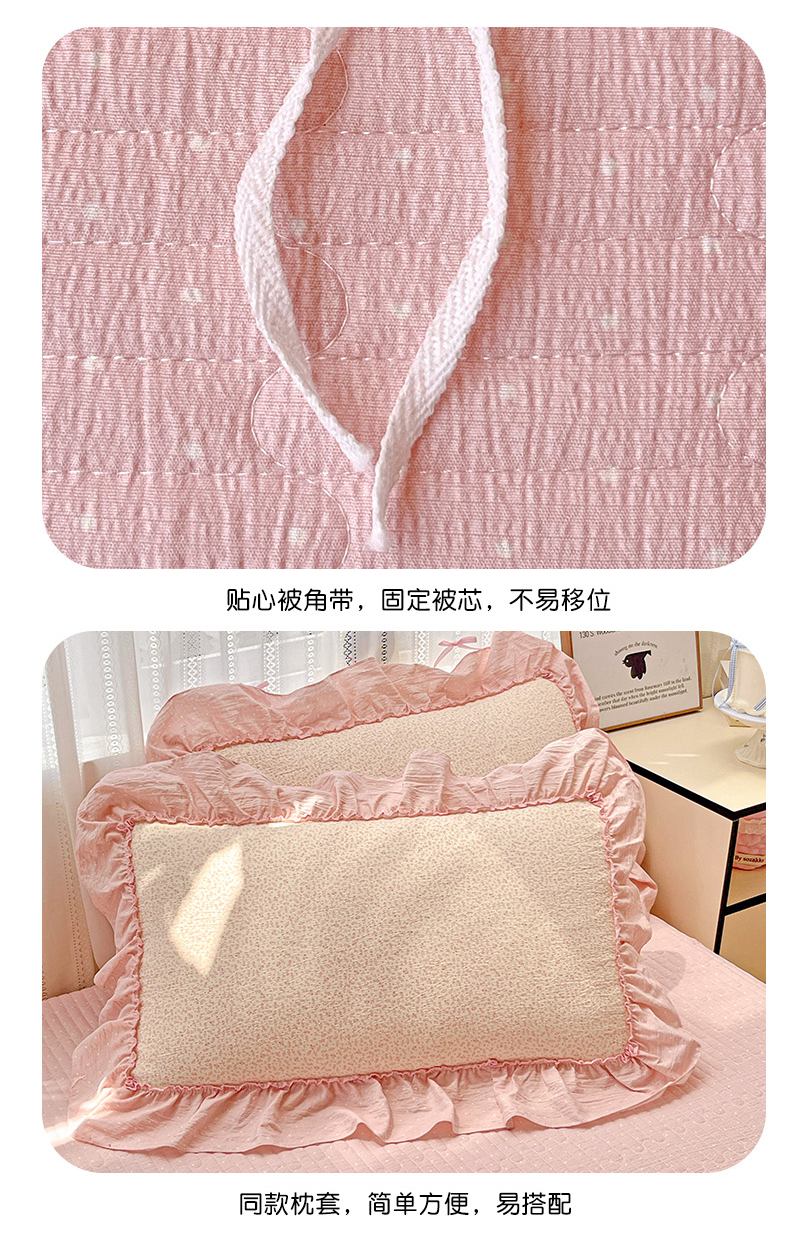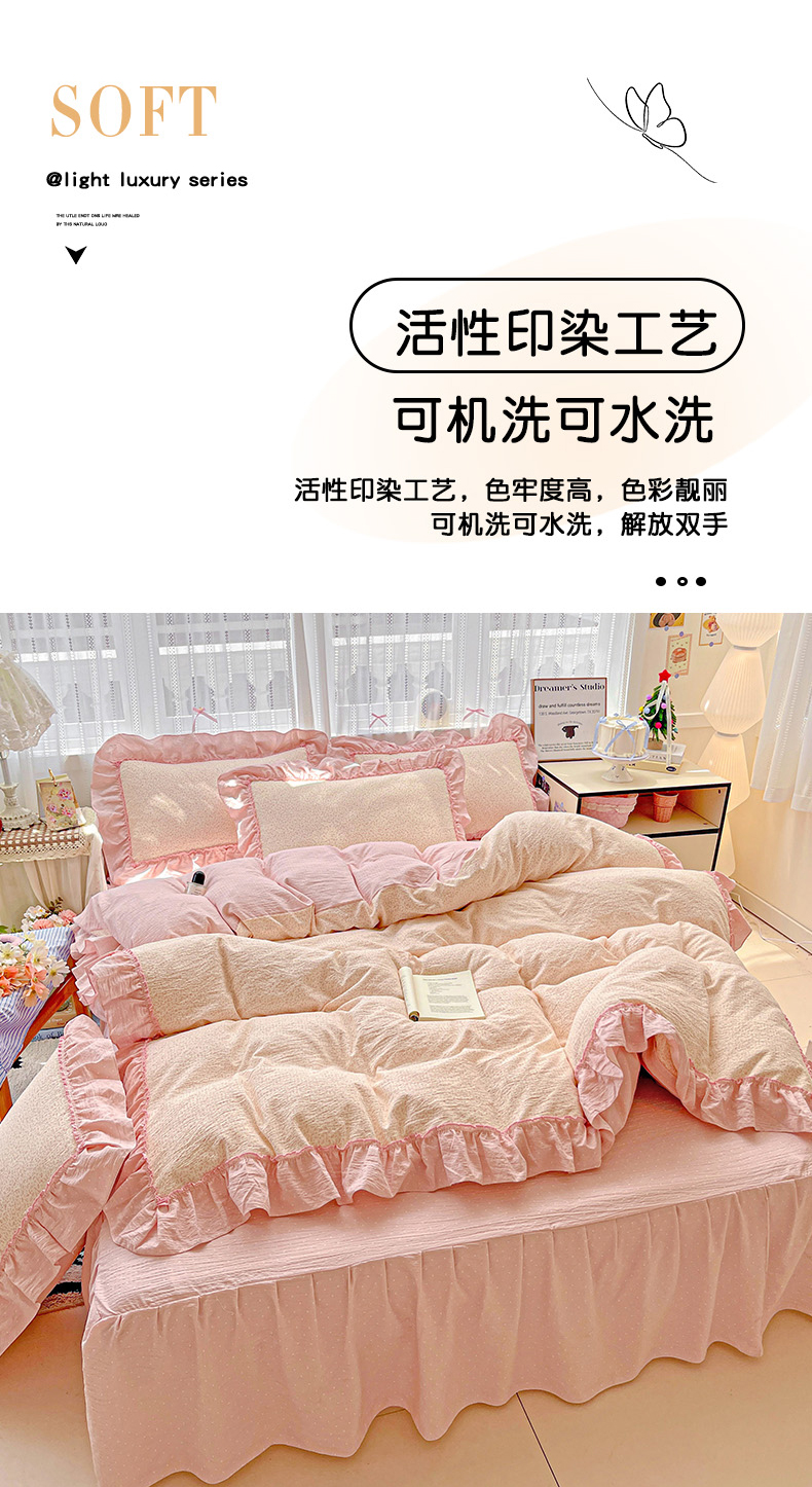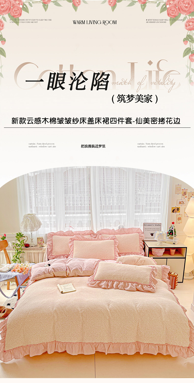 • 91家纺网 家纺一手货源 找家纺 2025秋冬加厚款云感亲肤棉邹邹纱床盖床裙四件套-仙美密拷花边 波点女王-蔷薇粉
