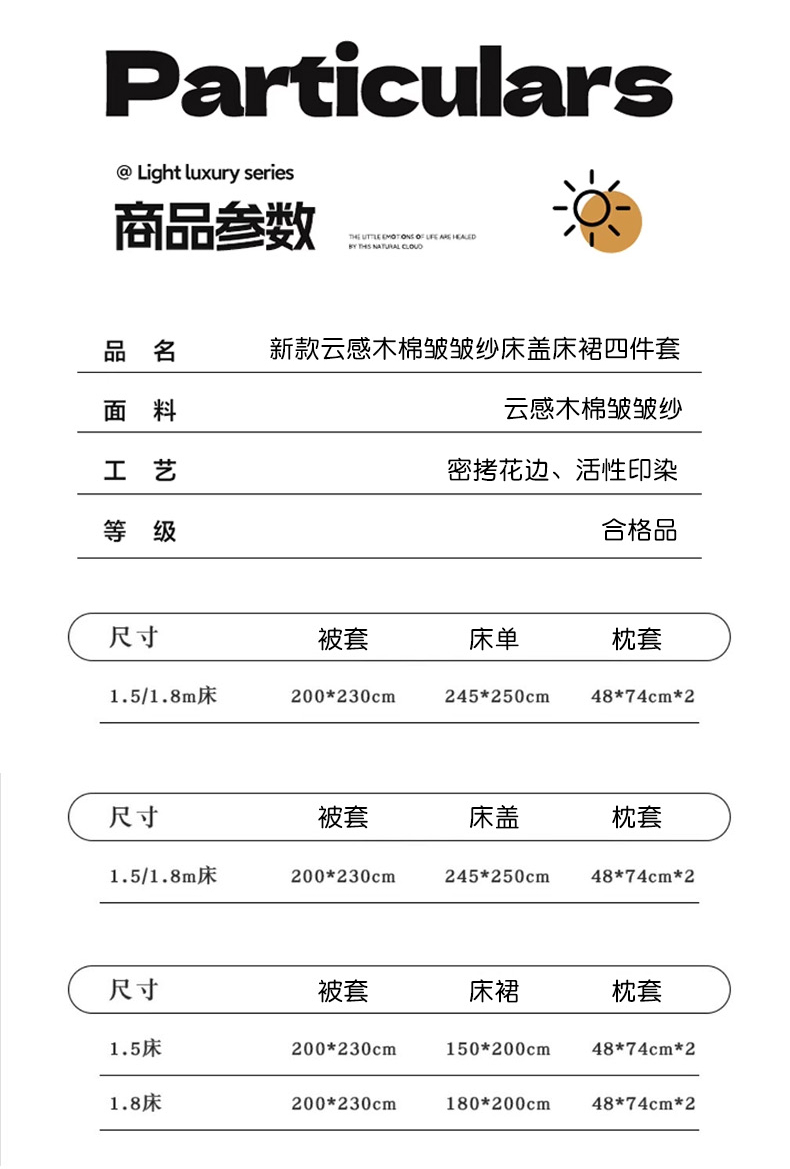 1.5床裙四件套 200*230cm 床裙150*200cm 枕套48*74cm*2