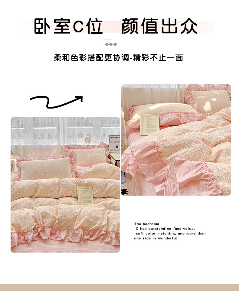 (总)富米莱(原臻工厂) 2026春夏新款仿棉A类韩系大花边床盖床裙四件套,小杏芙,波点汽球,悠悠花香,烟火气星辰,小花蓝,小花粉,晚樱落海,山樱漫岛,玫瑰庄园,花影,耳机猫猫,动物世界,七彩点点,艾利花园