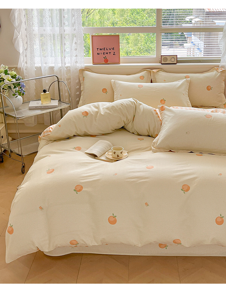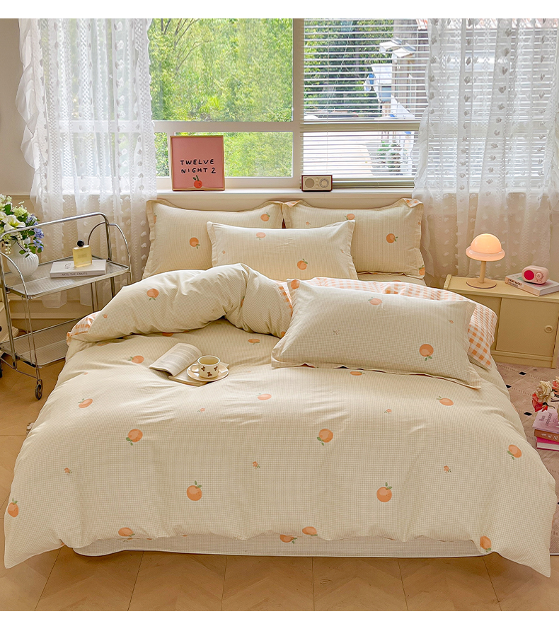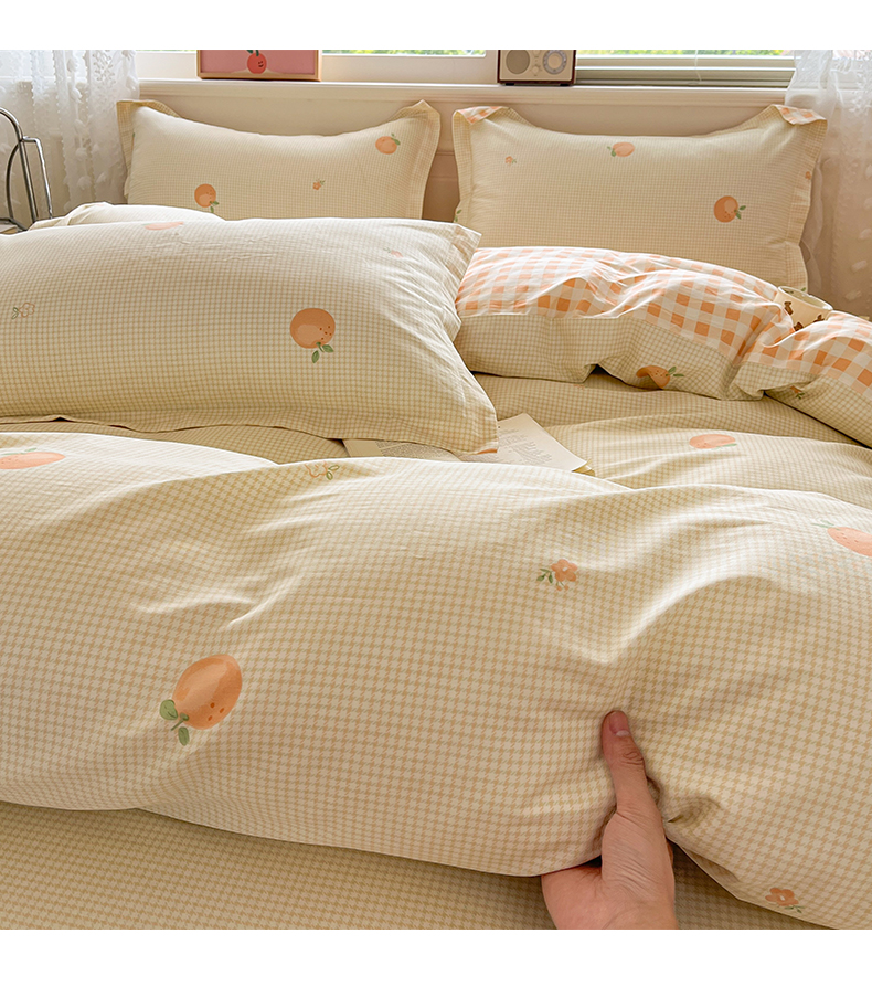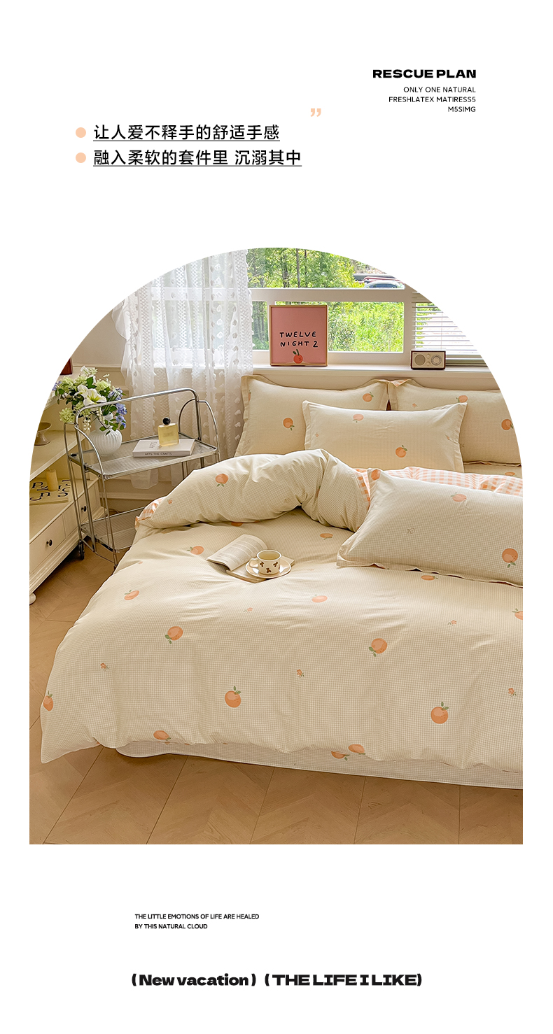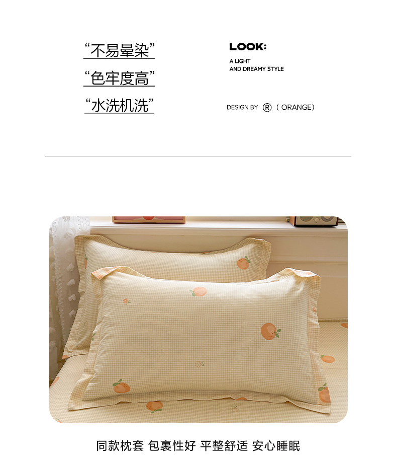 商品名称:花梦欣 2025新款全棉纯棉印花单品系列-三件套 小橙橘