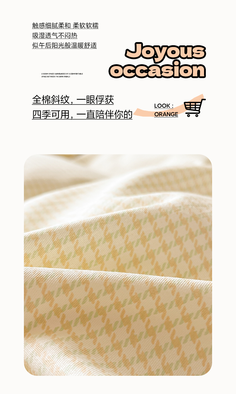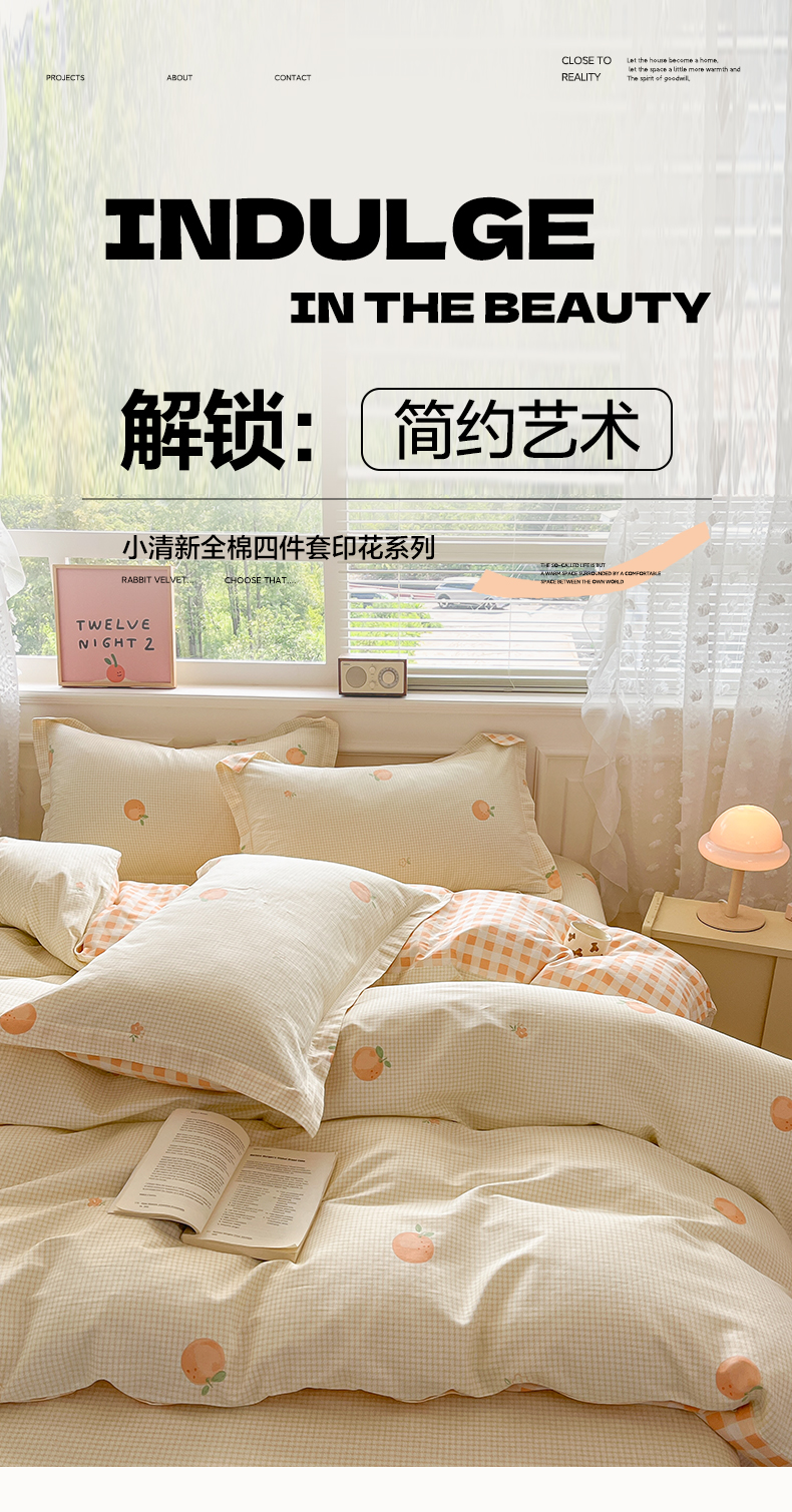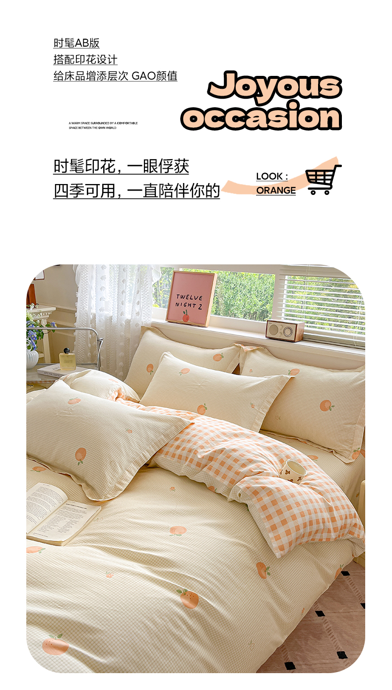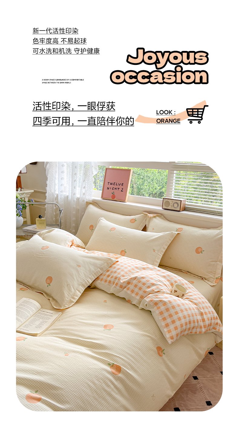 商品名称:花梦欣 2025新款全棉纯棉印花单品系列-三件套 小橙橘