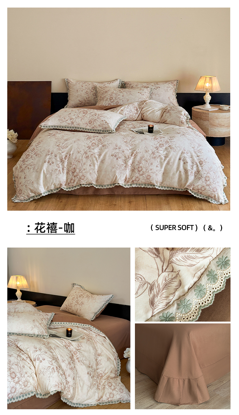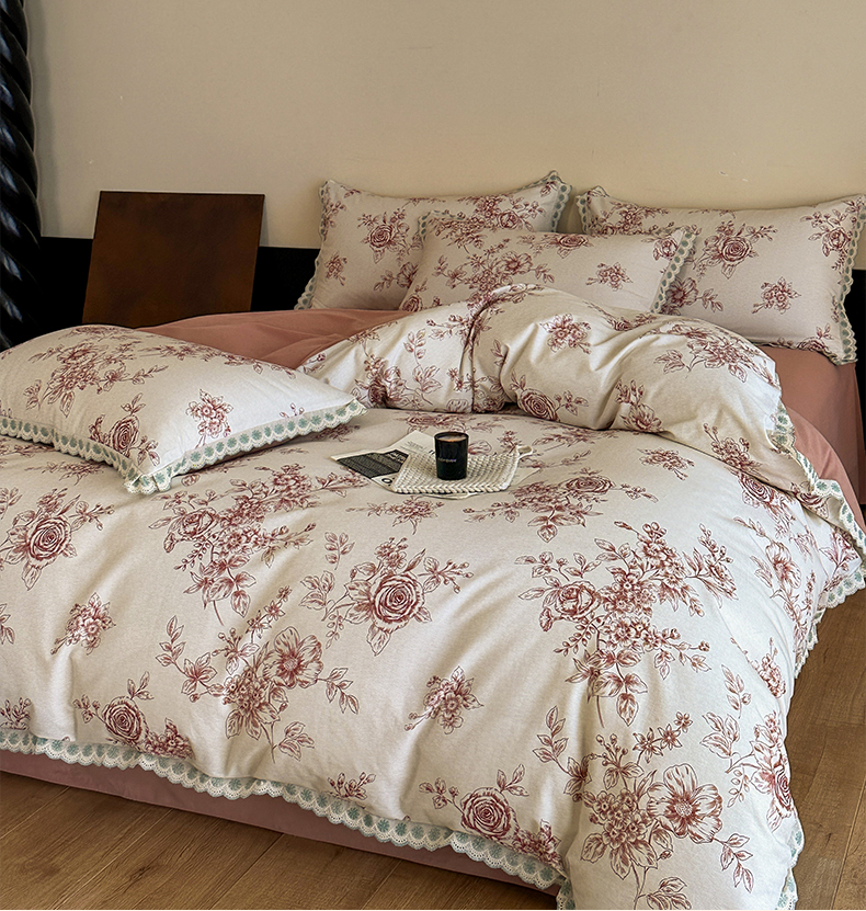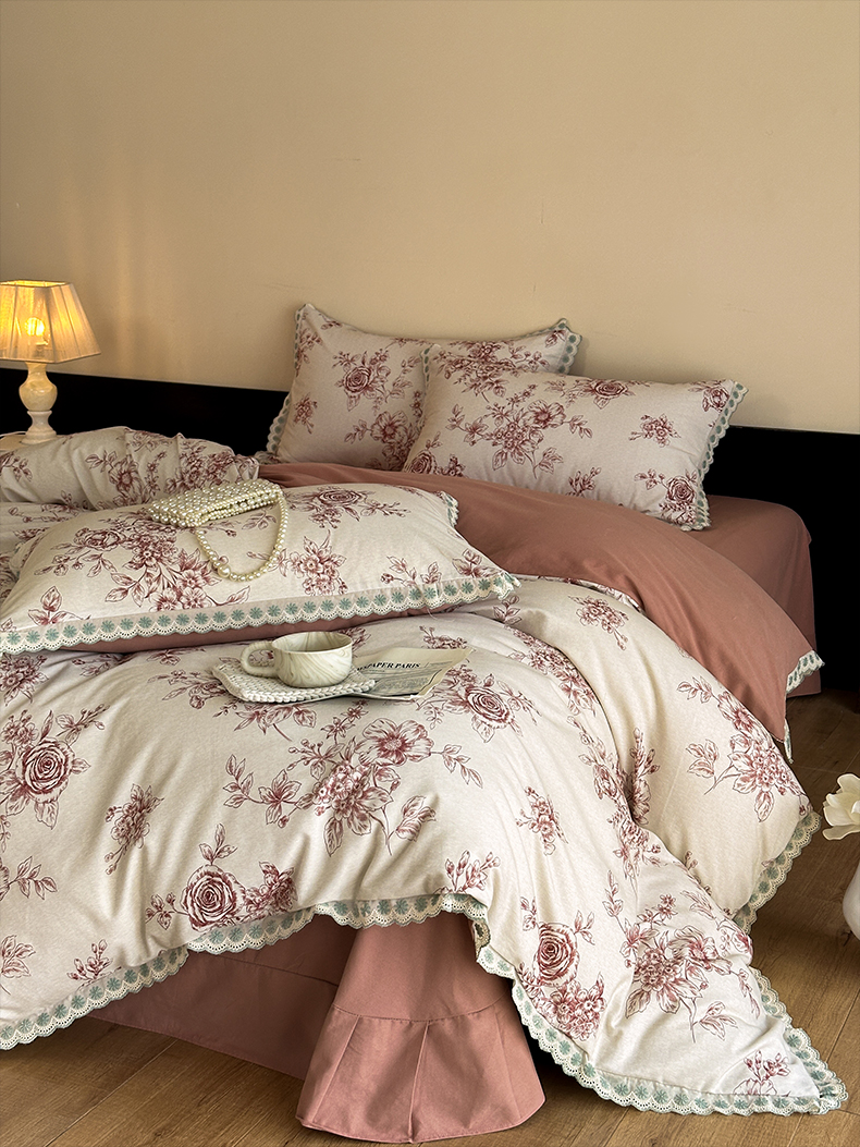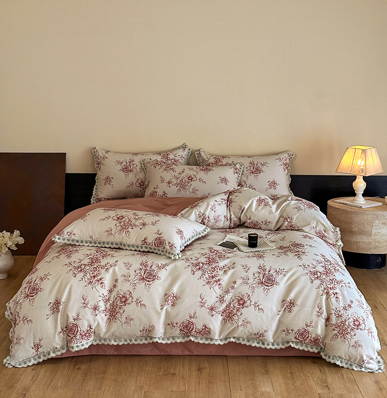 当前位置: 91家纺网 > 商品网购 > 床品套件 > 四件套 > 全棉普通四件套 > 帛美家纺 2025年新款全棉纯棉花边印花磨毛四件套 秘密花园-红