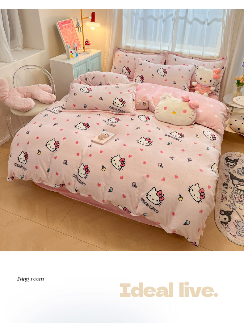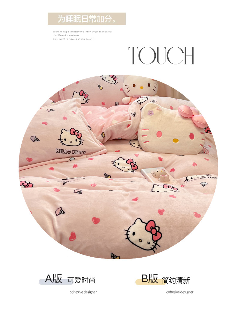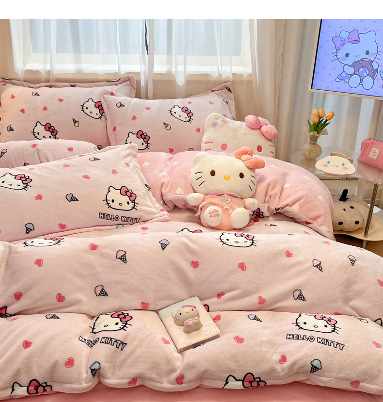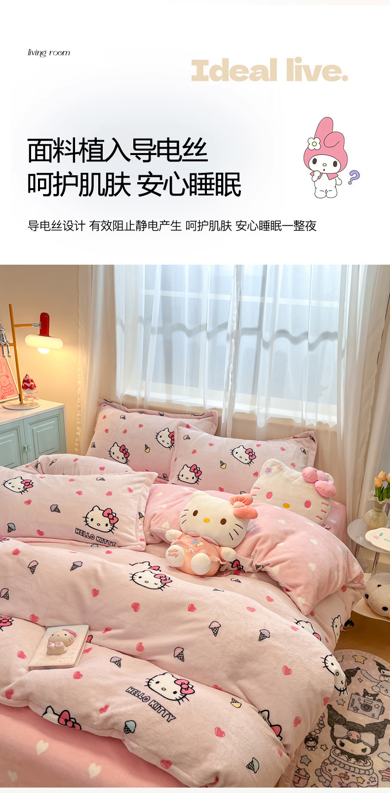 当前位置: 91家纺网 > 商品网购 > 床品套件 > 四件套 > 牛奶绒四件套 > 暮思家居 2025新款三丽鸥正版授权高克重200克加厚保暖卡通牛奶绒四件套 牛奶绒-甜筒kt