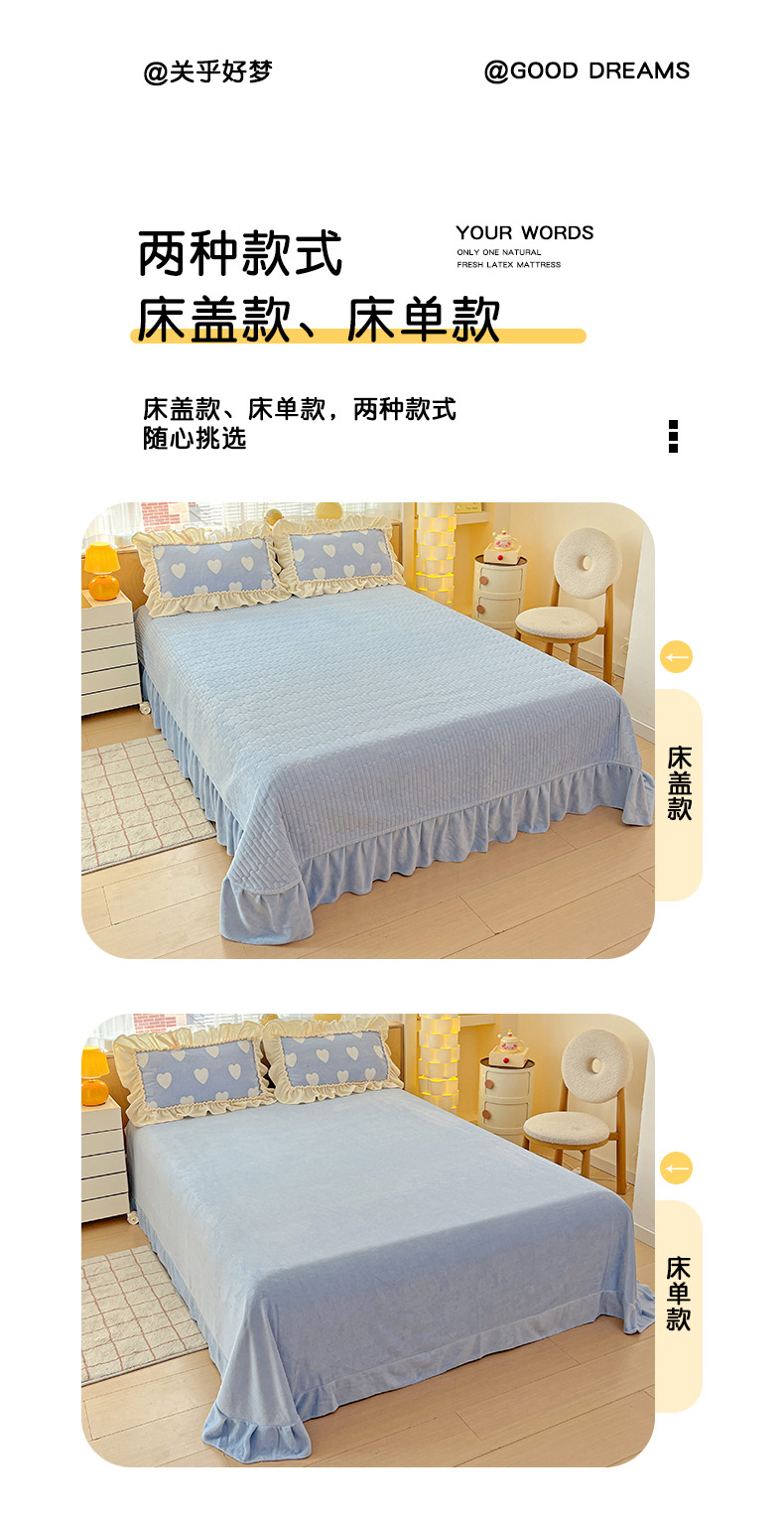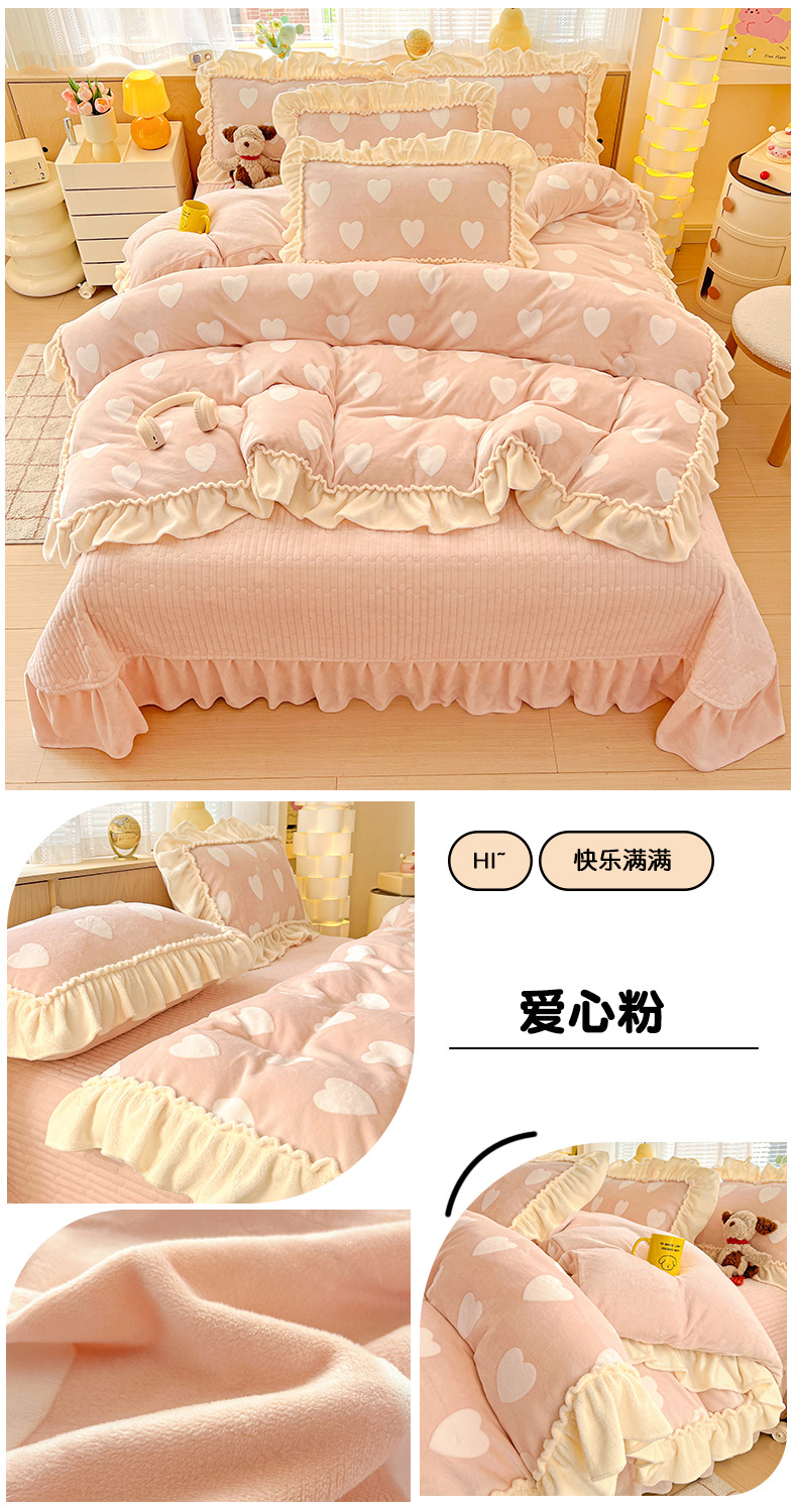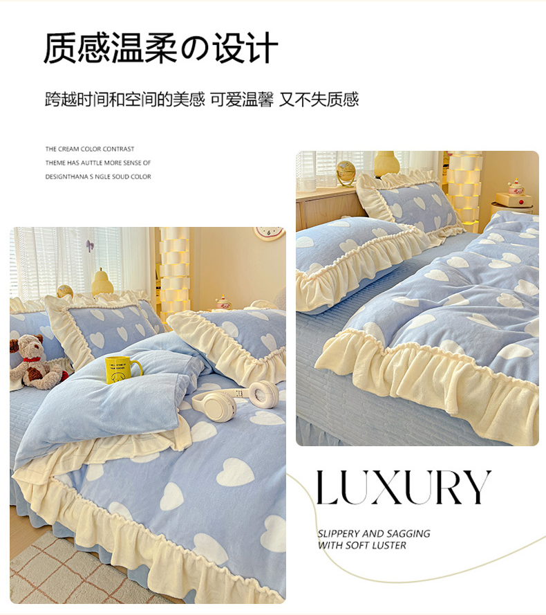 当前位置: 91家纺网 > 商品网购 > 床品套件 > 四件套 > 牛奶绒四件套 > 富米莱(原臻工厂) 2025新款高克重花边款爱心烂花牛奶绒床盖床单四件套-爱心系列 爱心蓝