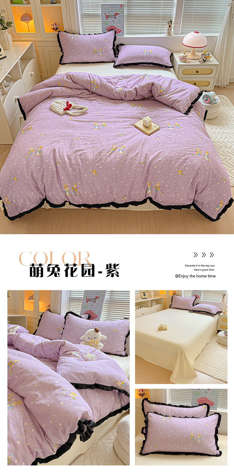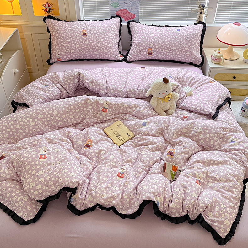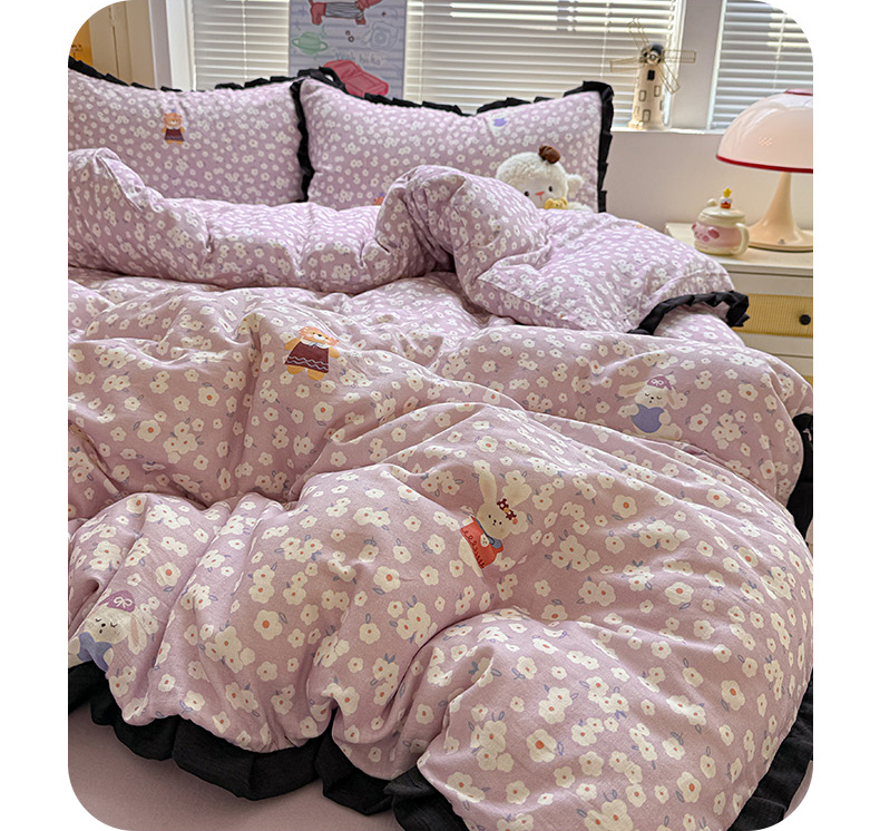 当前位置: 91家纺网 > 商品网购 > 床品套件 > 四件套 > 其它四件套 > 喜颜 2025新款超柔水洗双层纱皱皱纱花边四件套 兔软软-紫