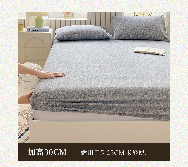 春皖家纺 2025新款原棉磨毛单床笠 床笠单件-风格一 叶相思