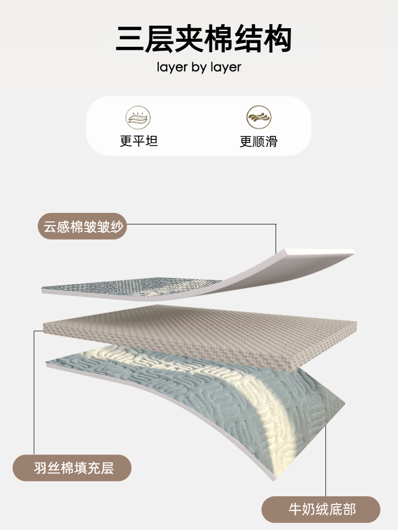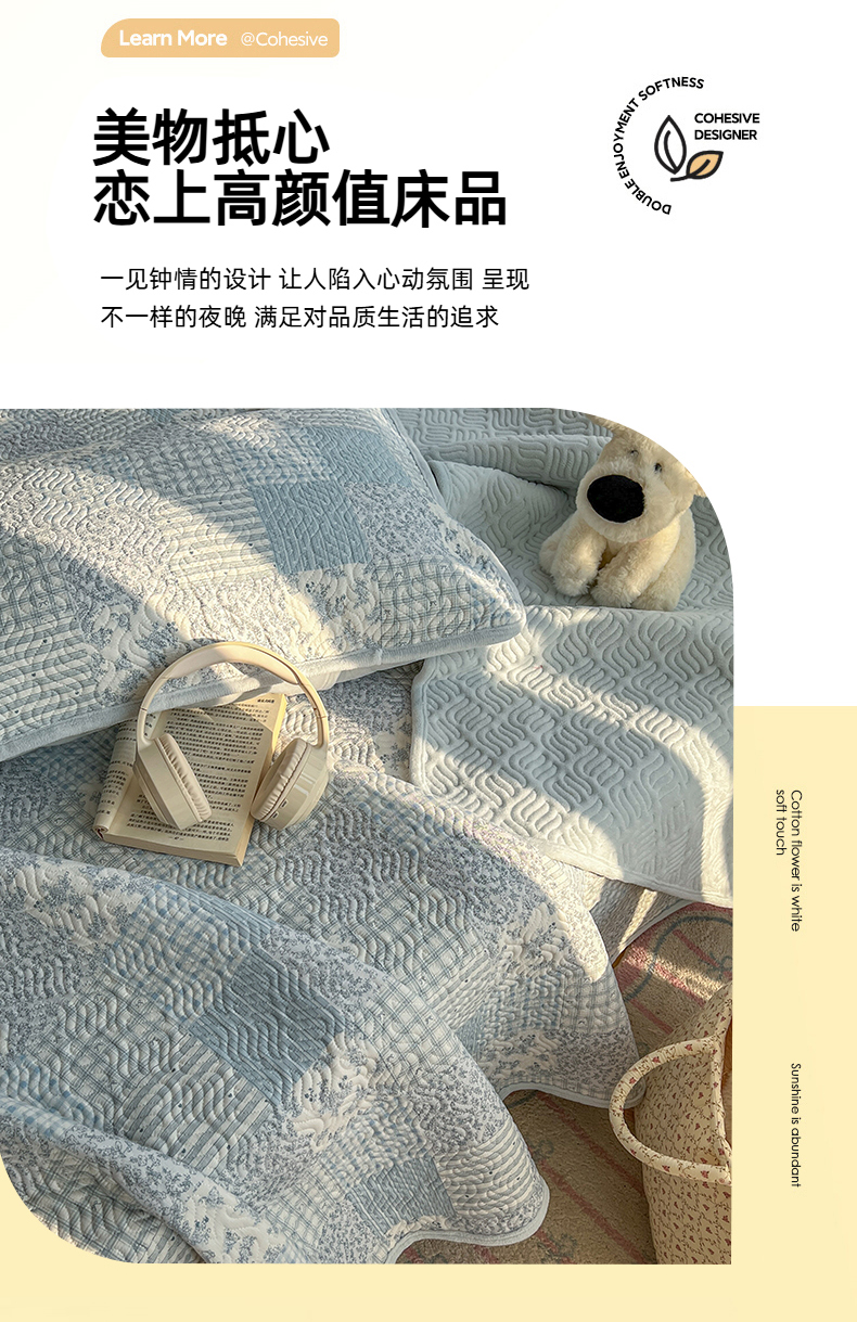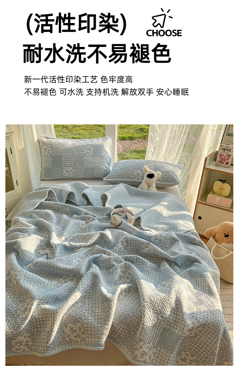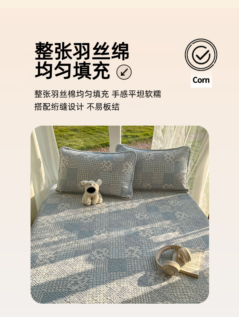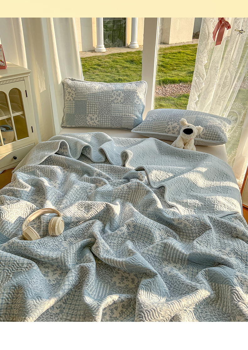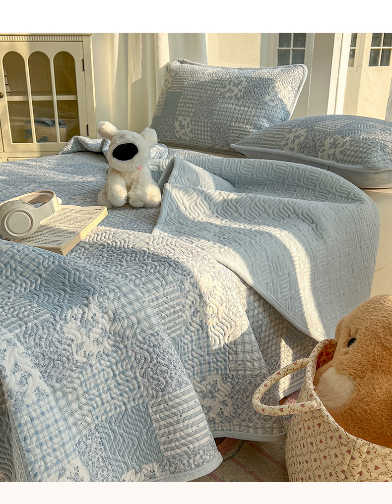 • 91家纺网 家纺一手货源 找家纺 春光里 2025新款A版云感棉皱皱纱B版牛奶绒夹棉床盖三件套 赫拉-蓝