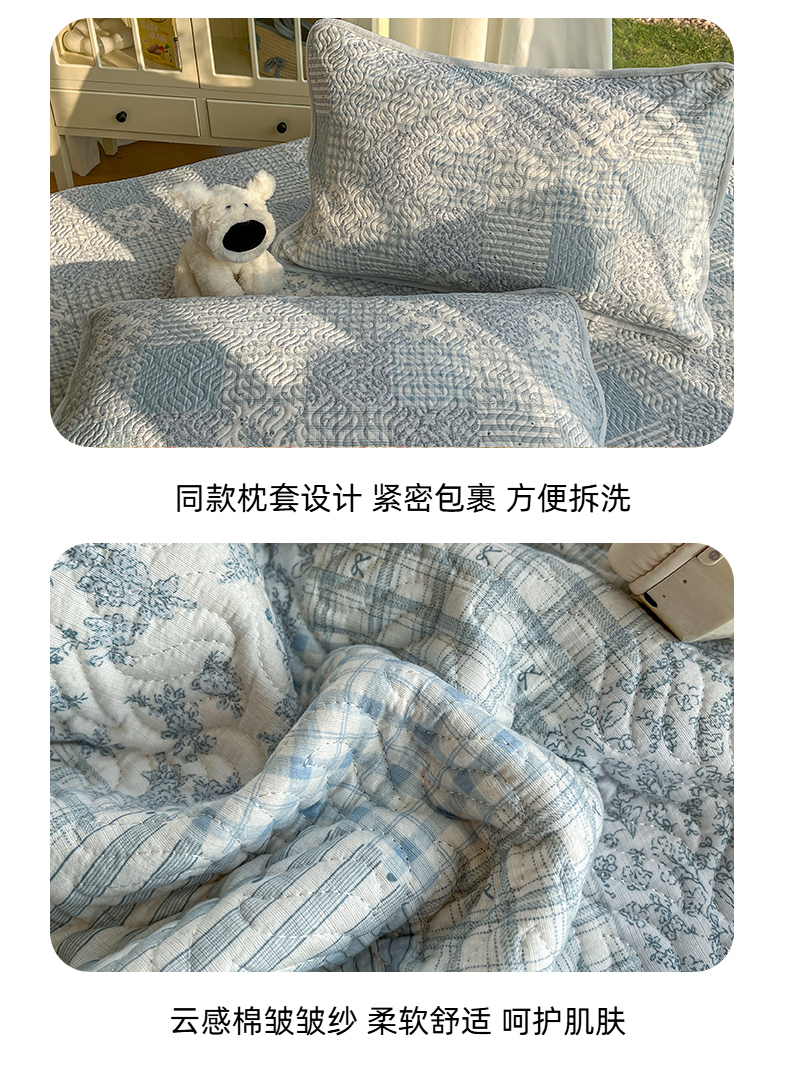 春光里 2025新款A版云感棉皱皱纱B版牛奶绒夹棉床盖三件套 赫拉-蓝