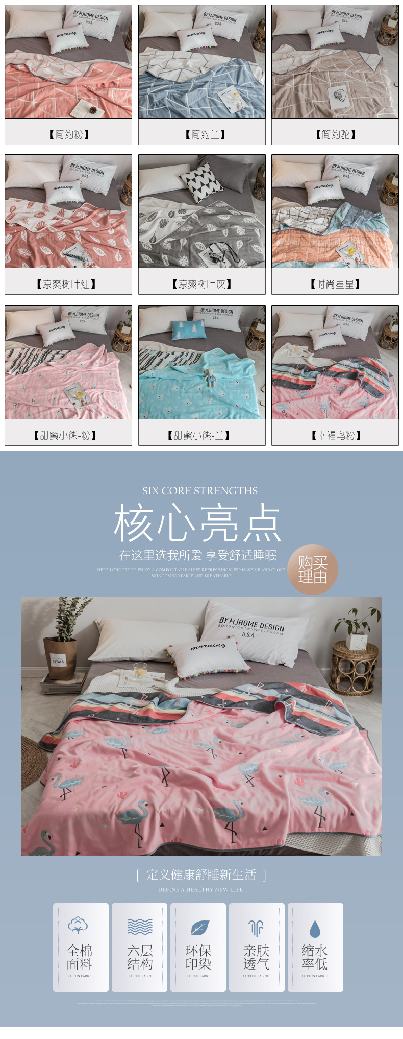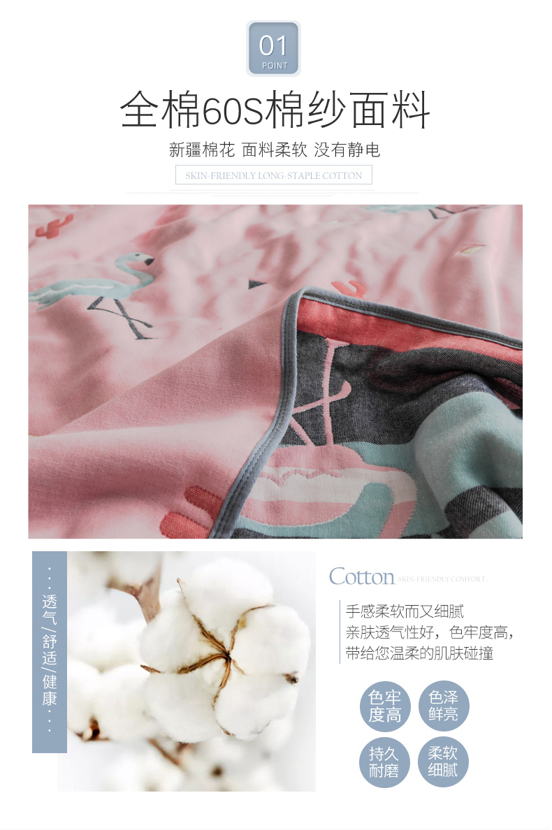 商品名称:朴尔家纺-毛巾被 2026新款经典六层纱布全棉毛巾被系列-朴尔经典款常年备货 幸福鸟粉