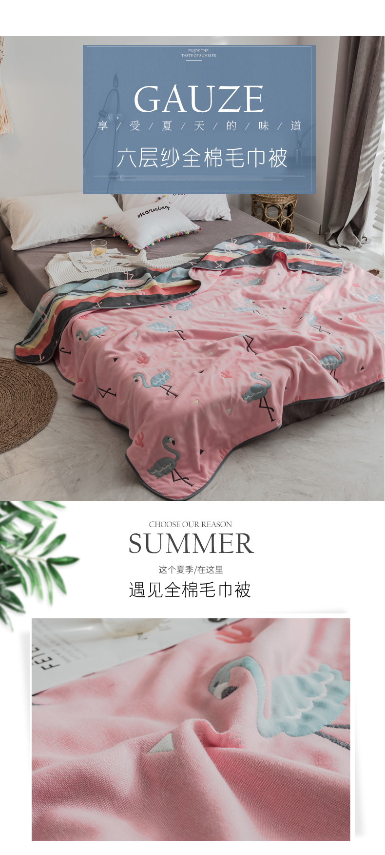 朴尔家纺-毛巾被 2026新款经典六层纱布全棉毛巾被系列-朴尔经典款常年备货 幸福鸟粉