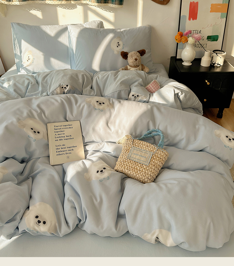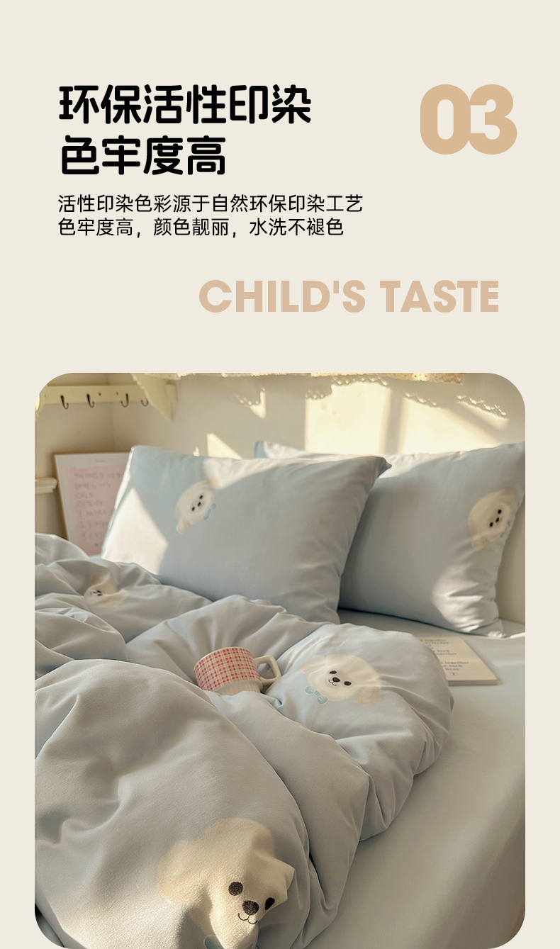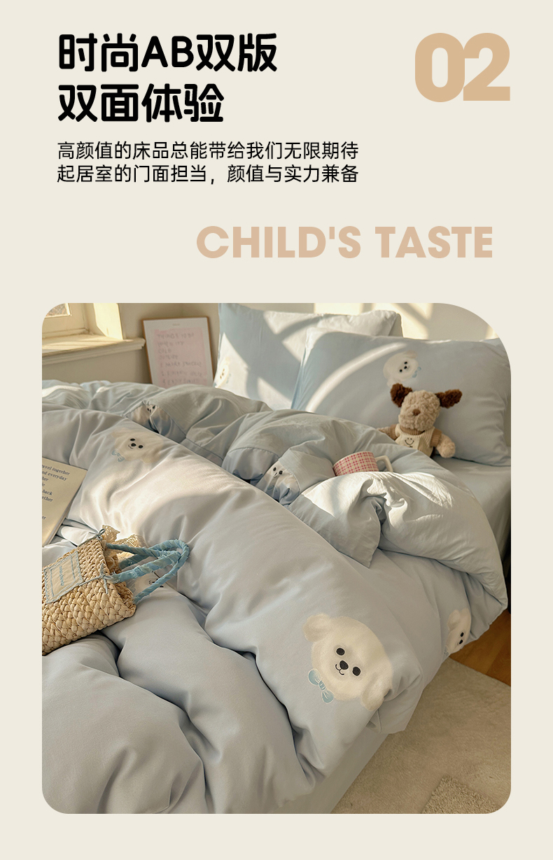 (总)初夏家纺 2026 古法仿棉水洗棉A类四件套被罩床单三件套床上用品卡通可爱【提供买家秀】,蓝调序曲,豹纹音乐,波点汪语,草莓啵啵,花屿庄园,灰度情书,家园,假日萌犬,猫咪甜点屋,毛绒熊仔,萌犬游记,暖意小熊,甜心紫熊,兔耳朵,樱桃物语,雨沫