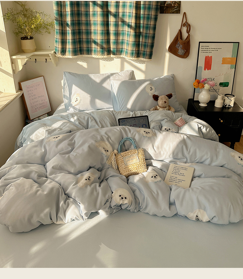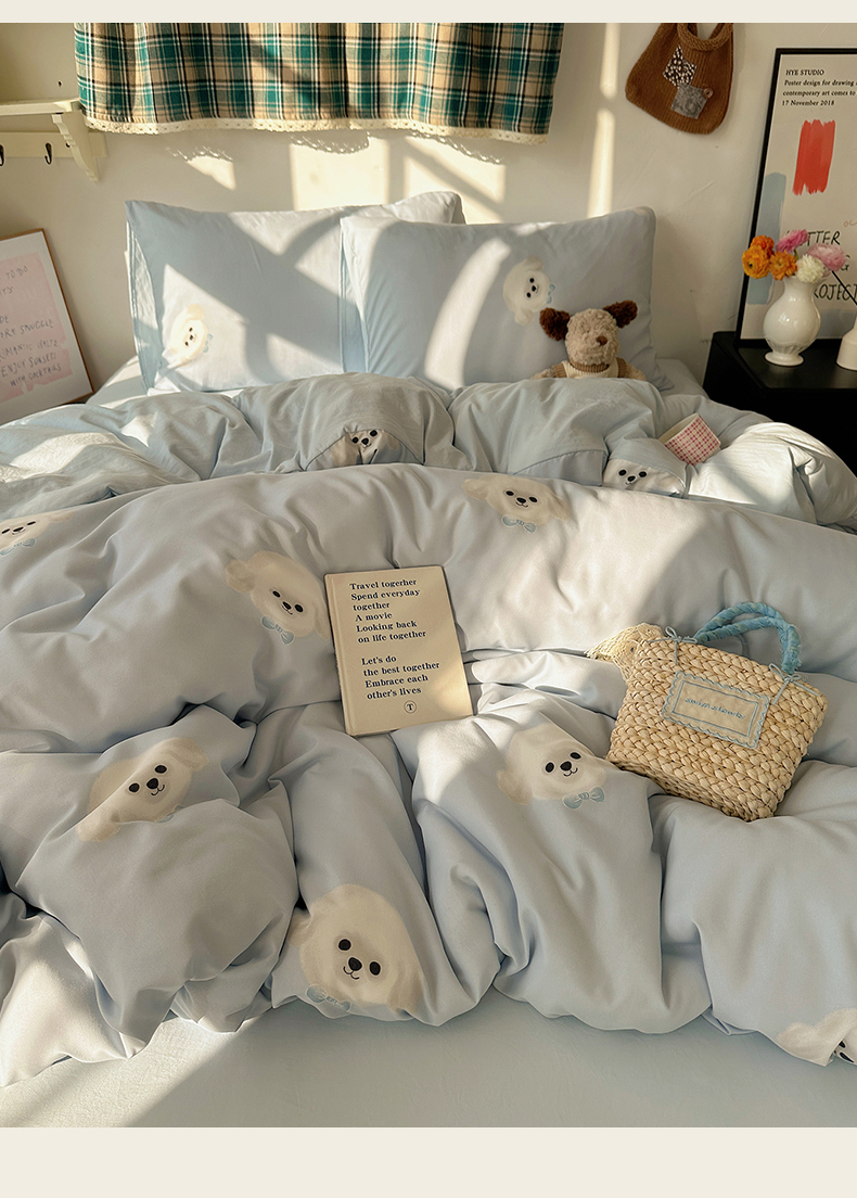 初夏家纺 2026 古法仿棉水洗棉A类四件套被罩床单三件套床上用品卡通可爱【提供买家秀】 萌犬游记,萌犬游记