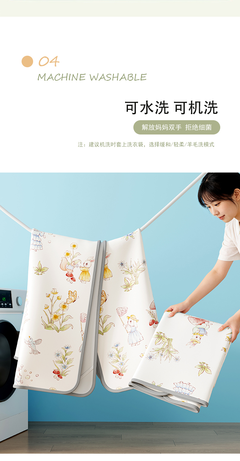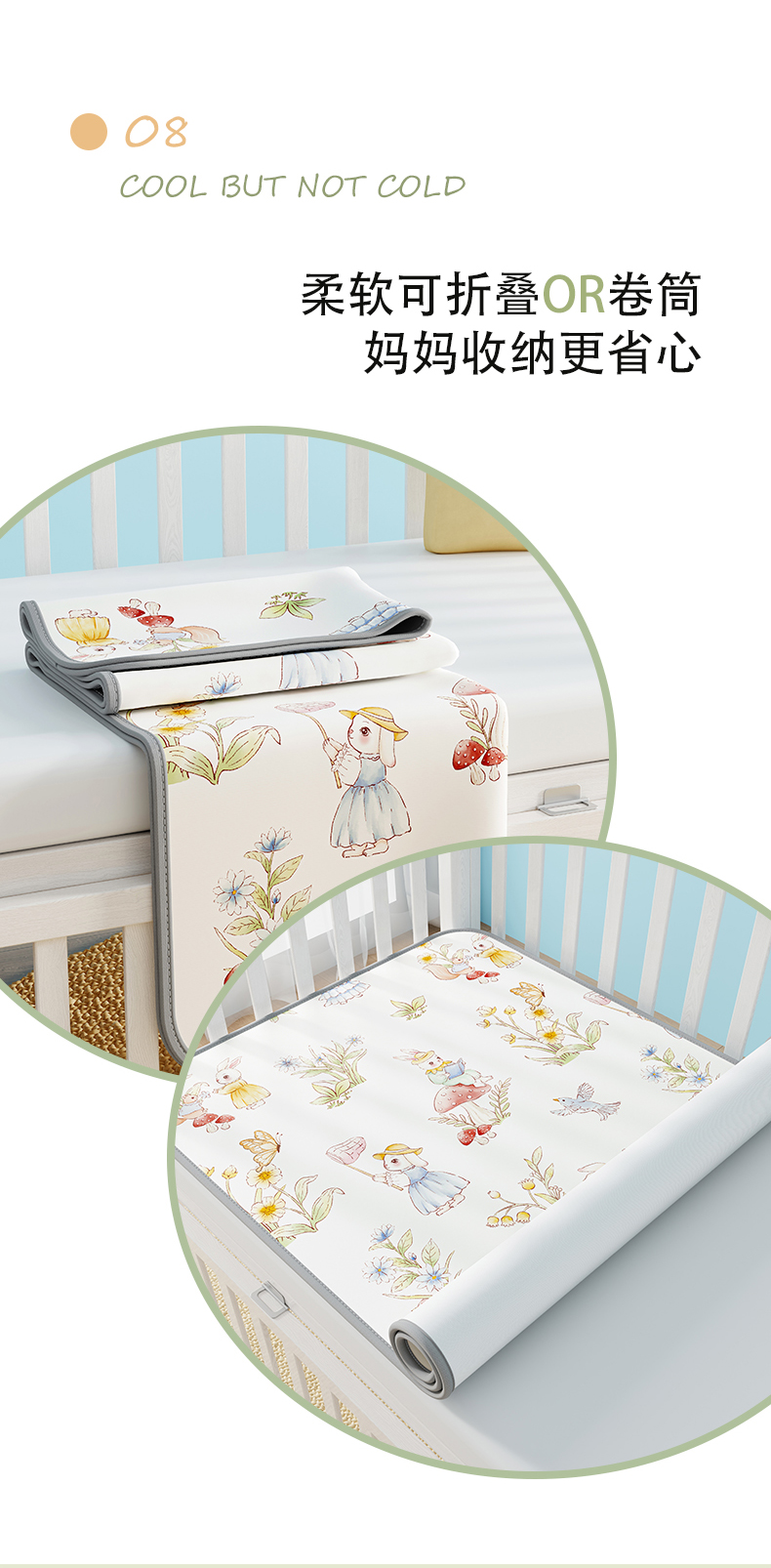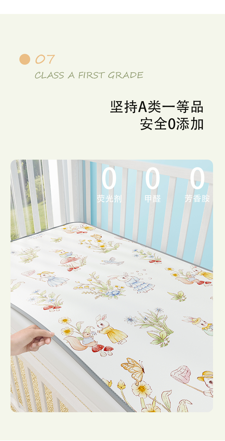 商品名称:奇丝雅 2026新款A类数码印花大版1100D水光冰丝凉席凉席婴儿儿童新生【三明治网底】 精灵小兔【三明治网底】