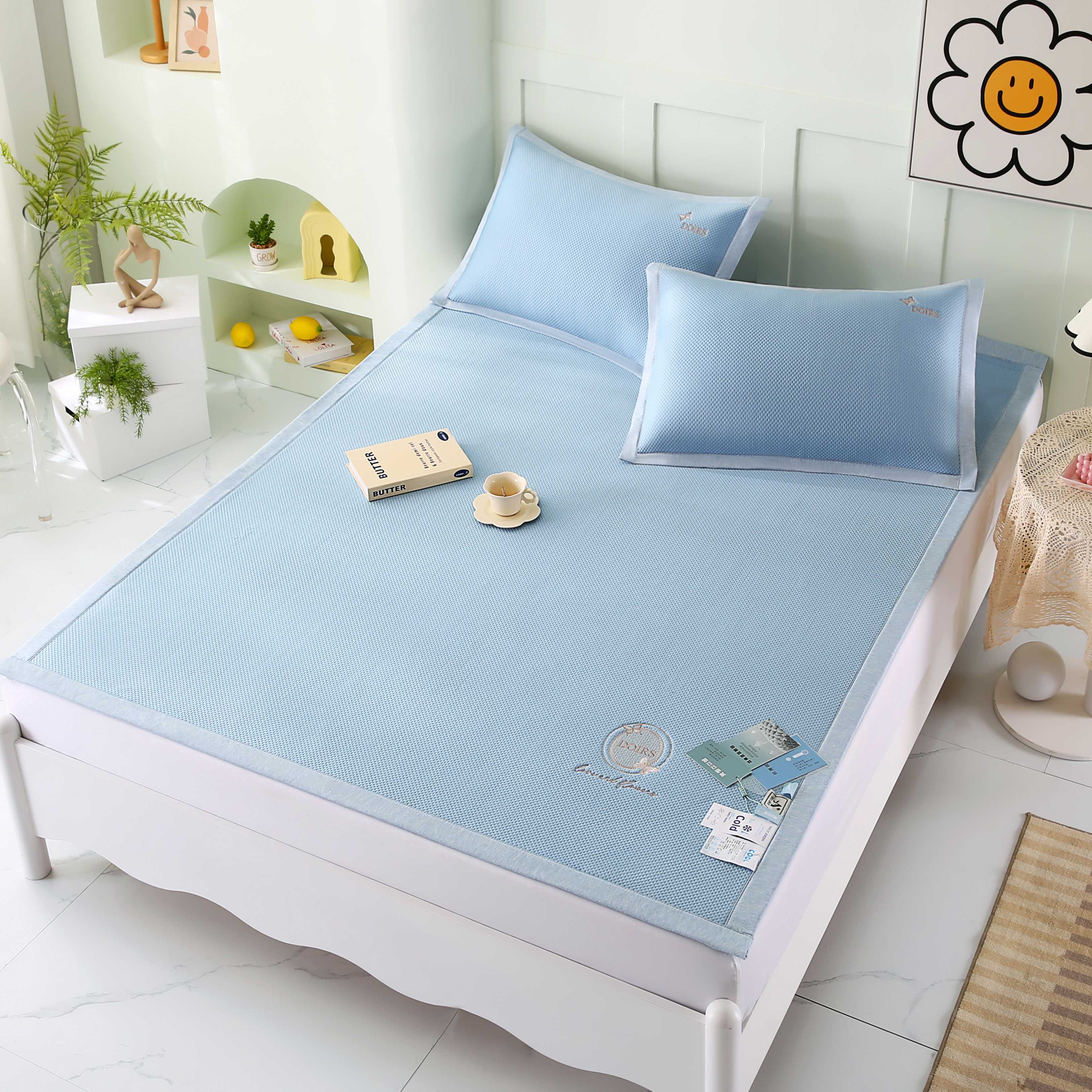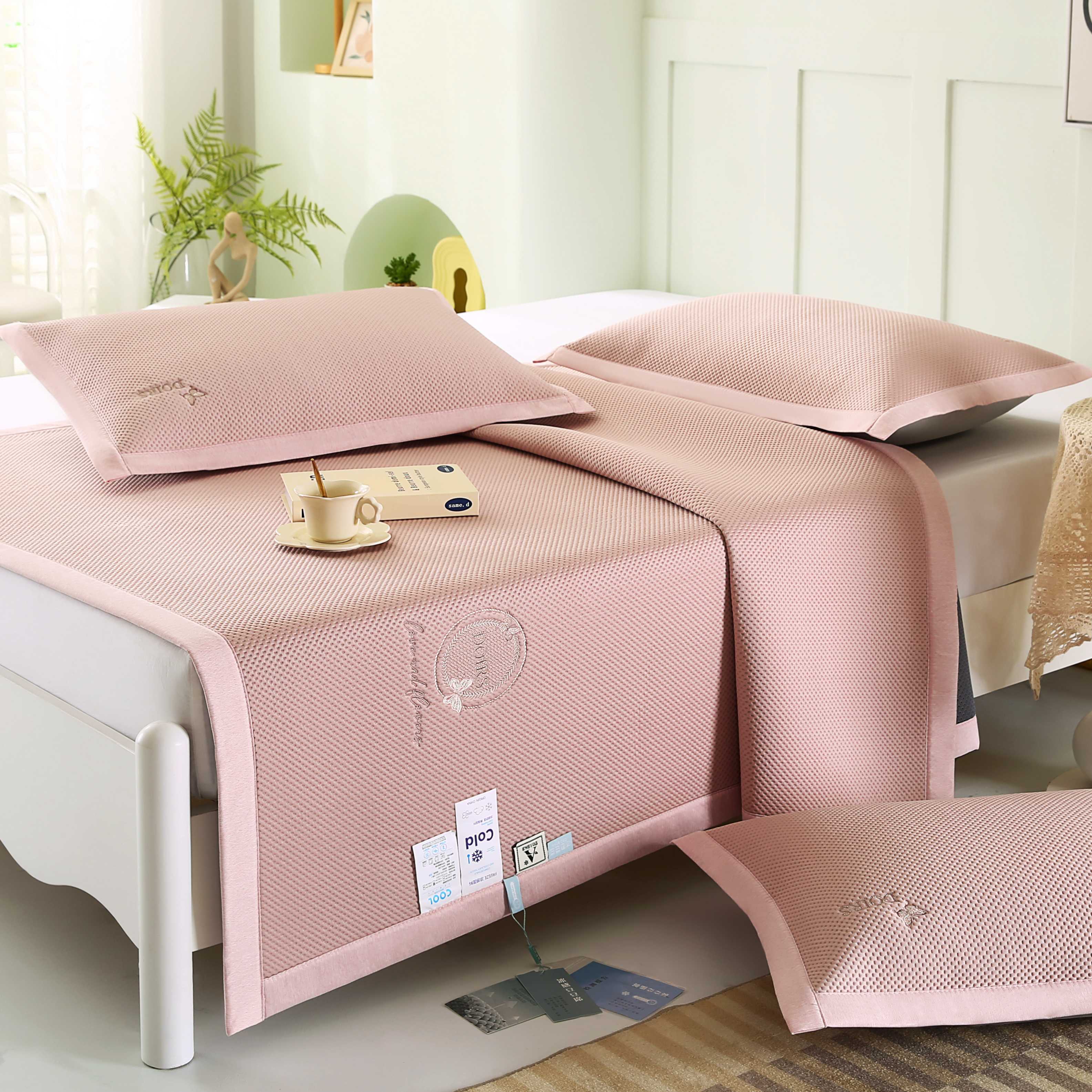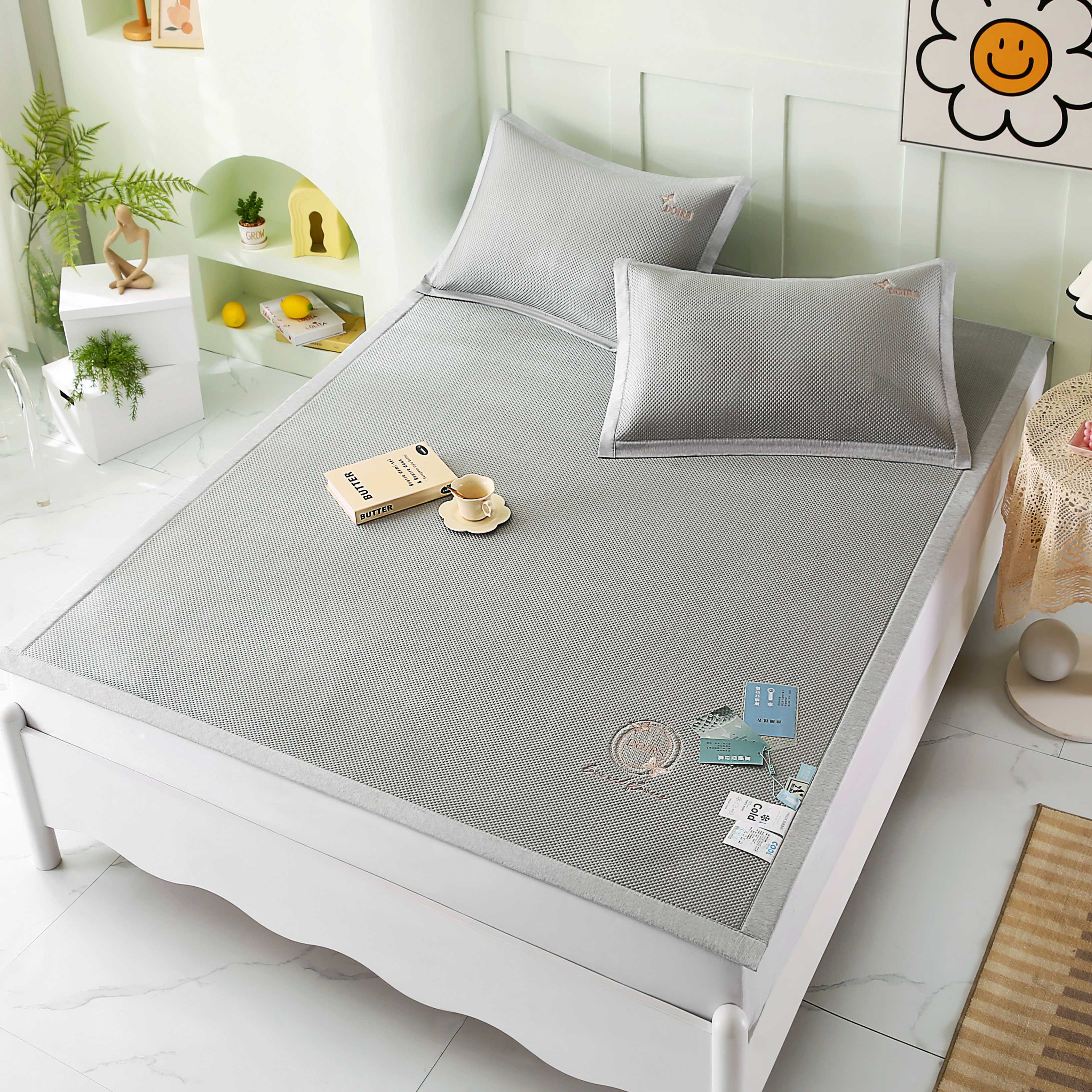 (总)席匠 2026新款直角包边绣花玫瑰床笠款凉席席子凉席三件套,粉色,灰色,蓝色,绿色
